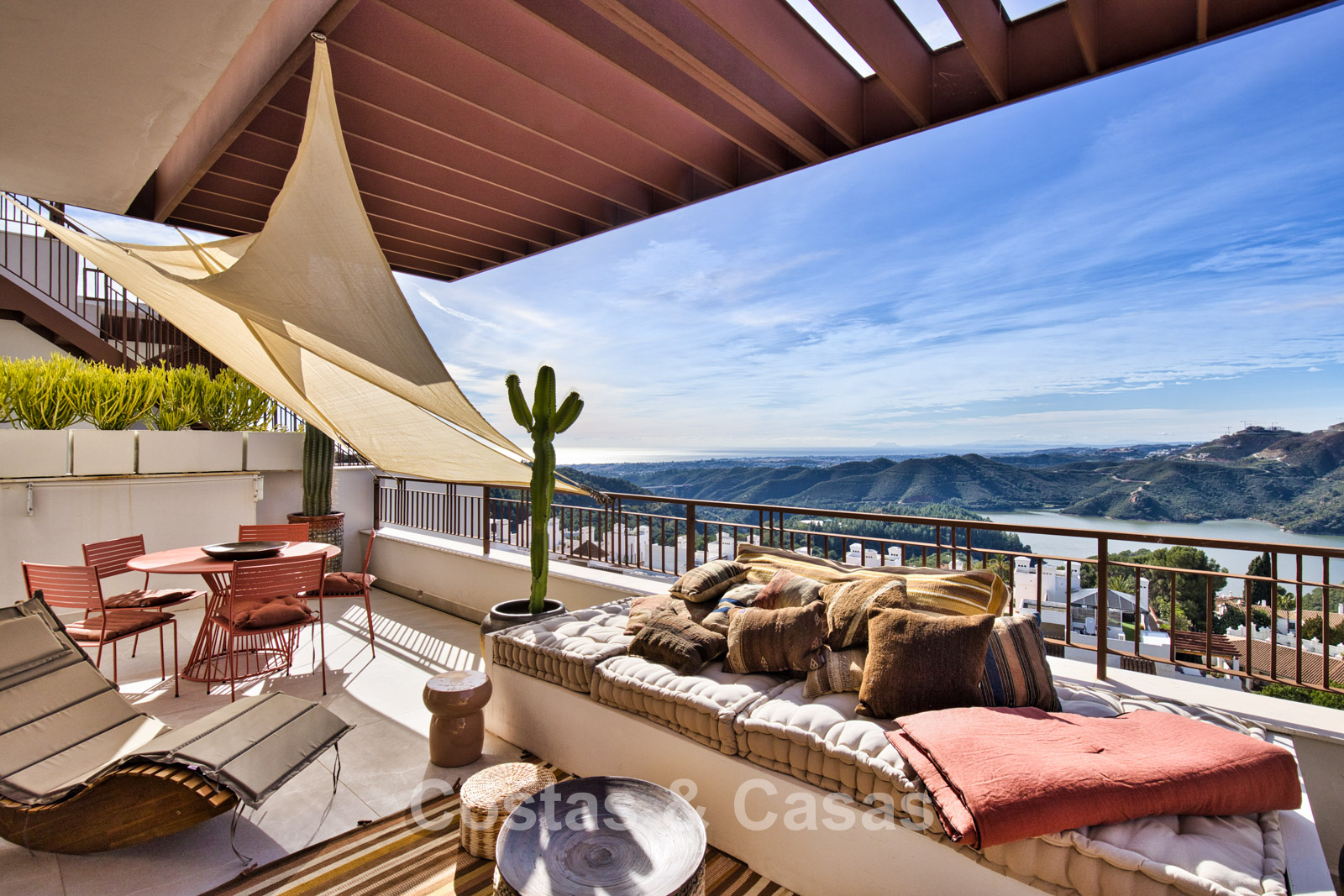 Ático de inspiración ibicenca, enclavado en las pintorescas estribaciones de la Sierra de las Nieves, con vistas al mar Mediterráneo y al lago de Istán - zona de Marbella