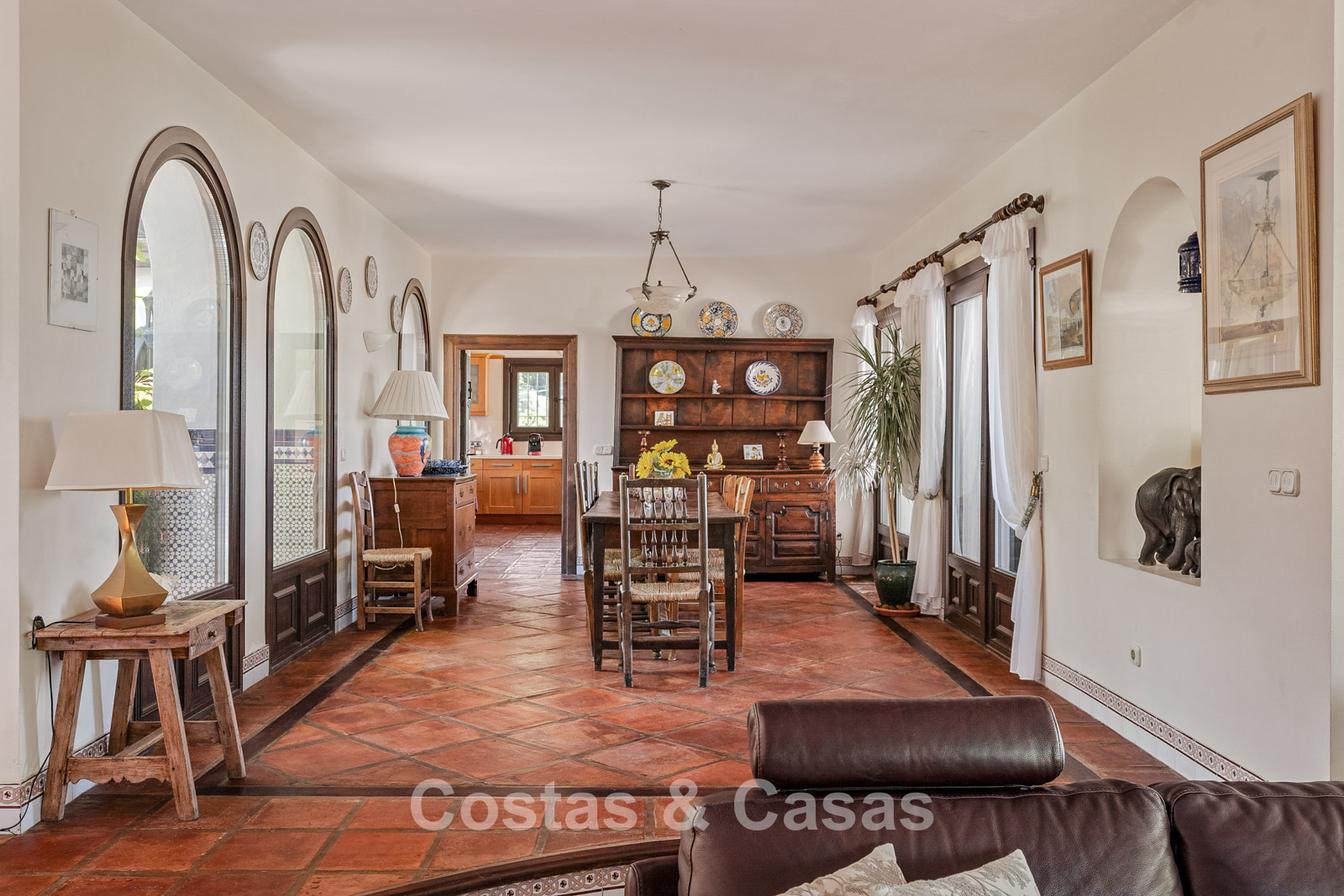 Espaciosa finca española de arquitectura tradicional. El uso de colores cálidos, terracota y madera confiere al interior y al exterior un encanto mediterráneo. Múltiples zonas de estar. Cocina abierta y funcional, totalmente equipada con electrodomésticos de alta gama y una isla con asientos. 6 dormitorios, 6 baños. Una encantadora torre puede transformarse en un dormitorio adicional, despacho o espacio creativo. Posibilidad de alojar habitaciones interiores para invitados o personal. Suelos de terracota característicos. Trastero. Lavadero. Garaje integrado. Aparcamiento adicional para varios coches.