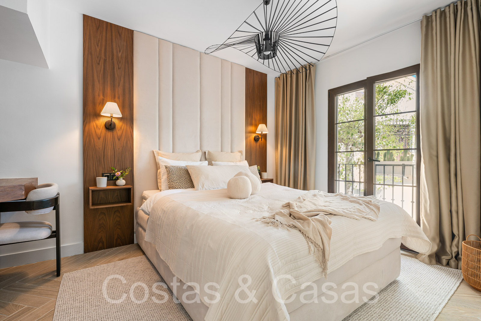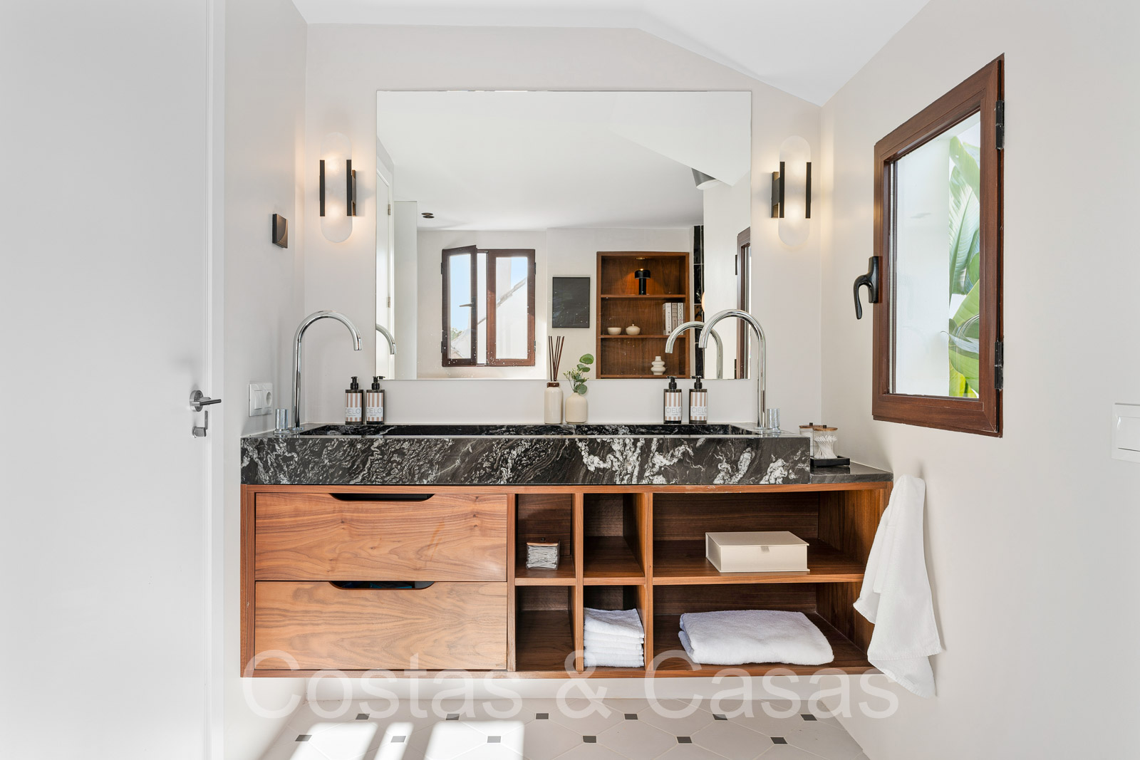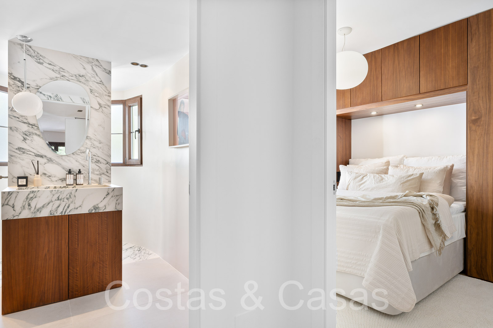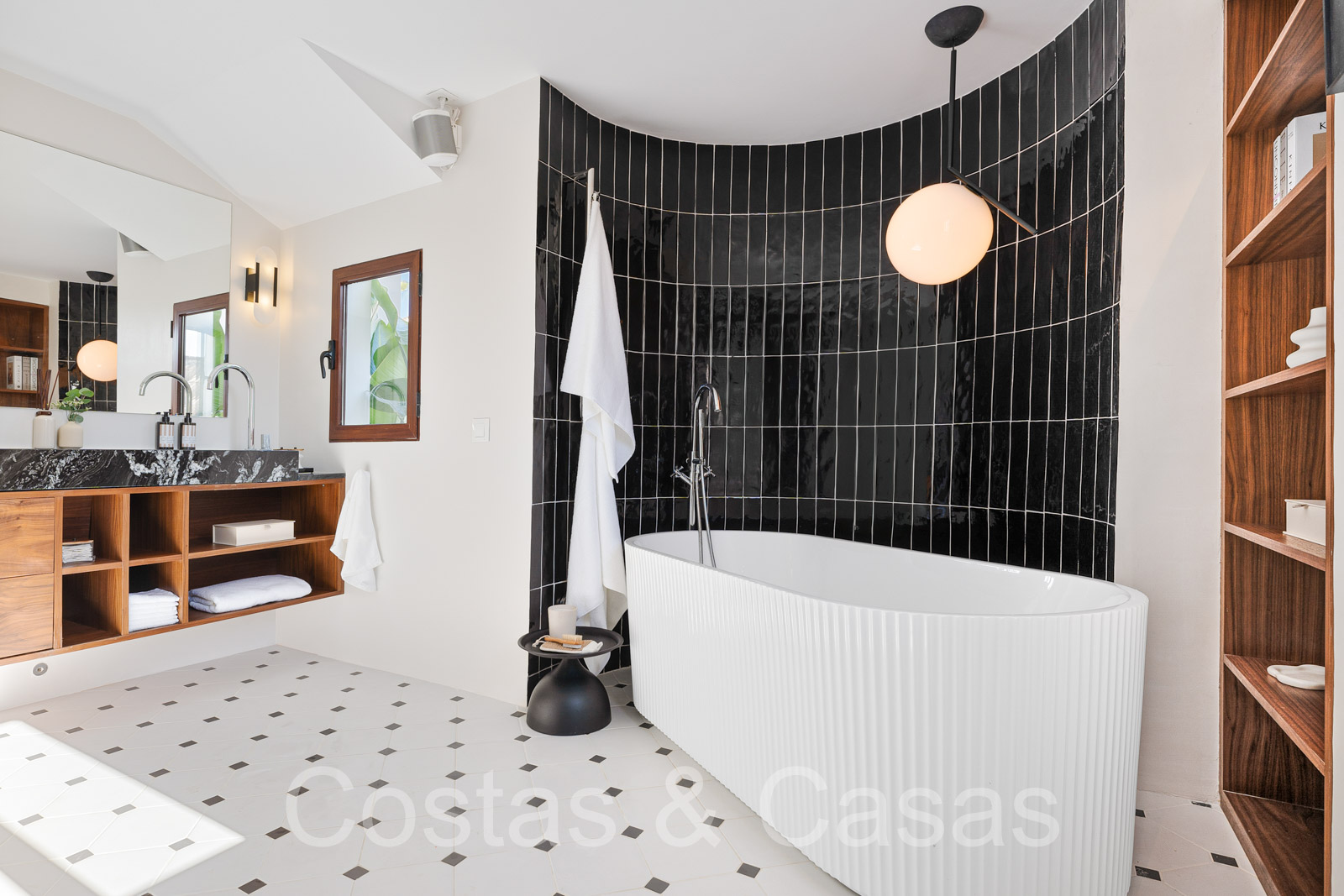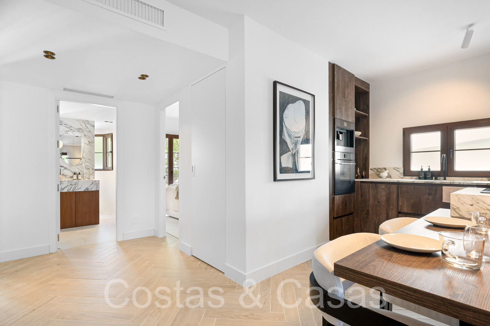 Apartamento dúplex totalmente reformado de 2 plantas. Cuidadosamente renovado con atención a un acabado superior. Orientación sur. Vistas al pintoresco entorno, al paisaje de montaña y vistas parciales al mar. Un hermoso solárium ofrece una piscina privada, una ducha al aire libre, espacio para relajarse y una sauna. Decoración elegante y contemporánea. Concepto de planta abierta. Amplio salón con acogedora sala de TV. Cocina abierta, totalmente equipada con isla de cocina y mesa integrada. Una amplia terraza cubierta equipada con una cocina exterior con barbacoa/parrilla y un comedor al aire libre. 3 dormitorios, 2 baños y aseo independiente. La suite principal tiene un amplio vestidor. Bodega de vinos incorporada. Los suelos de piedra natural tienen un patrón en espiga. Plaza de aparcamiento cubierta.