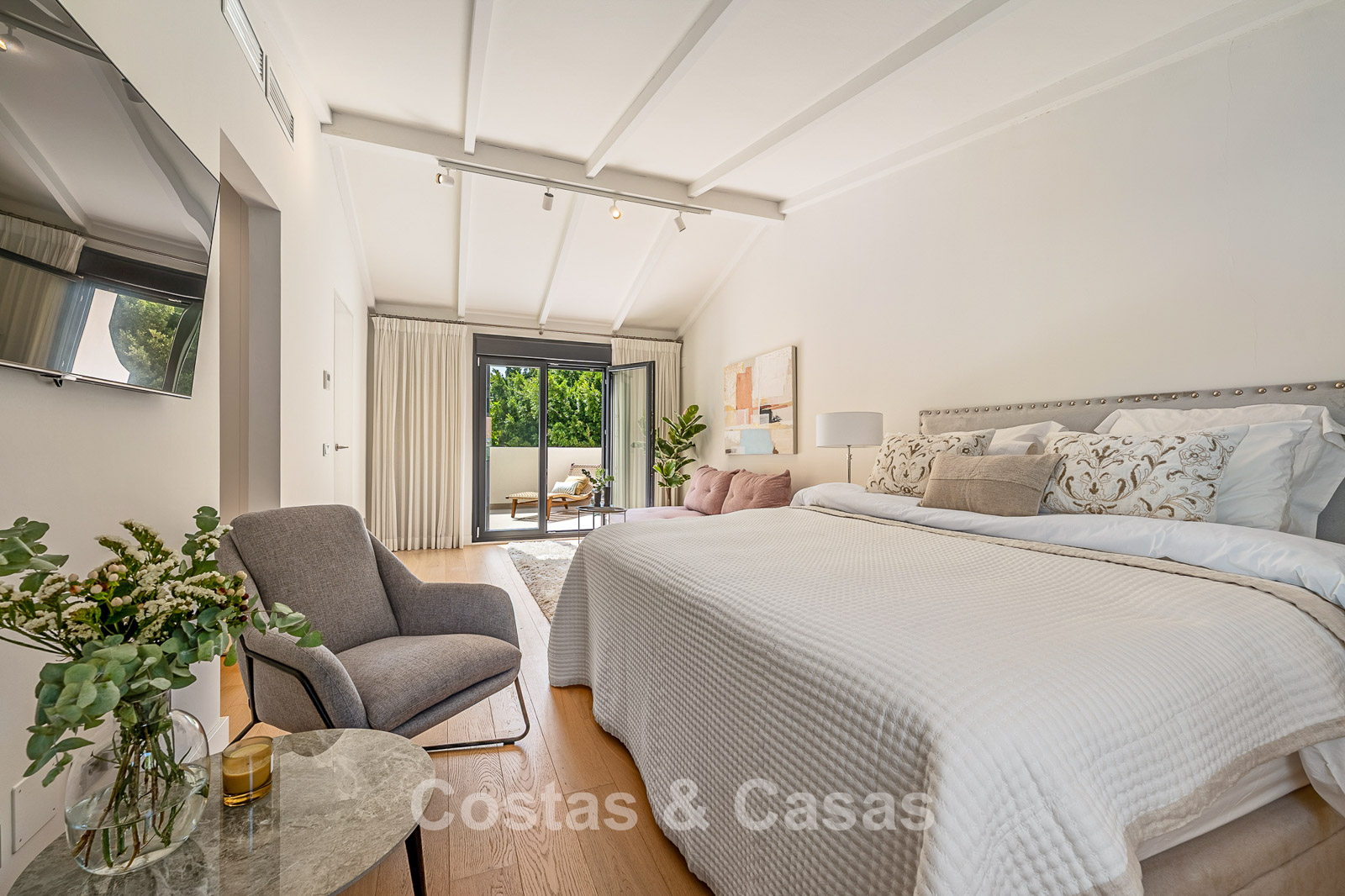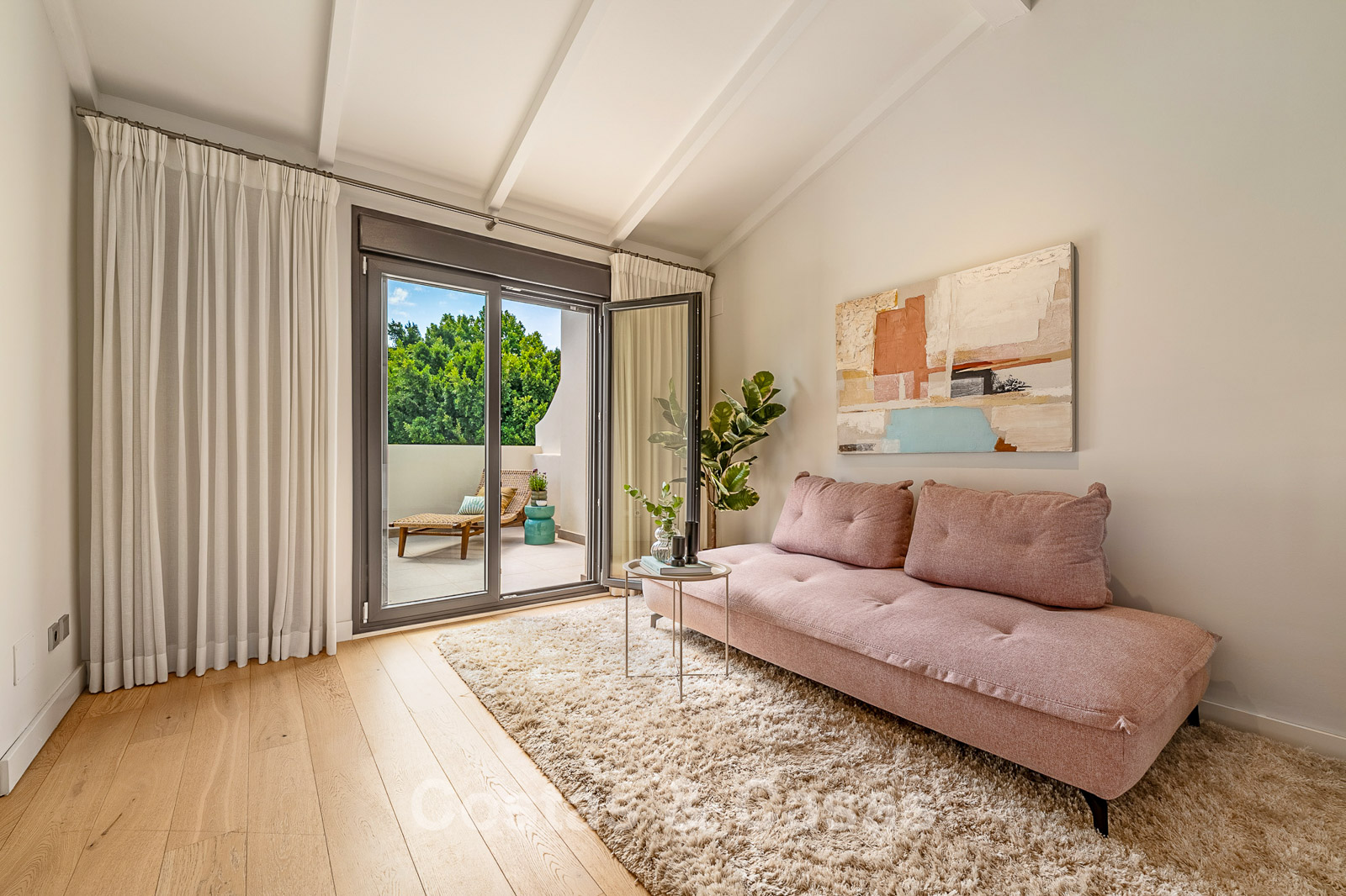 Ubicada en una de las zonas más cotizadas de Marbella, en una urbanización cerrada conocida por sus edificios de baja altura y su arquitectura típica andaluza. A un paso de la playa, los residentes disfrutan de acceso directo al paseo marítimo y al mar Mediterráneo. Los conocidos lugares de interés como Puente Romano y el Hotel Marbella Club están cerca, con restaurantes de lujo, clubes y bares de moda a poca distancia. El vibrante centro de Marbella está a 5 minutos en coche, mientras que Puerto Banús está a aproximadamente 7 minutos. Los residentes disfrutan de servicios exclusivos como dos piscinas comunitarias, una pista de tenis y una pista de pádel, rodeadas de jardines impecablemente cuidados.
