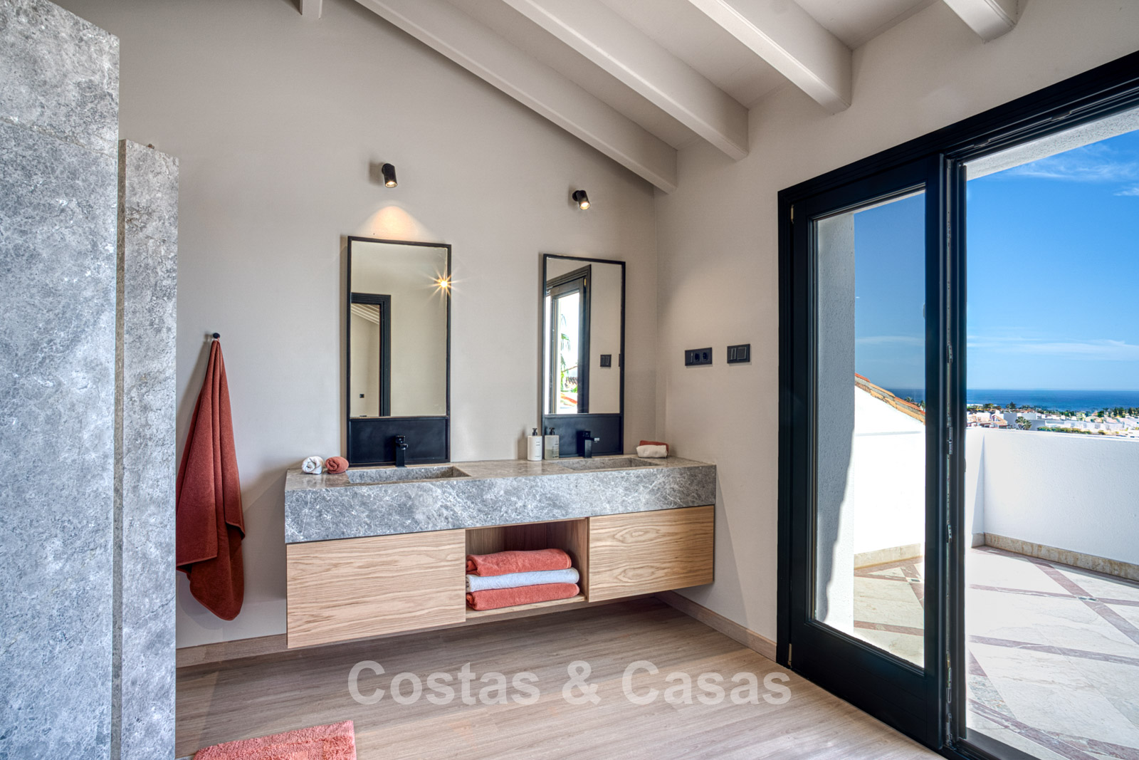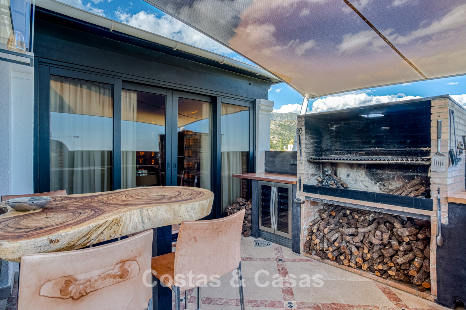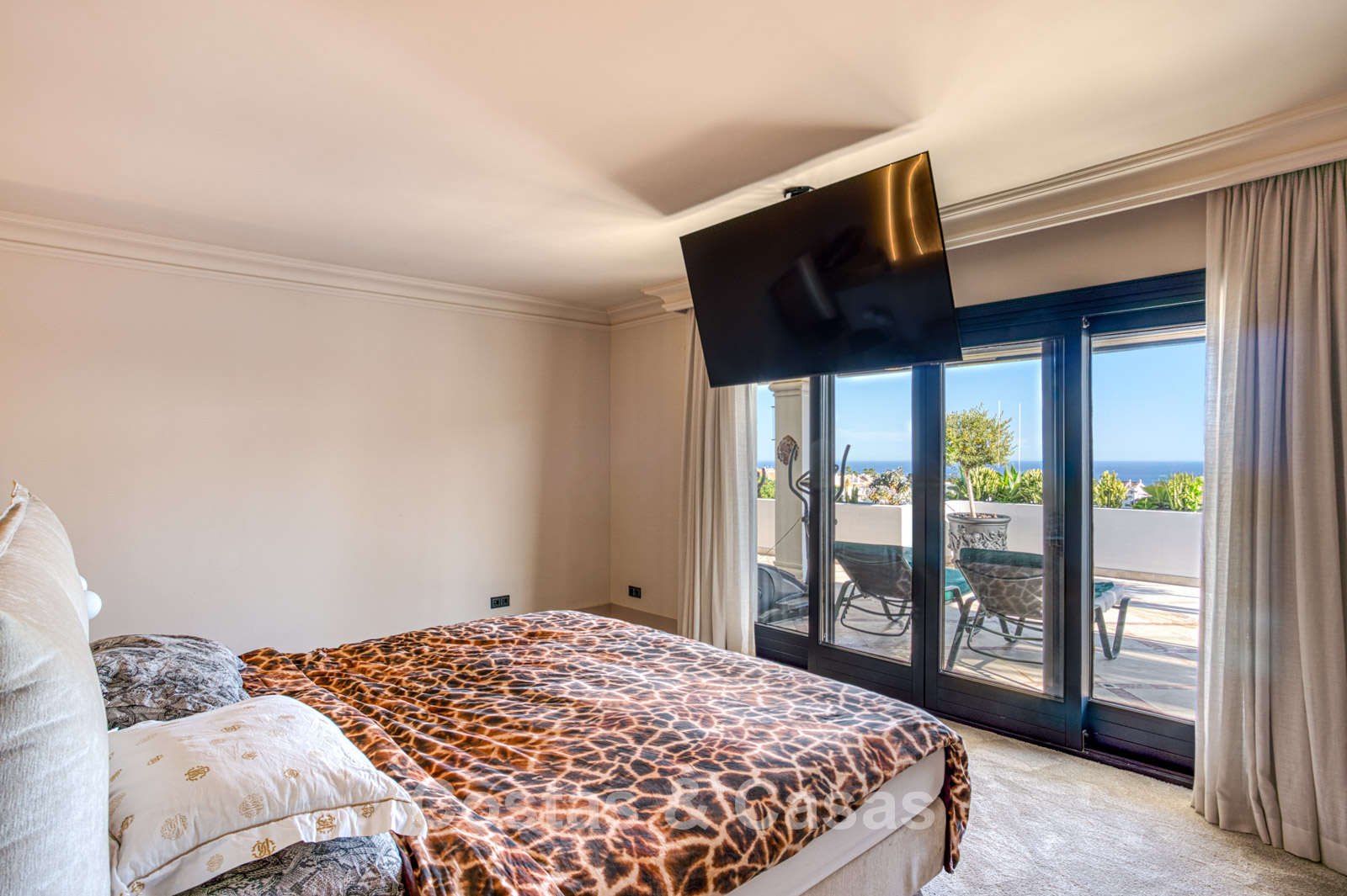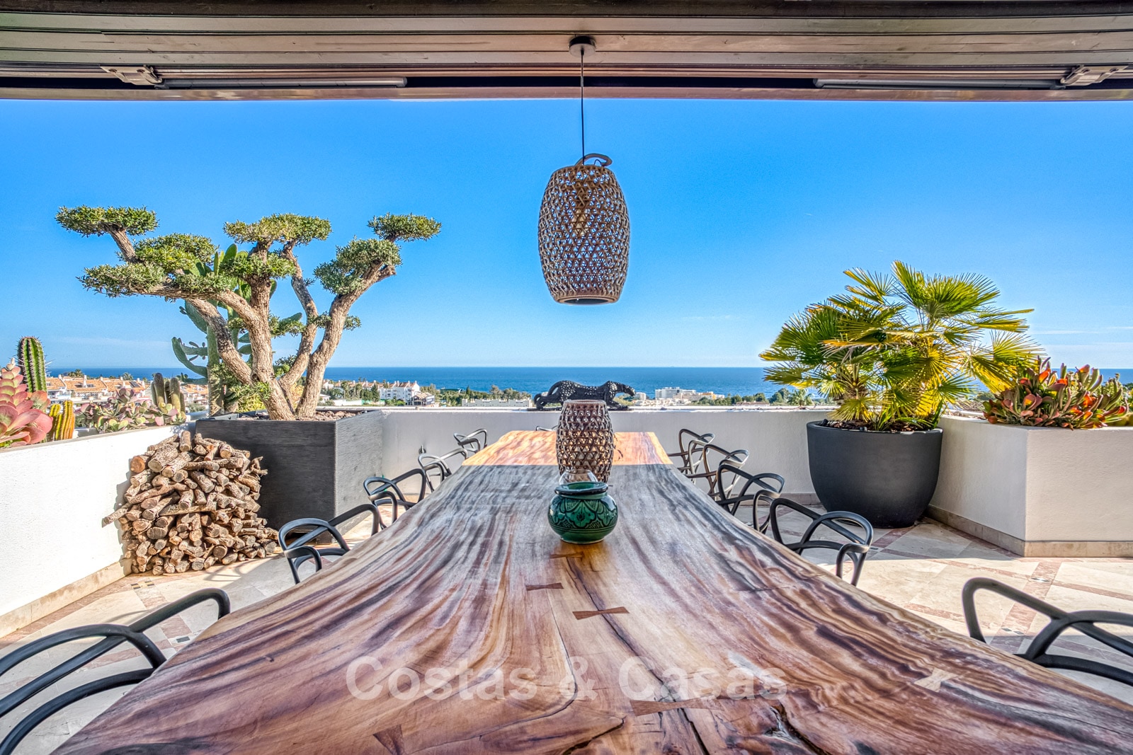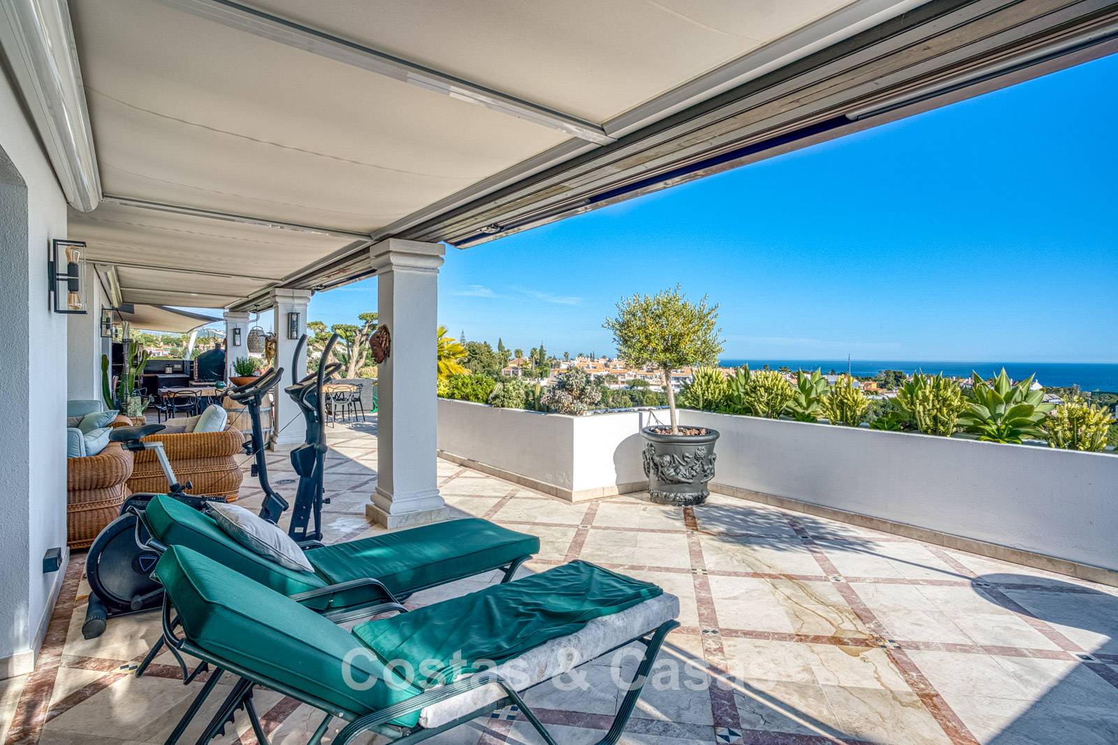 Atico duplex en excelente estado. Utilizando materiales de alta calidad. Terrazas soleadas y cubiertas con instalaciones de relax. Situado al sur. Una terraza sombreada está equipada con una zona de barbacoa y un comedor al aire libre. Vistas panorámicas al mar Mediterráneo y al paisaje montañoso. Los grandes ventanales maximizan la luz natural y se abren al espacio exterior. Espacio de estar de planta abierta con una acogedora zona de descanso y sala de TV. Comedor integrado. Una cocina práctica con mucho espacio de almacenamiento, una isla de cocina central con barra de desayuno. Al lado hay un lavadero/cuarto de servicio. Una puerta corredera da acceso a una bodega de vinos climatizada y hecha a medida. 4 dormitorios, 4 baños y un aseo de invitados independiente. La suite principal se beneficia de un vestidor abierto, un baño en suite y una terraza privada. Suelos de mármol. Trastero. Parking privado para 2 coches.