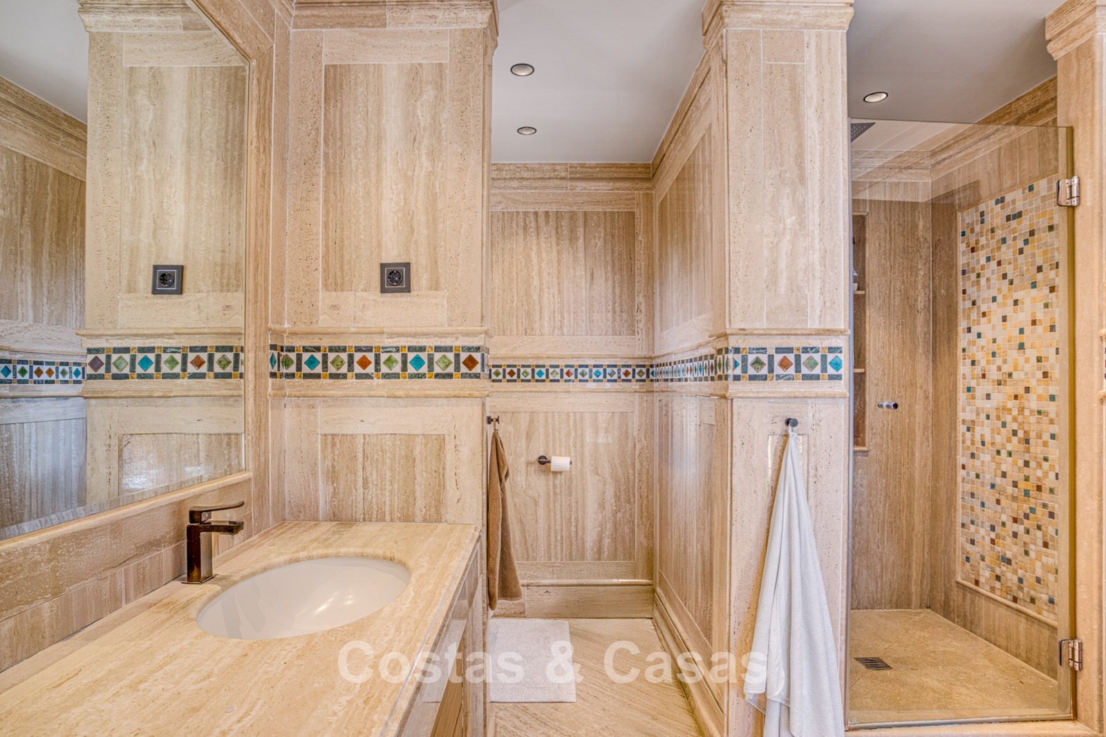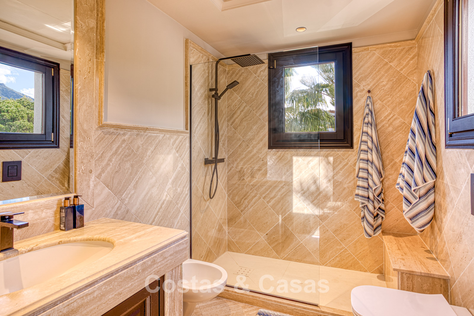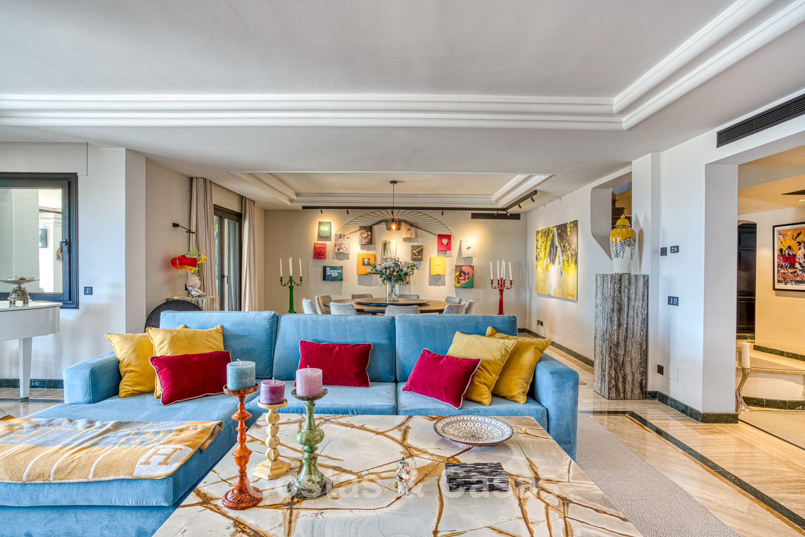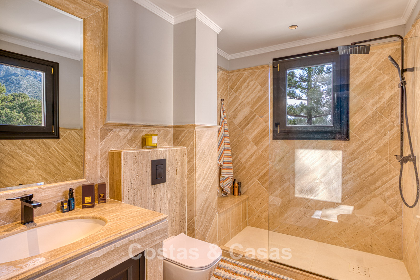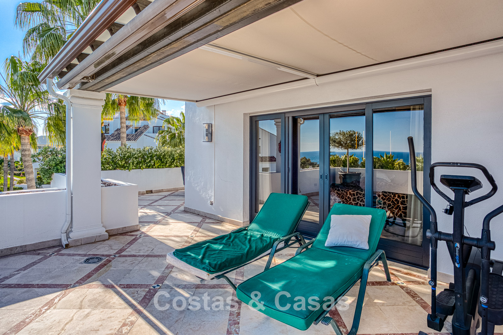 Atico duplex en excelente estado. Utilizando materiales de alta calidad. Terrazas soleadas y cubiertas con instalaciones de relax. Situado al sur. Una terraza sombreada está equipada con una zona de barbacoa y un comedor al aire libre. Vistas panorámicas al mar Mediterráneo y al paisaje montañoso. Los grandes ventanales maximizan la luz natural y se abren al espacio exterior. Espacio de estar de planta abierta con una acogedora zona de descanso y sala de TV. Comedor integrado. Una cocina práctica con mucho espacio de almacenamiento, una isla de cocina central con barra de desayuno. Al lado hay un lavadero/cuarto de servicio. Una puerta corredera da acceso a una bodega de vinos climatizada y hecha a medida. 4 dormitorios, 4 baños y un aseo de invitados independiente. La suite principal se beneficia de un vestidor abierto, un baño en suite y una terraza privada. Suelos de mármol. Trastero. Parking privado para 2 coches.