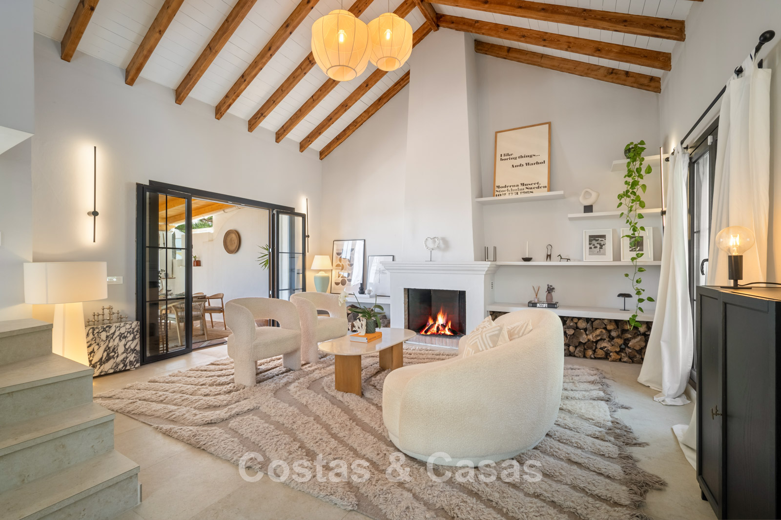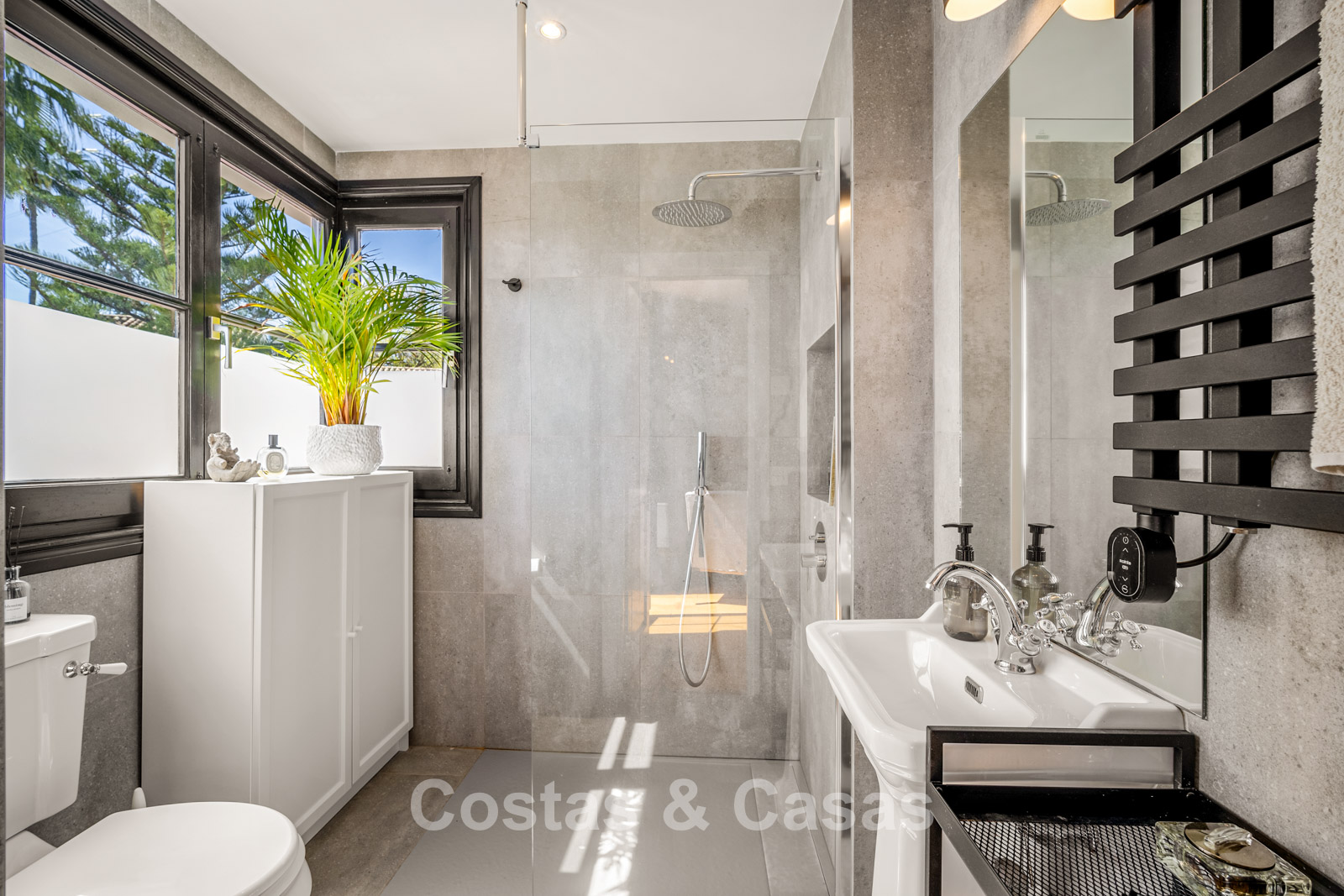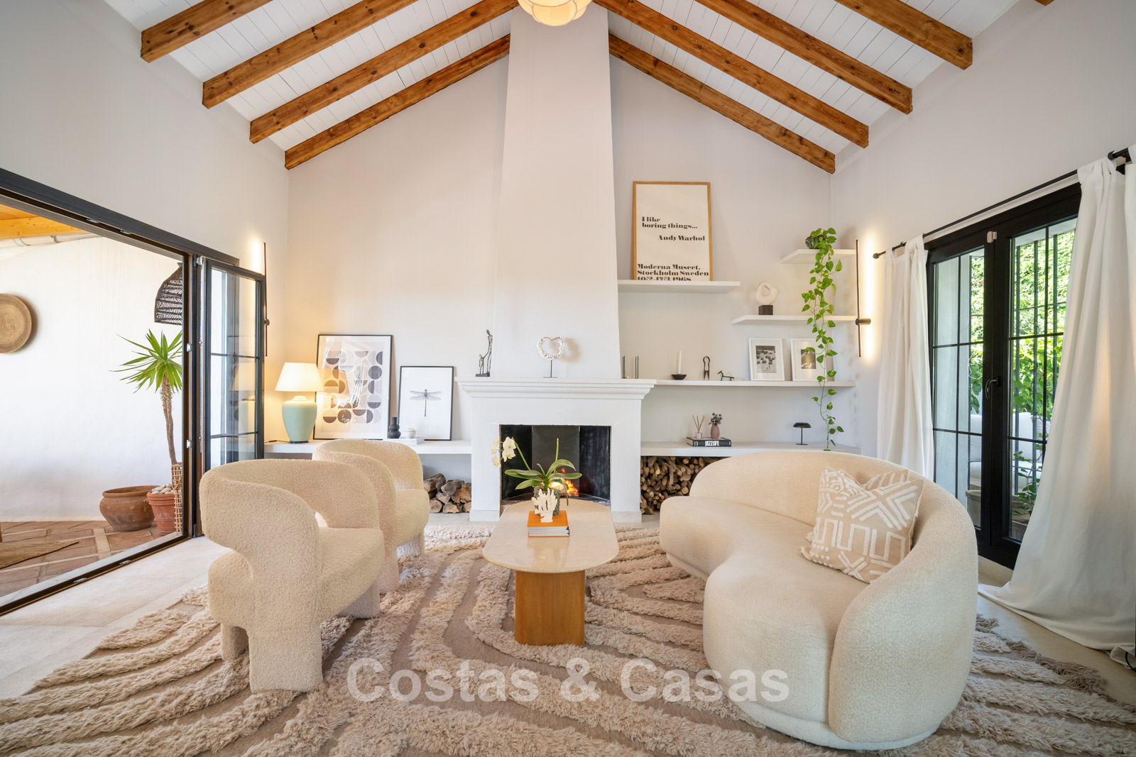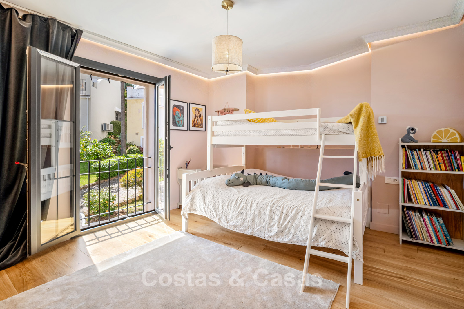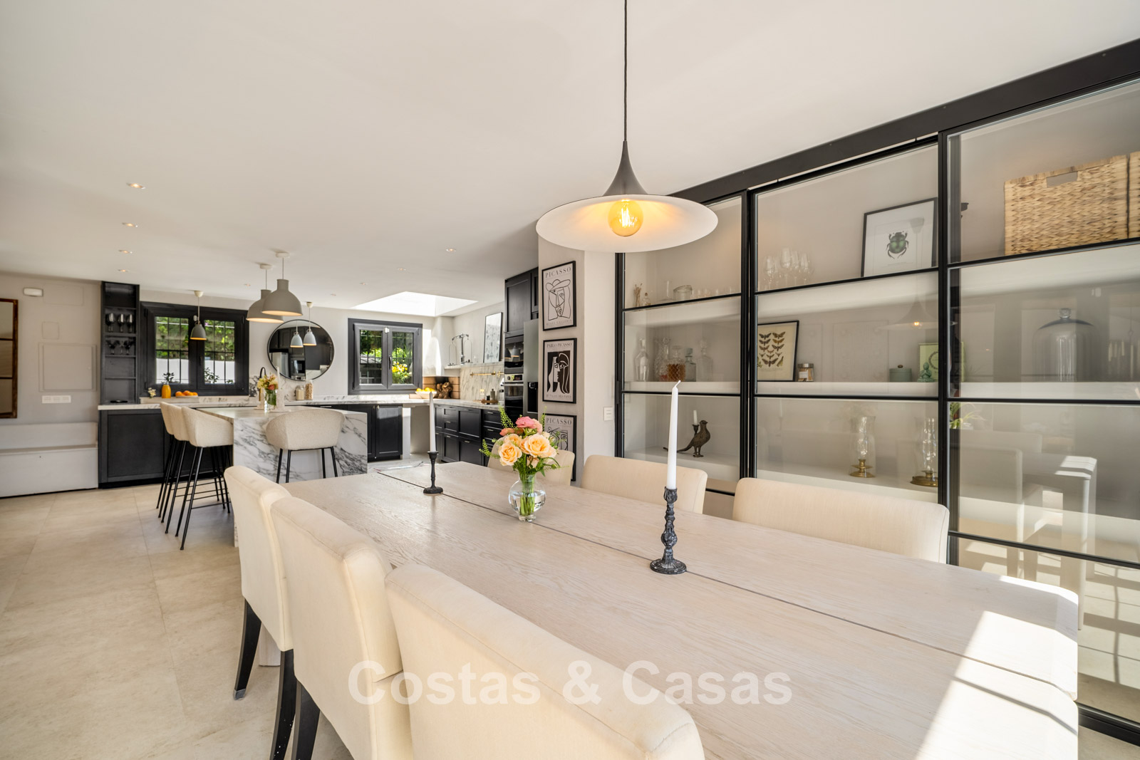 Una casa adosada superior renovada en impecables condiciones. Esta casa adosada de estilo andaluz atemporal combina el encanto tradicional con elegantes interiores escandinavos. Situada al suroeste. Desde la terraza se tiene una hermosa vista del mar Mediterráneo. Terrazas soleadas y cubiertas con zona chill-out y un acogedor 'comedor al fresco'. Las ventanas altas en toda la casa proporcionan un interior luminoso y acceso a las zonas exteriores. Concepto de planta abierta. La espaciosa sala de estar cuenta con un techo con vigas de doble altura y una vista de la planta superior. La espaciosa y elegante cocina, equipada con una isla central para sentarse. Comedor integrado que da a una terraza con barbacoa. 4 dormitorios y 4+1 baños. El nivel del sótano ofrece un valor adicional con un dormitorio de invitados, un acogedor salón, un baño y una sauna privada, perfecto para entretener a los invitados o crear un oasis de bienestar personal. El sótano también se puede convertir fácilmente en un garaje privado. Suelos de piedra natural. Cuarto de lavado.
