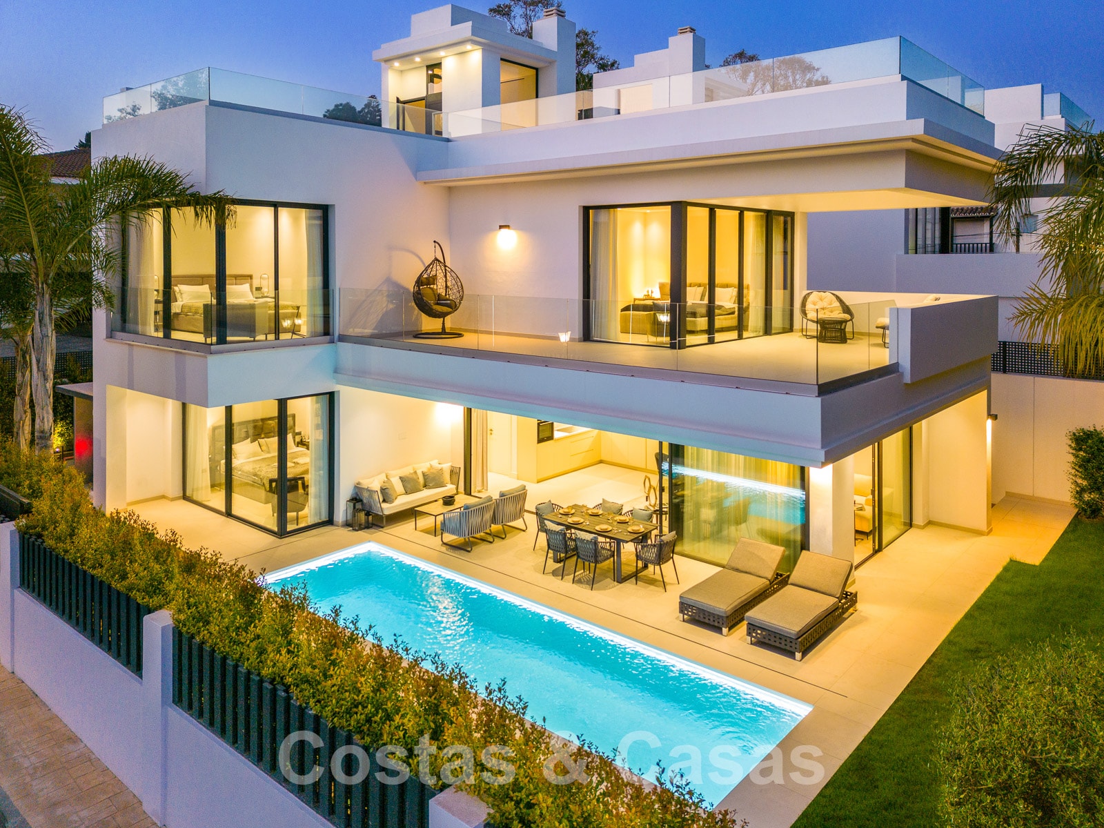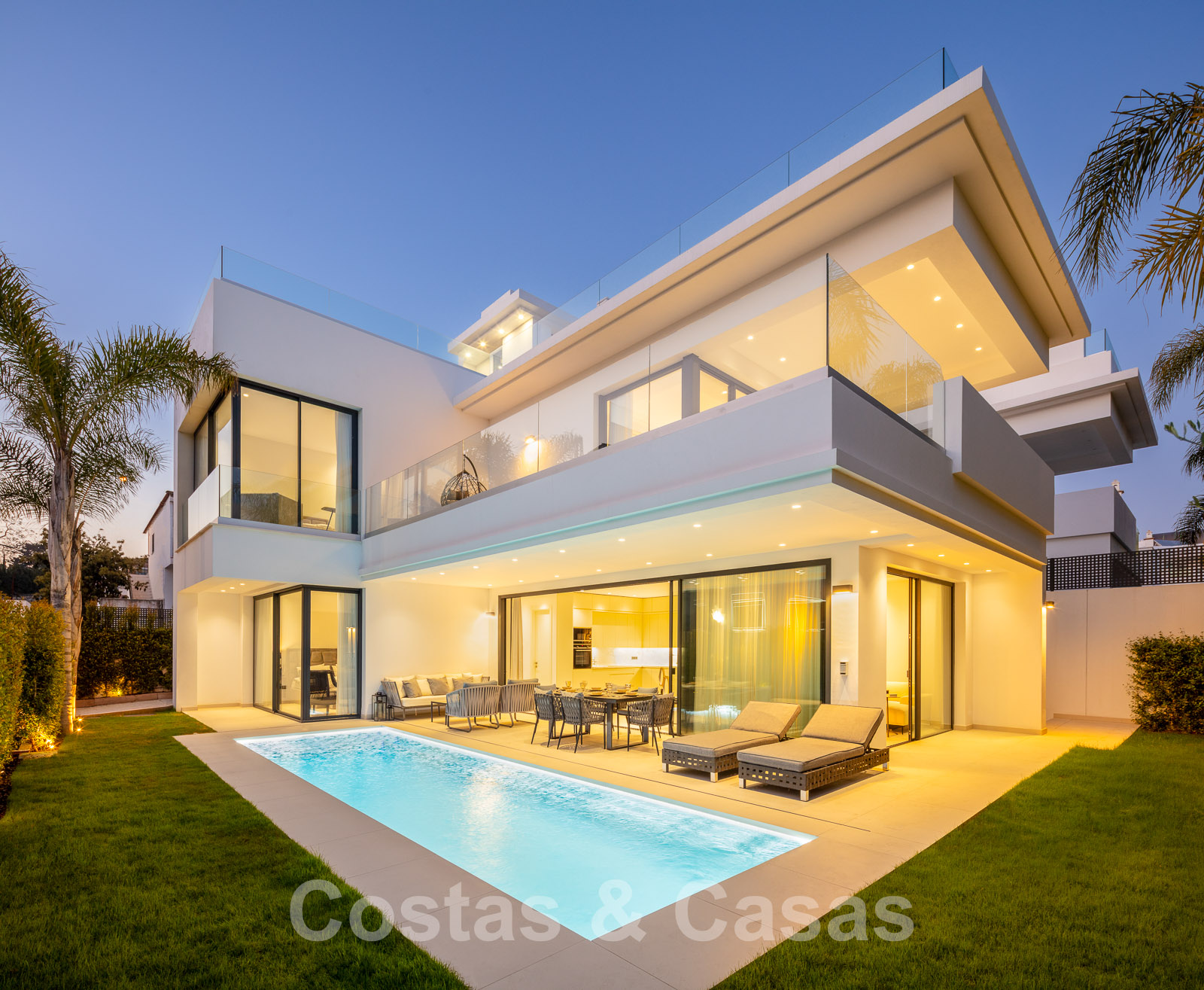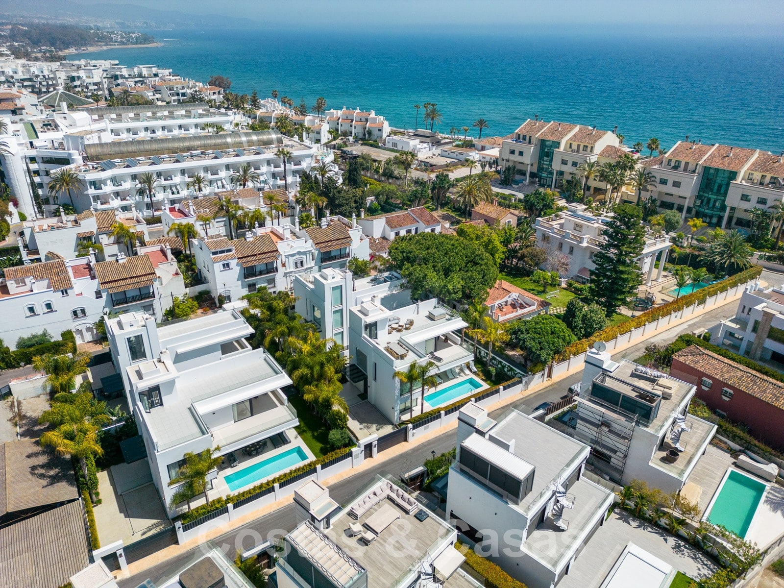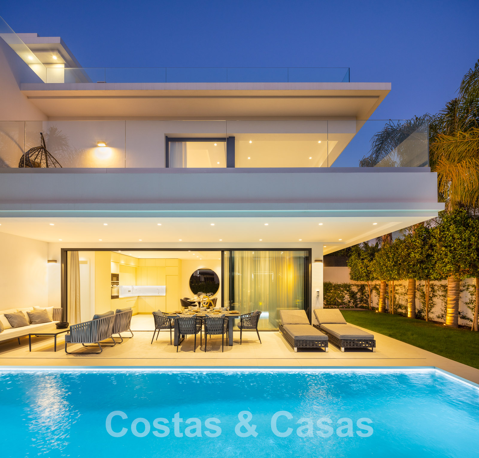 Villa de diseño moderno en venta a pocos pasos de la playa y los clubes de playa y a poca distancia del paseo marítimo y del centro de San Pedro, Marbella