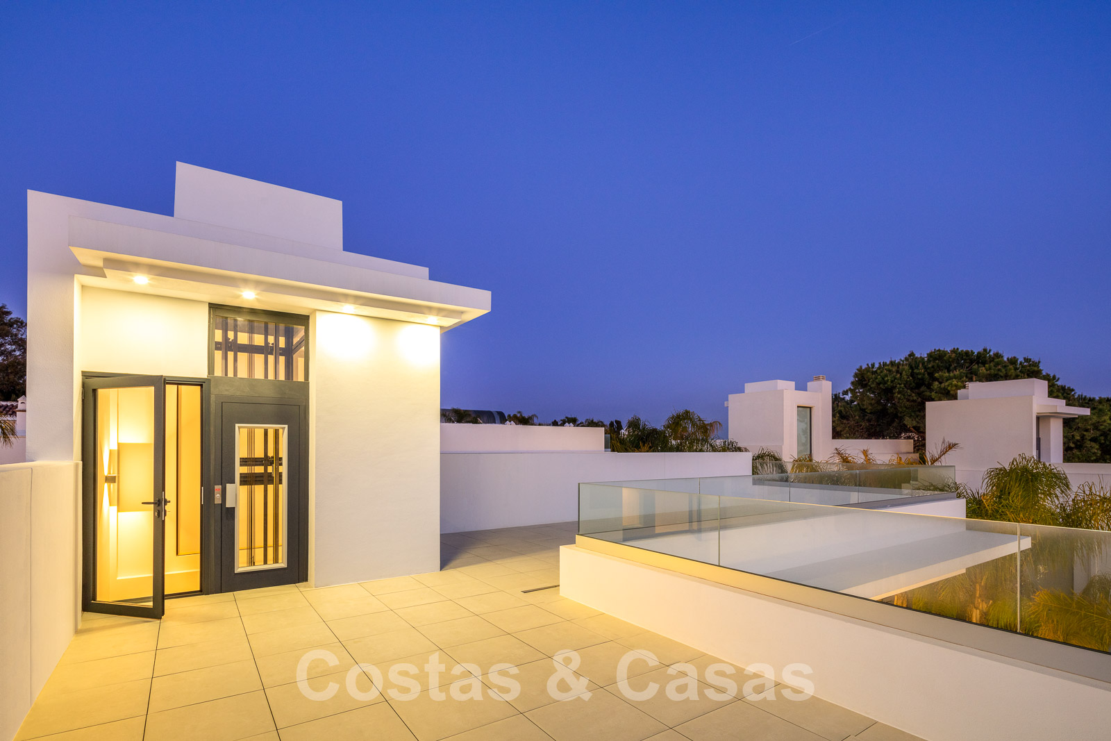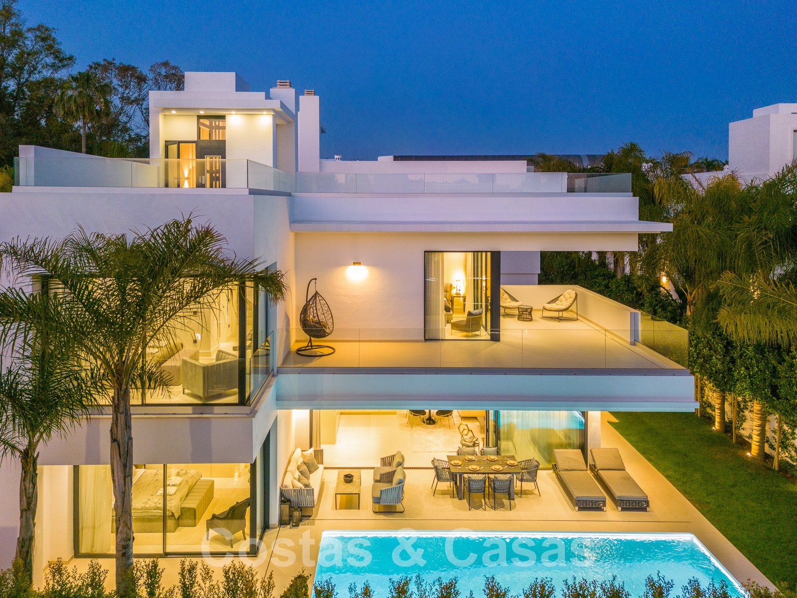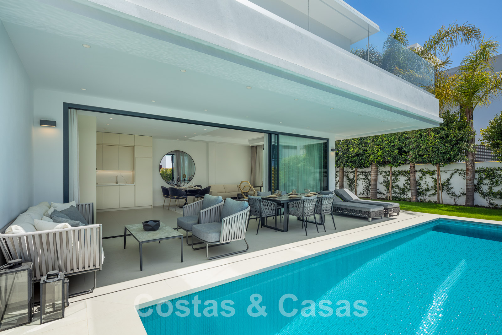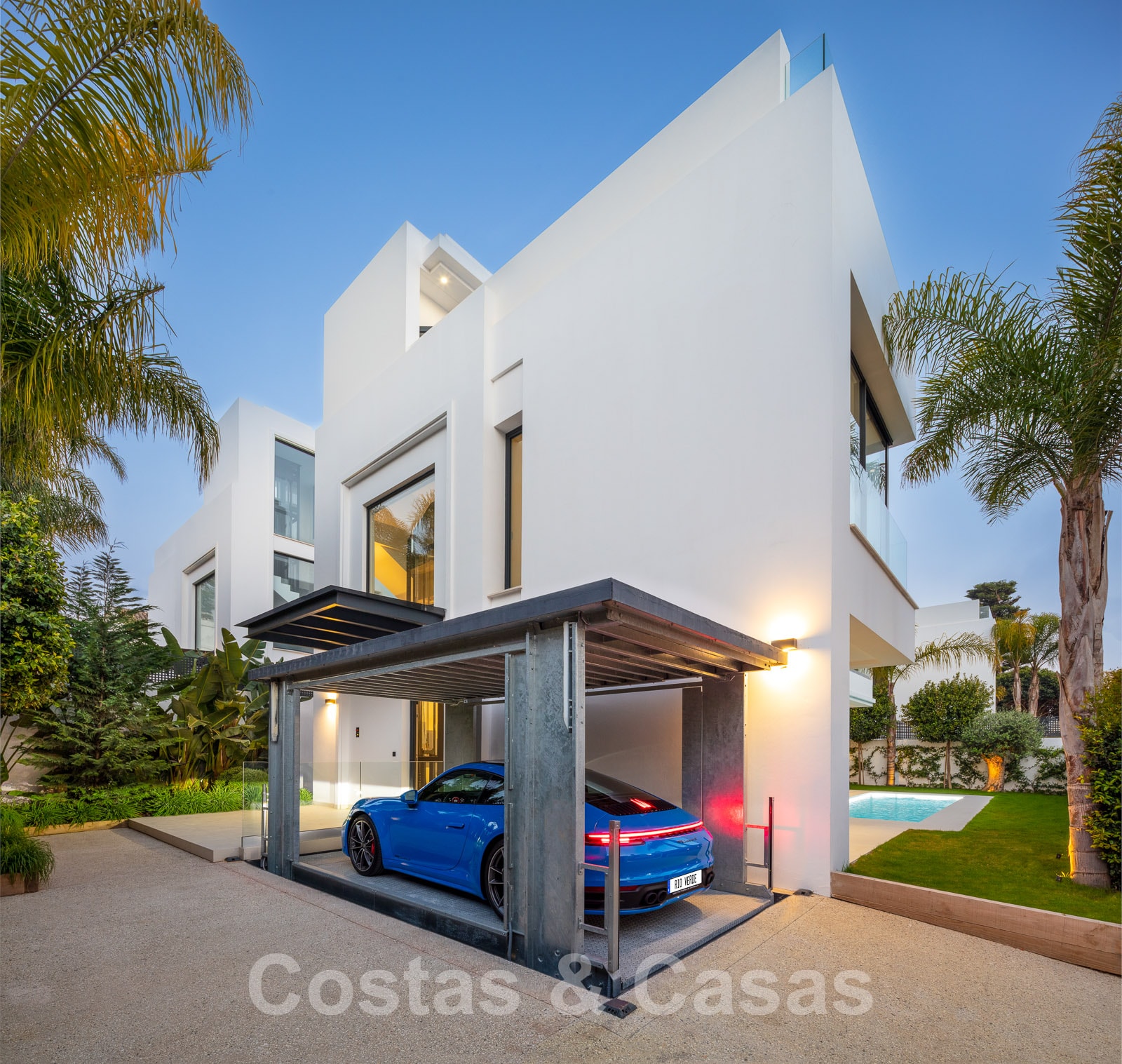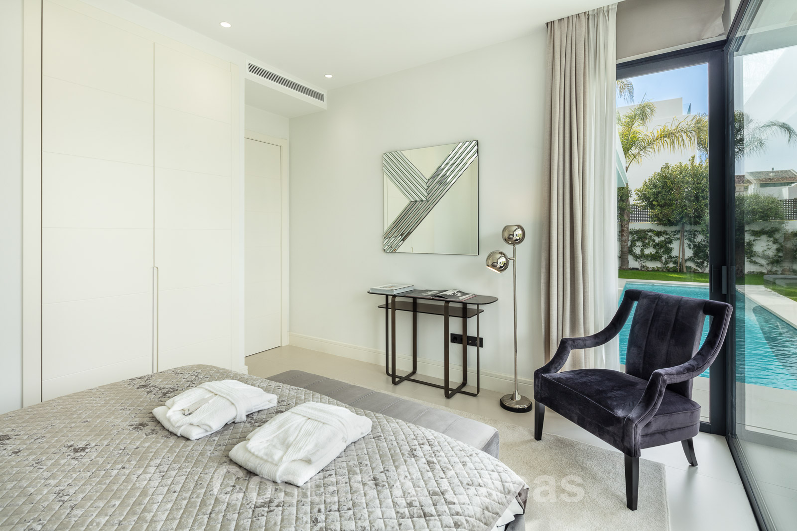 Villa de diseño moderno en venta a pocos pasos de la playa y los clubes de playa y a poca distancia del paseo marítimo y del centro de San Pedro, Marbella