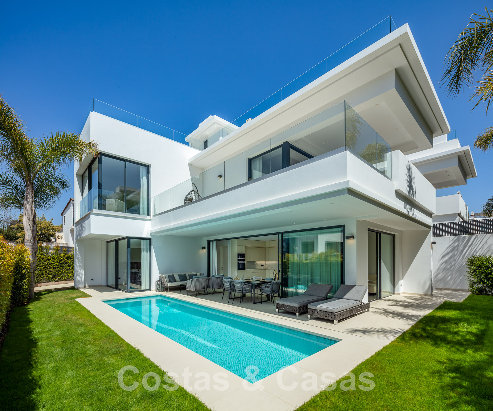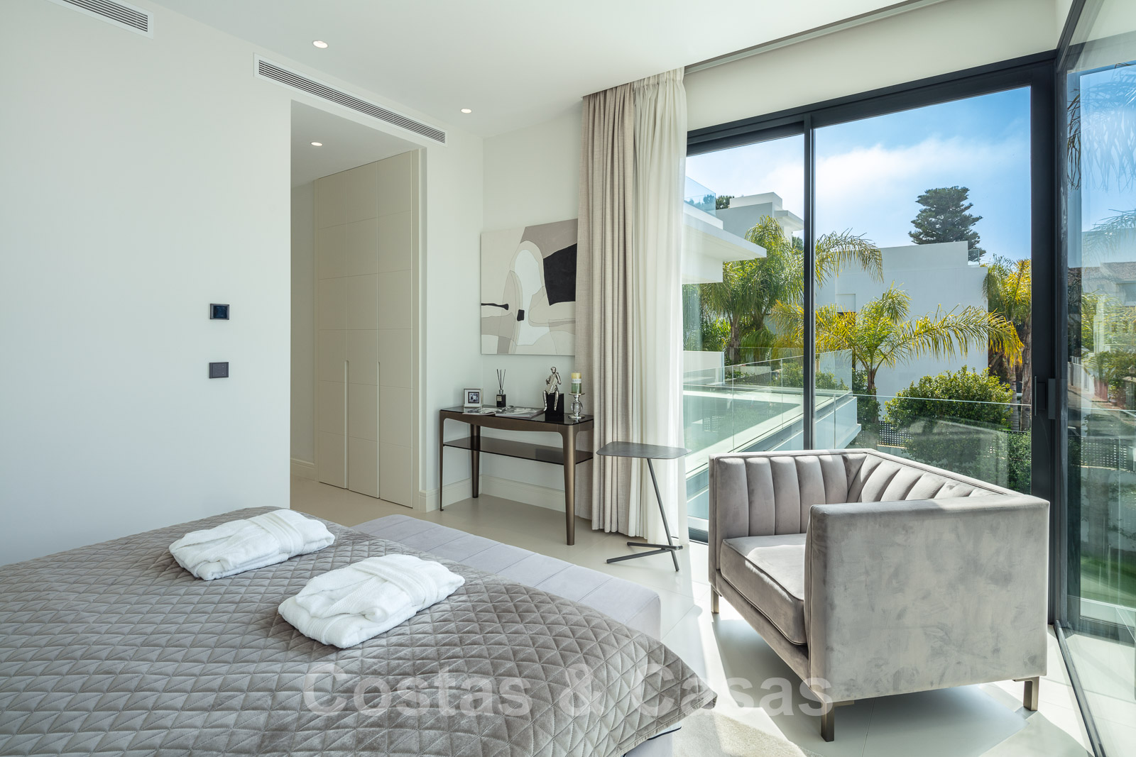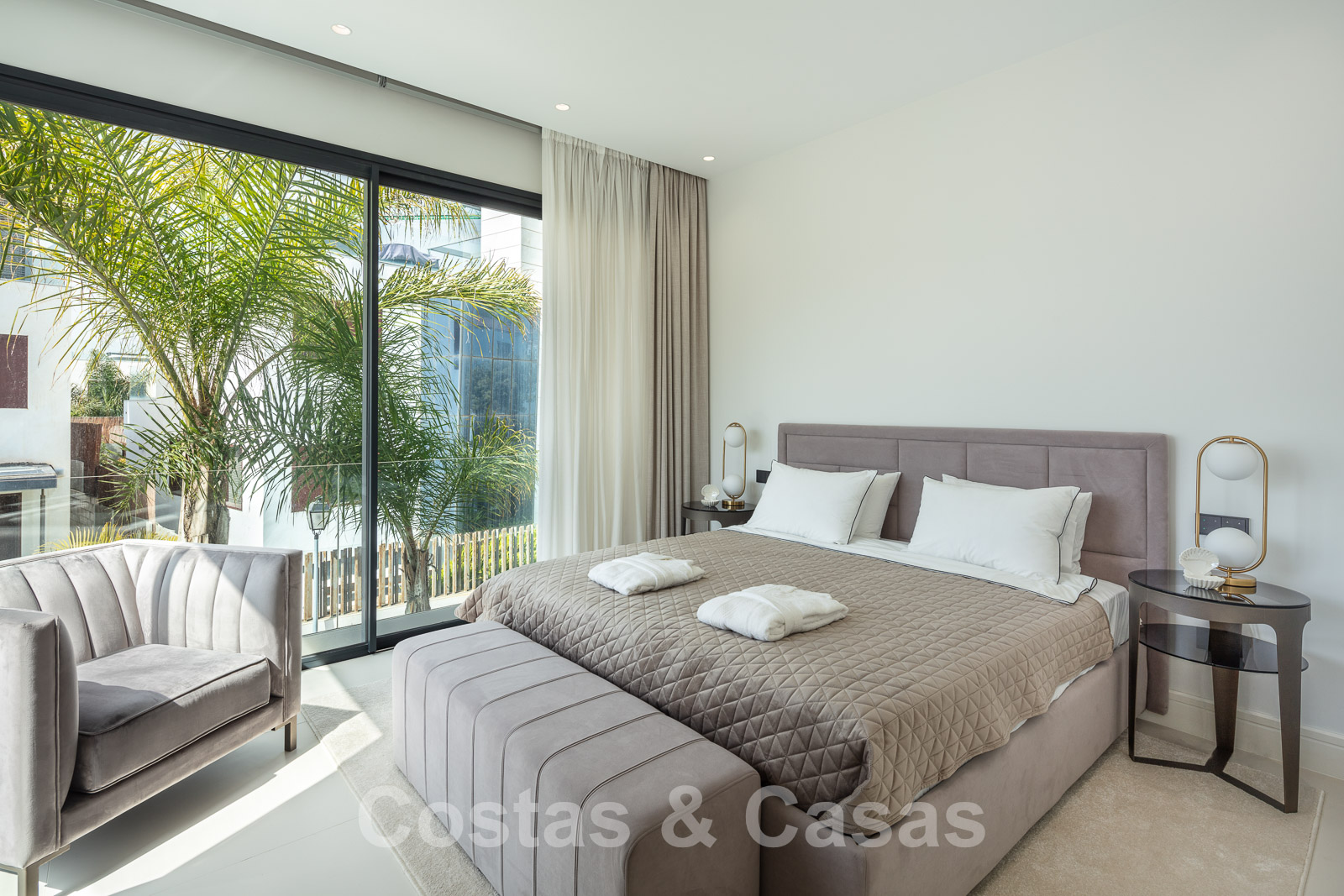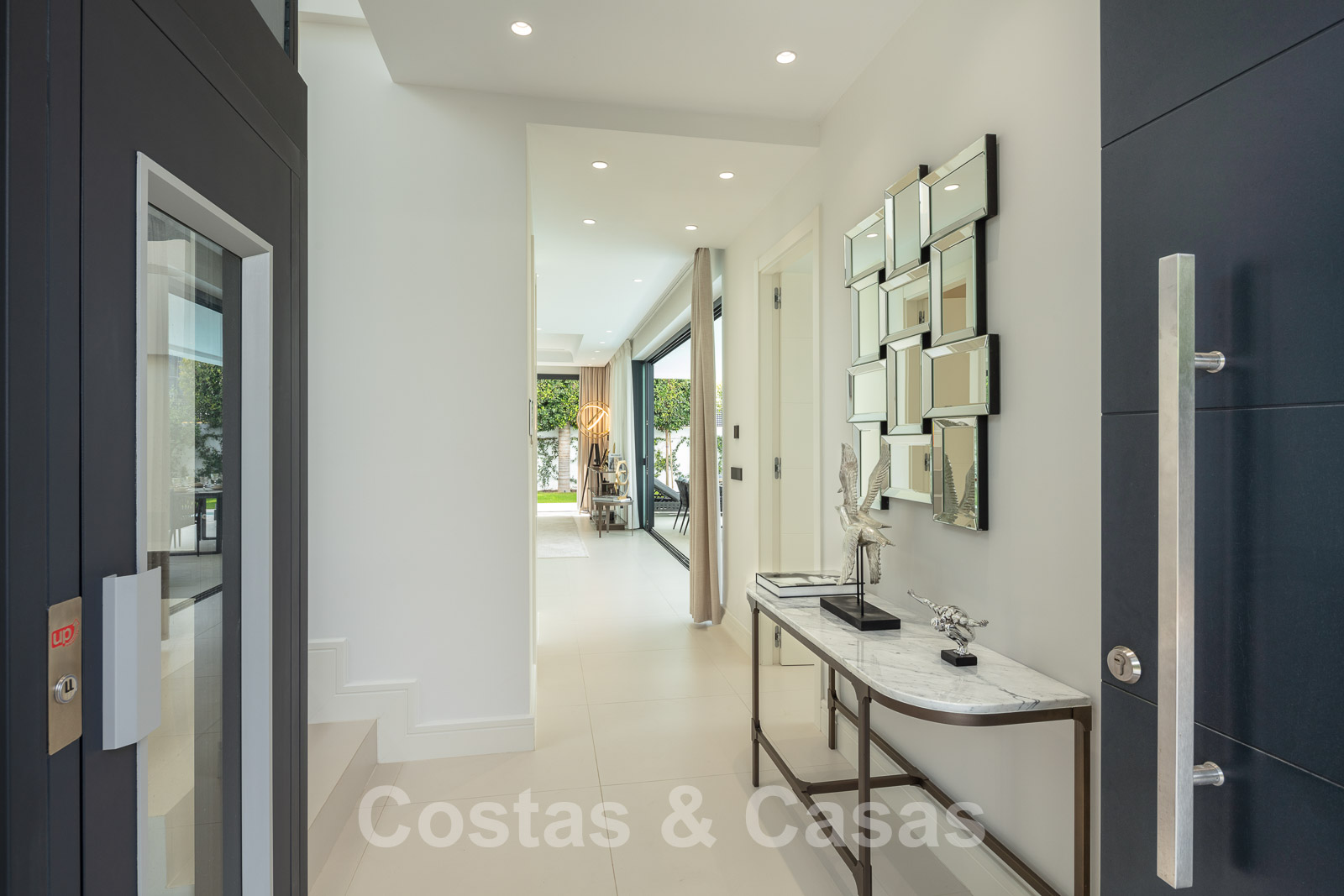 Villa de diseño moderno en venta a pocos pasos de la playa y los clubes de playa y a poca distancia del paseo marítimo y del centro de San Pedro, Marbella