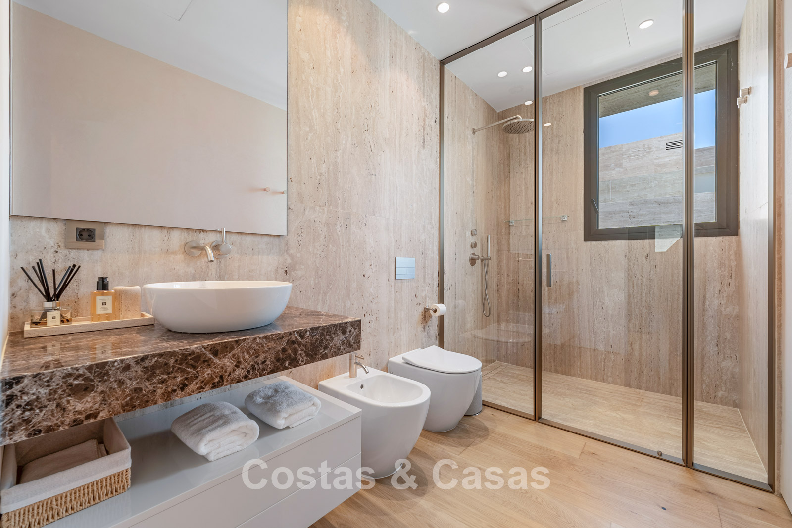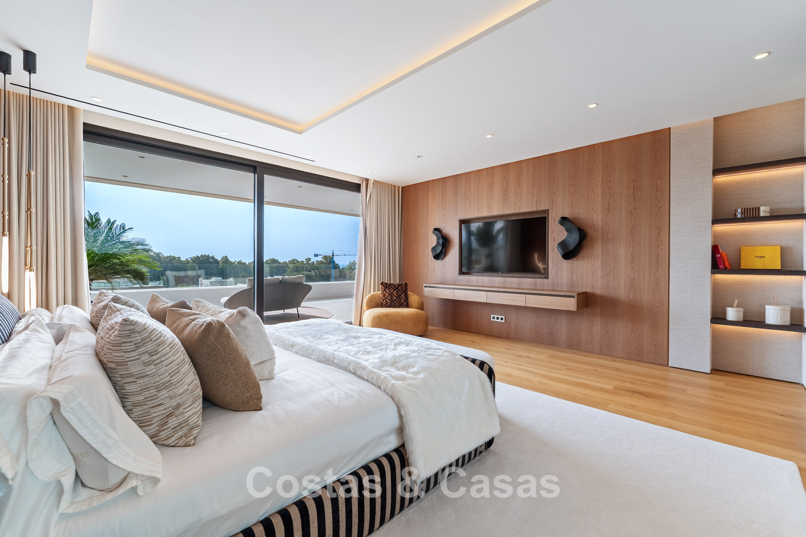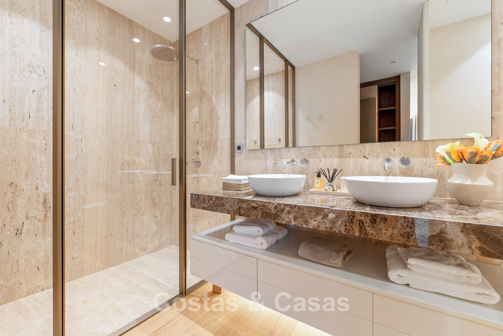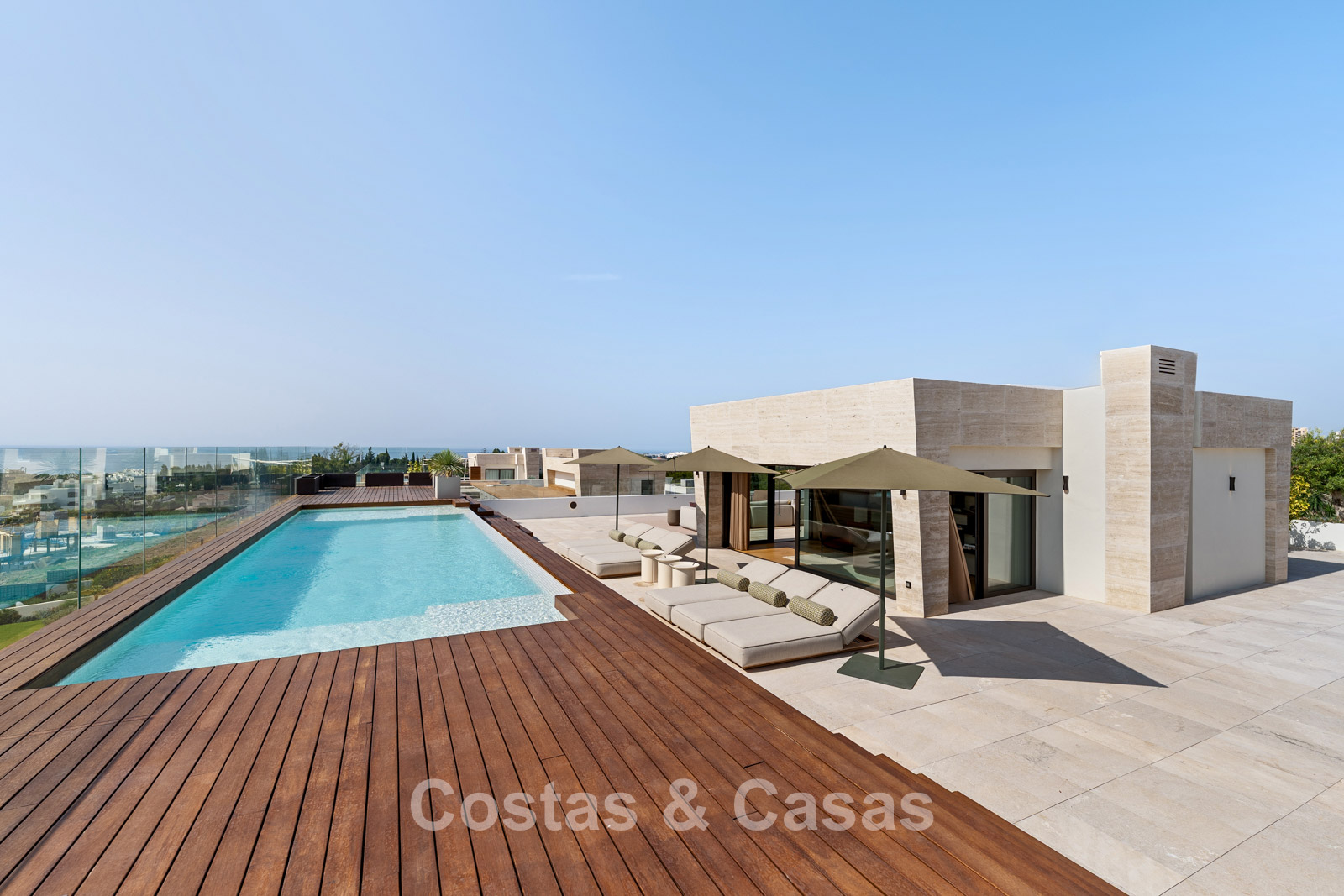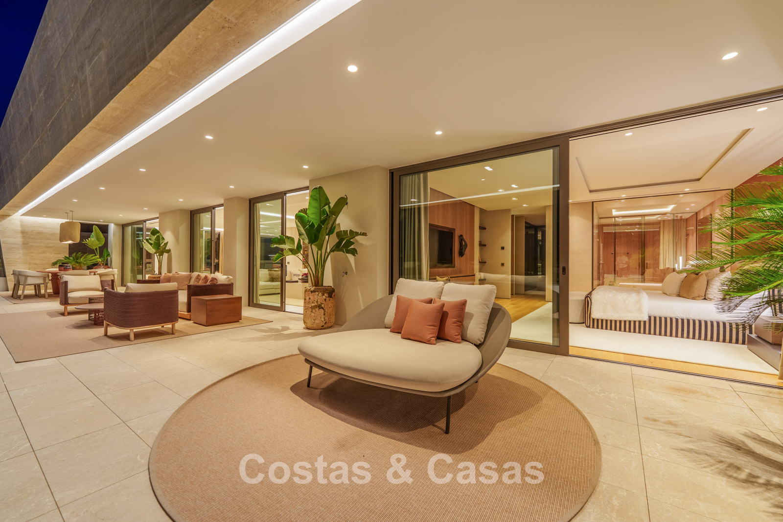 Ático dúplex, con impresionante tamaño y acabados excepcionales. Diseñado con materiales de alta calidad y acabados de lujo. Orientado al sureste. Las amplias terrazas amplían el interior y ofrecen una experiencia de vida al aire libre inigualable. La planta superior cuenta con una espaciosa azotea con piscina privada como protagonista, rodeada de elegantes zonas de estar, tumbonas y un exuberante paisaje. La planta baja también ofrece una amplia terraza con varias zonas de estar, una gran mesa y cómodos sillones que invitan a relajarse. Las vistas panorámicas se extienden sobre el paisaje circundante, las montañas y el mar Mediterráneo. El lujo se une a la elegancia gracias al diseño interior de Fendi Casa. Las puertas correderas de suelo a techo con elegantes marcos ocultos crean una conexión armoniosa con el exterior y aportan abundante luz natural. Un luminoso salón con una acogedora sala de TV y un comedor integrado. La cocina, diseñada por expertos, está equipada con electrodomésticos de alta gama y una isla que invita a disfrutar de un relajante desayuno. 4 dormitorios, 4 baños y 2 aseos independientes. Suelos de mármol. Garaje interior para 4 coches.