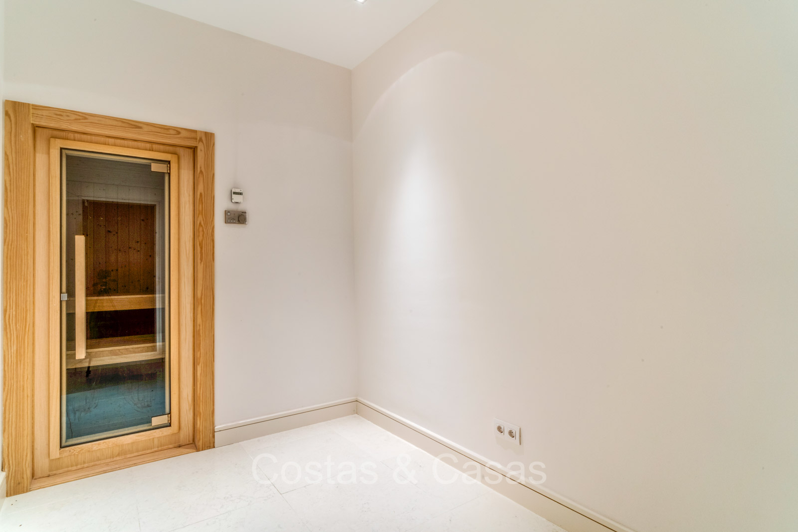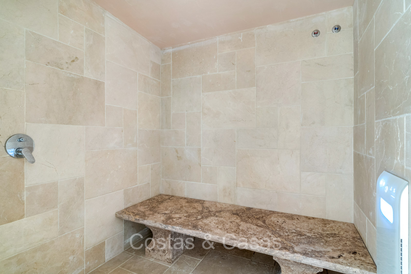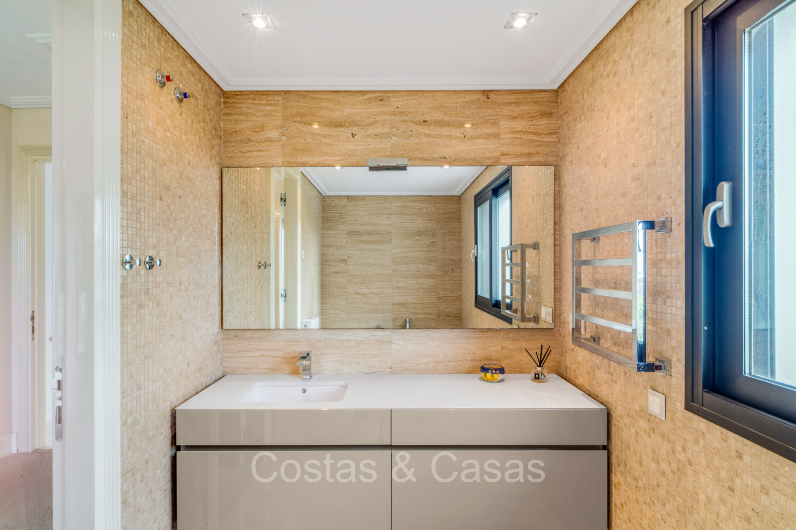 Villa independiente con un estilo arquitectónico moderno y mediterráneo. Utilizando materiales de calidad. Las altas ventanas correderas con marcos empotrados se abren al espacio exterior y también generan abundante luz natural. Amplio espacio habitable con diseño abierto. Amplio salón con una acogedora sala de TV, equipada con chimenea. Comedor integrado. Amplia cocina con mucho espacio de almacenaje, isla para cocinar y barra desayunadora. 6 dormitorios, 6 baños y aseo independiente. En la planta superior hay una terraza con vistas parciales al mar. La planta inferior consta de 2 dormitorios adicionales con baños, sala de juegos, sauna y hammam. Suelos de mármol. Cuarto de lavado. Garaje interior para 4 coches.