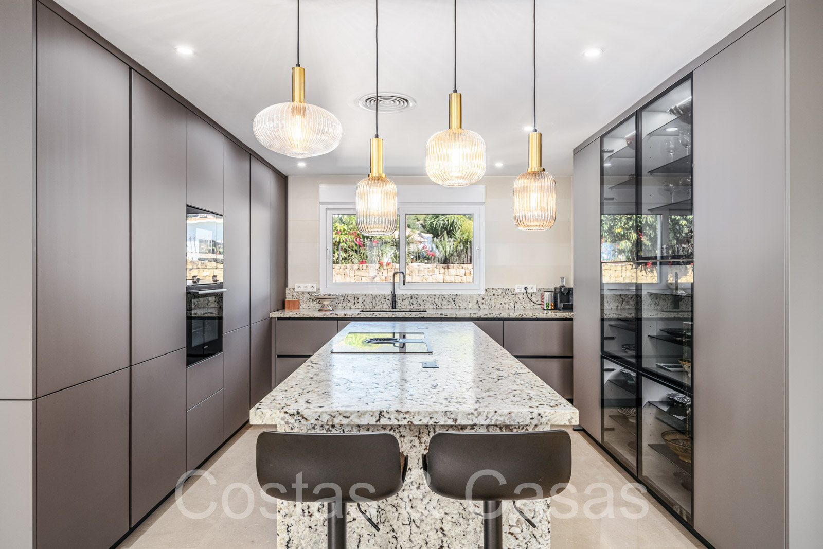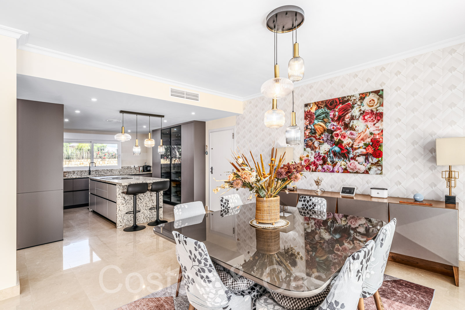 Villa independiente con toques andaluces, como tejas de terracota, que añaden encanto y carácter sureño. Construida con un alto nivel. Interior atemporal y elegante con refinados tonos neutros. Diseño abierto. Espacio abierto con sala de estar y comedor. Cocina totalmente equipada con isla para cocinar y barra desayunadora. Comedor integrado. Las altas ventanas correderas se abren a las acogedoras terrazas y también ofrecen habitaciones luminosas. 4 dormitorios, 3 baños. Espacio de oficina amueblado. Sauna. Cuarto de lavado. Garaje interior para 1 coche. Aparcamiento adicional para 1 auto en la entrada.