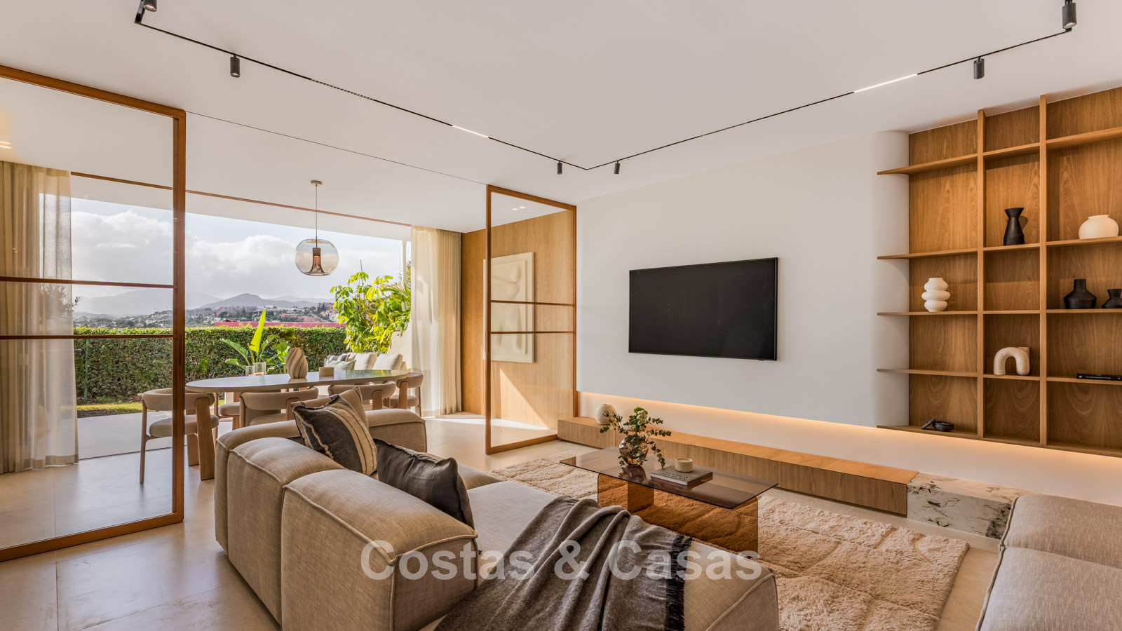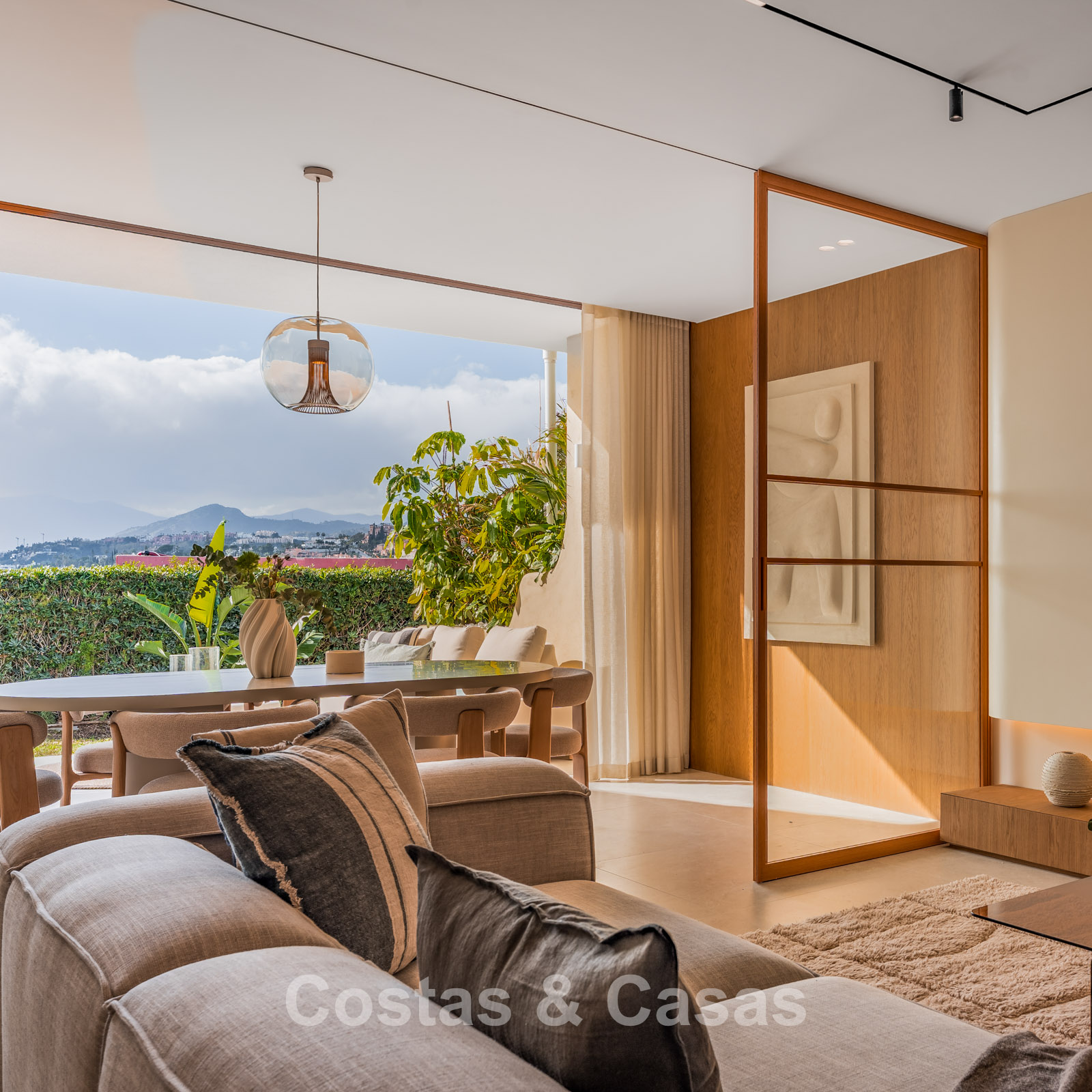 Esta magnífica casa adosada se encuentra en un estado impecable y ofrece una elegante combinación de confort moderno y diseño atemporal. Diseñada con un enfoque en la calidez y la elegancia, destacando los acabados en madera natural. Orientación oeste. La propiedad cuenta con varias terrazas amplias, ideales para comer al aire libre y relajarse. En la planta superior se encuentra un solárium que ofrece máxima privacidad y horas de sol. Desde este nivel se disfrutan impresionantes vistas panorámicas de las colinas verdes, la naturaleza mediterránea y el mar Mediterráneo a lo lejos. El interior transmite un refinado minimalismo moderno con fuertes influencias del estilo Japandi. Los ventanales de suelo a techo son un elemento clave del concepto de luz y espacio, conectando de forma transparente el salón y el comedor. Junto al comedor se encuentra una terraza soleada con una cómoda zona lounge, que se integra perfectamente con el acogedor jardín. Zona de estar de concepto abierto. La cocina moderna está totalmente equipada y conecta directamente con el comedor. Dispone de cuatro amplios dormitorios, siendo el dormitorio principal con baño en suite de lujo y terraza privada. Suelos de baldosas de gran formato en tono crema. Lavadero independiente. Carport para 1 coche.