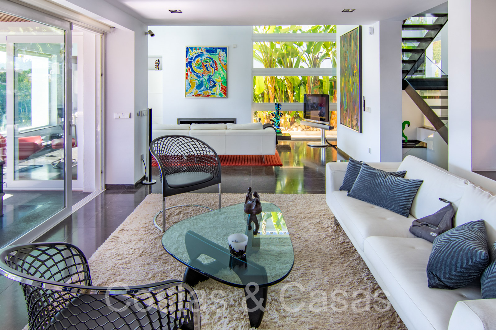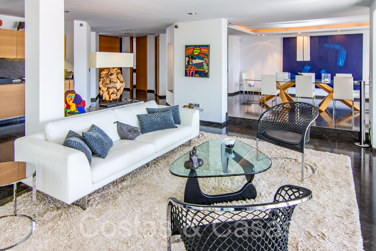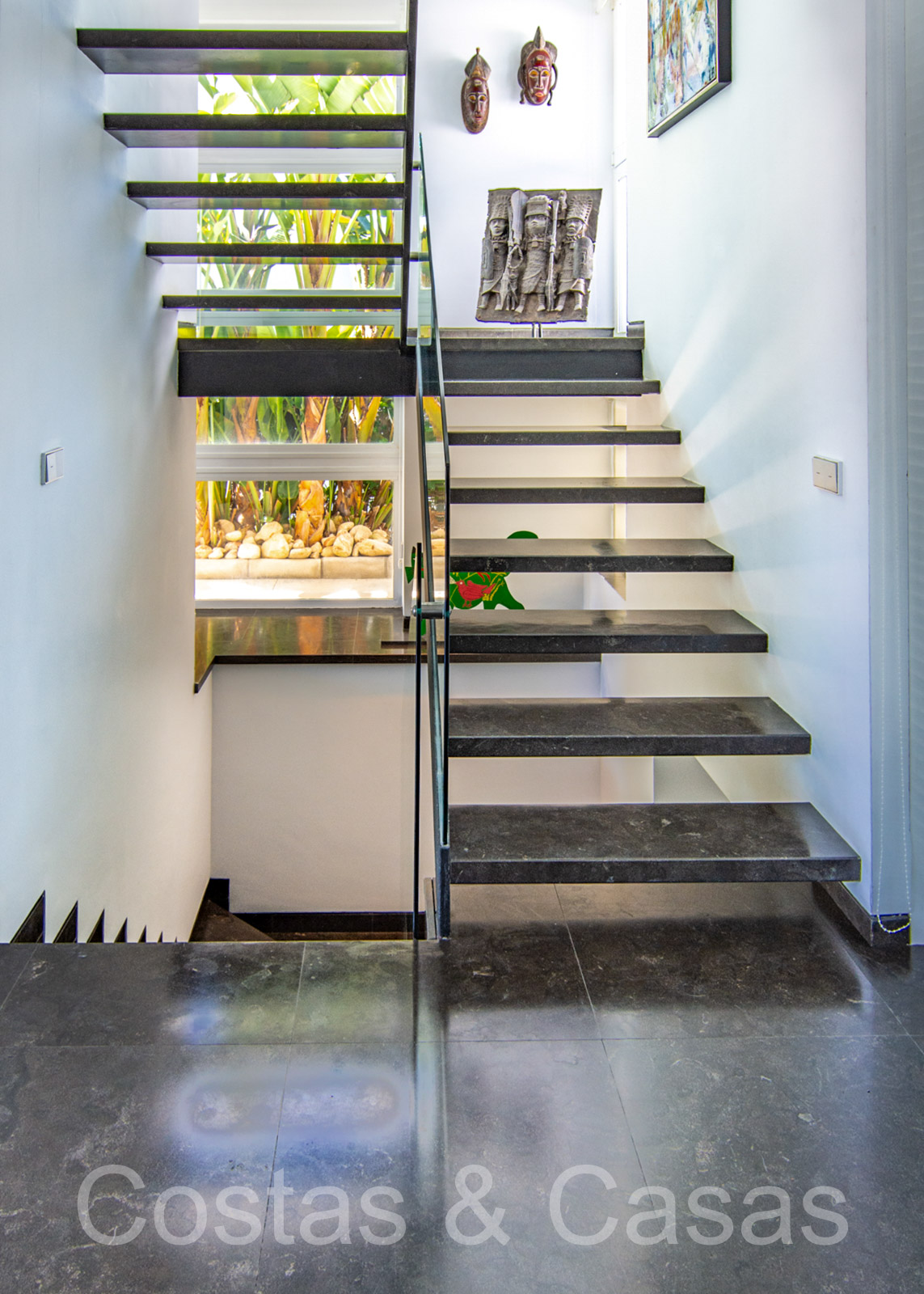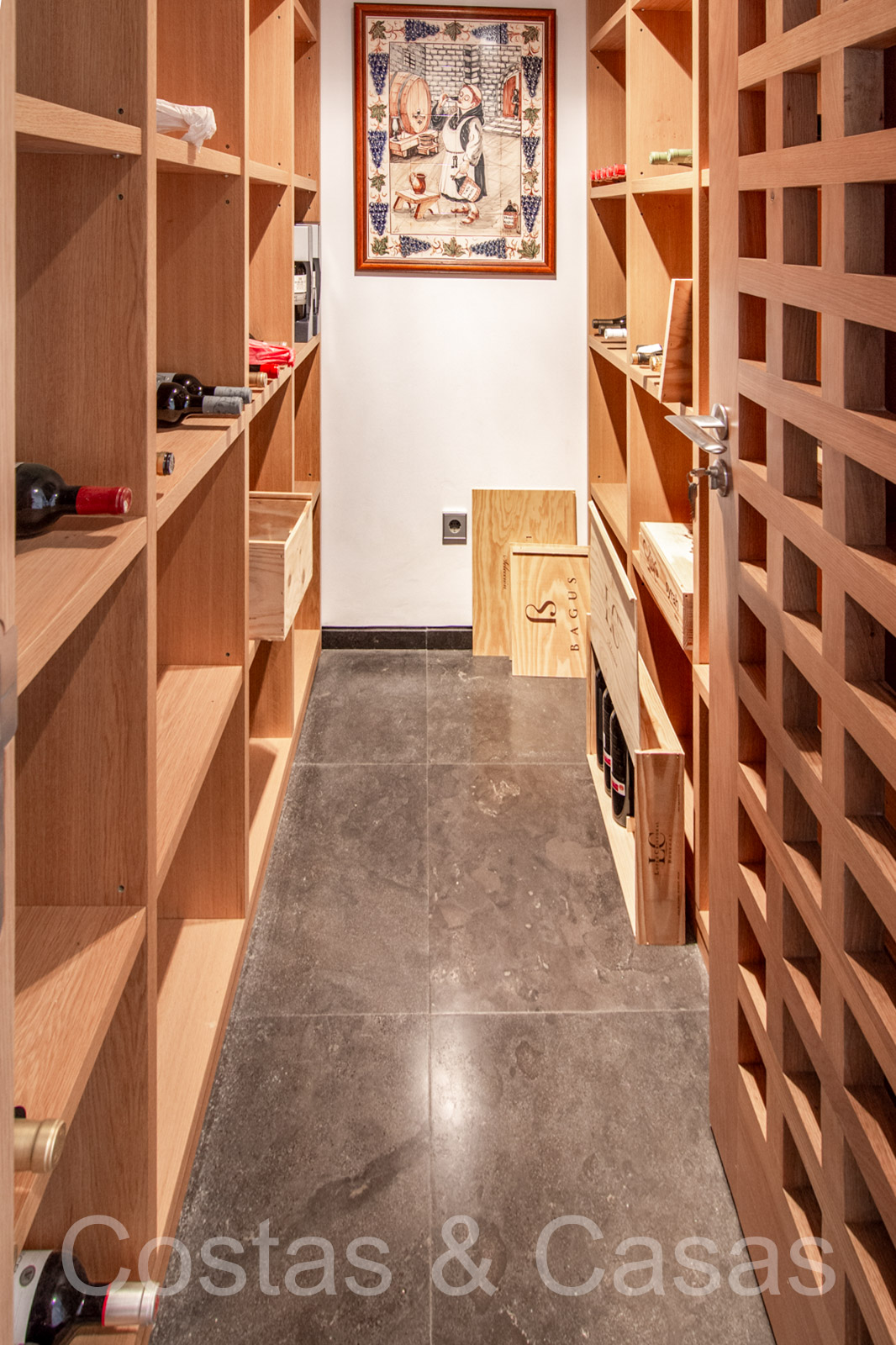 La villa es el resultado de la fusión de 2 propiedades y da lugar a amplias zonas habitables. Completamente reformada con materiales de alta calidad. Amplia sala de estar de planta abierta con salón y comedor integrado. Amplia y práctica cocina Bulthaup con isla de cocina donde sentarse. 4 dormitorios, 4 baños. La suite principal tiene su propio baño y armario. Despacho funcional. La planta inferior alberga un dormitorio de invitados con baño privado, sauna y bodega. Cuarto de lavado. Suelos de piedra natural de alta calidad. Garaje doble.