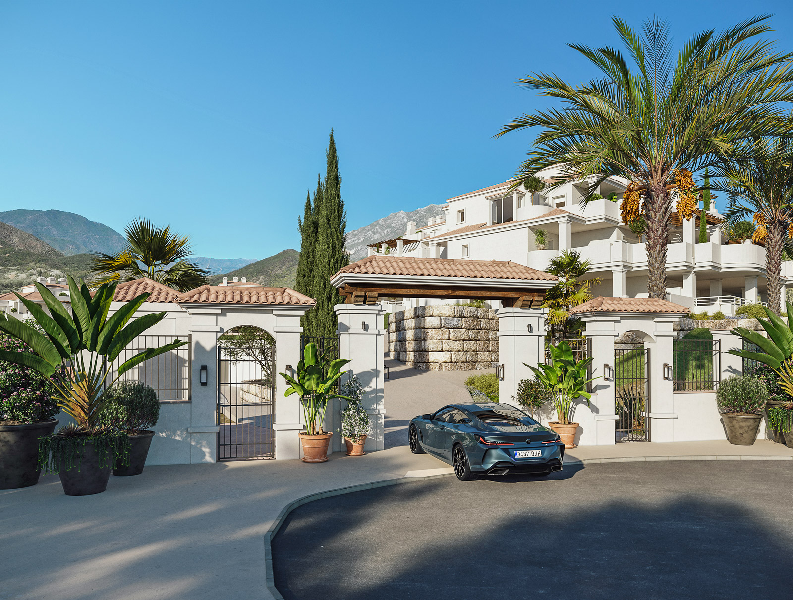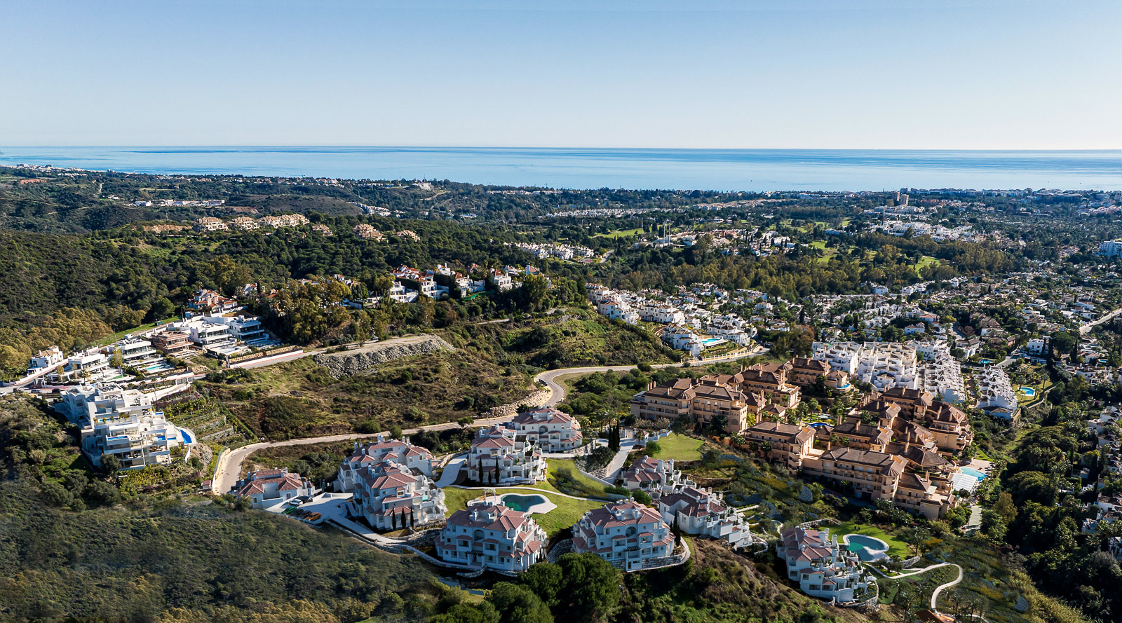 Una urbanización privada con seguridad 24 horas situada en una zona verde preferente de Nueva Andalucía. Rodeada de algunos de los mejores campos de golf del valle, como Los Naranjos, Las Brisas y Aloha Golf. A 10 minutos en coche, por el valle del golf con sus numerosos servicios, de la playa y Puerto Banús. La urbanización también ofrece jardines tropicales, dos piscinas y un gimnasio equipado.