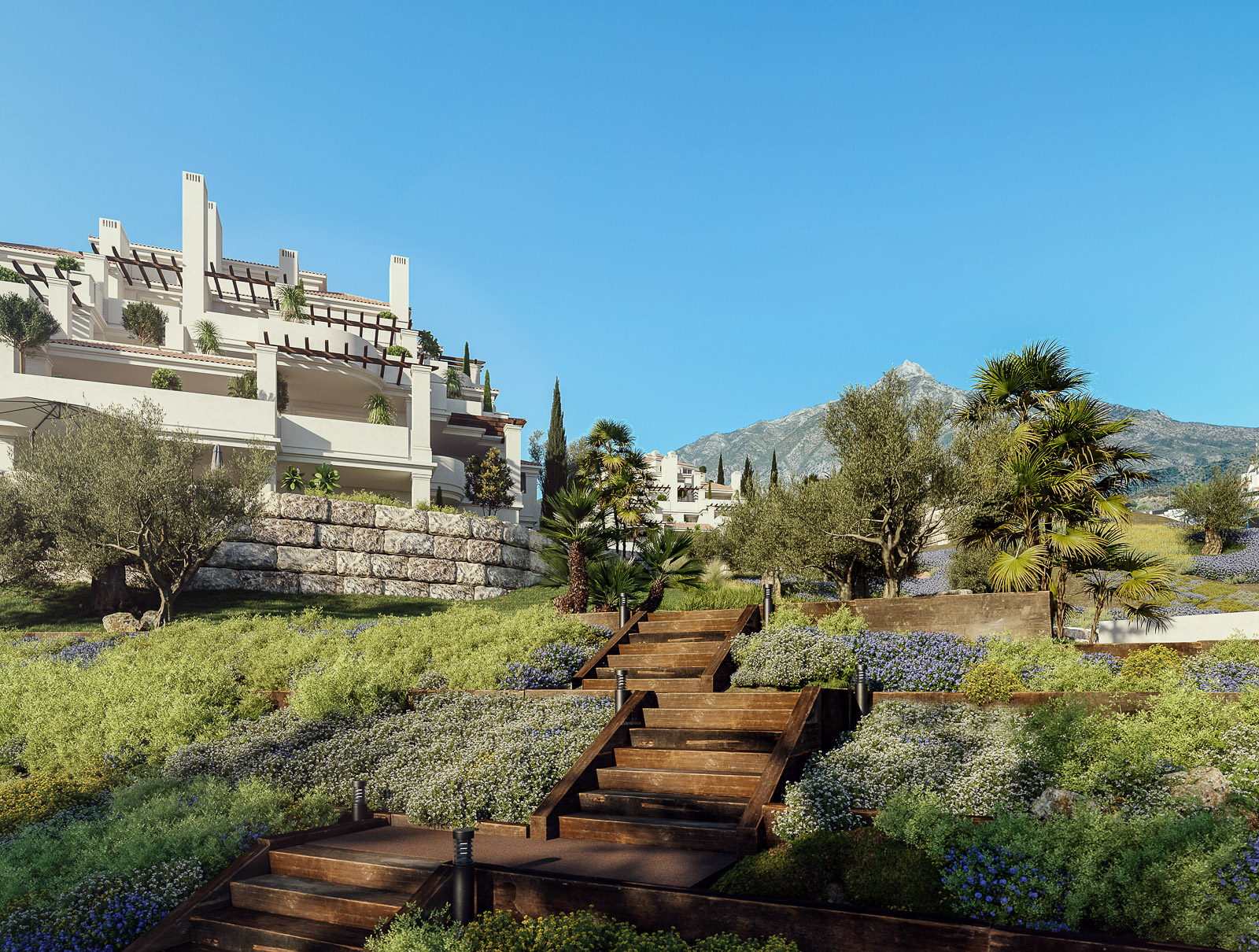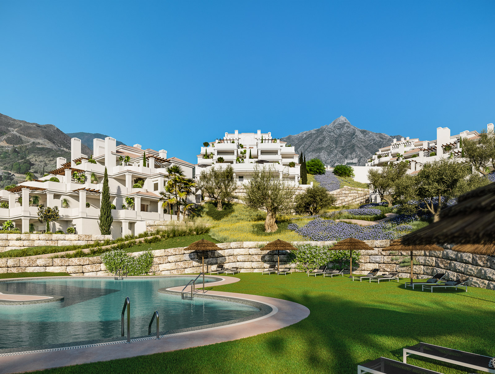 La urbanización consta de 10 bloques con 75 luminosos apartamentos de 2 y 3 dormitorios. Los áticos dúplex disponen de solárium. Apartamentos existentes totalmente reformados con materiales de primera calidad y excelentes acabados. Diseño moderno con distribución abierta. Terrazas cubiertas y descubiertas con espacio para instalar salones. Orientación sureste y suroeste. Todas las unidades disponen de amplias terrazas donde disfrutar de impresionantes vistas panorámicas hacia el mar Mediterráneo. Salón abierto con altas ventanas correderas que dan a la terraza. Comedor integrado. Cocinas de calidad totalmente equipadas. Aparcamiento cubierto + trastero incluidos.