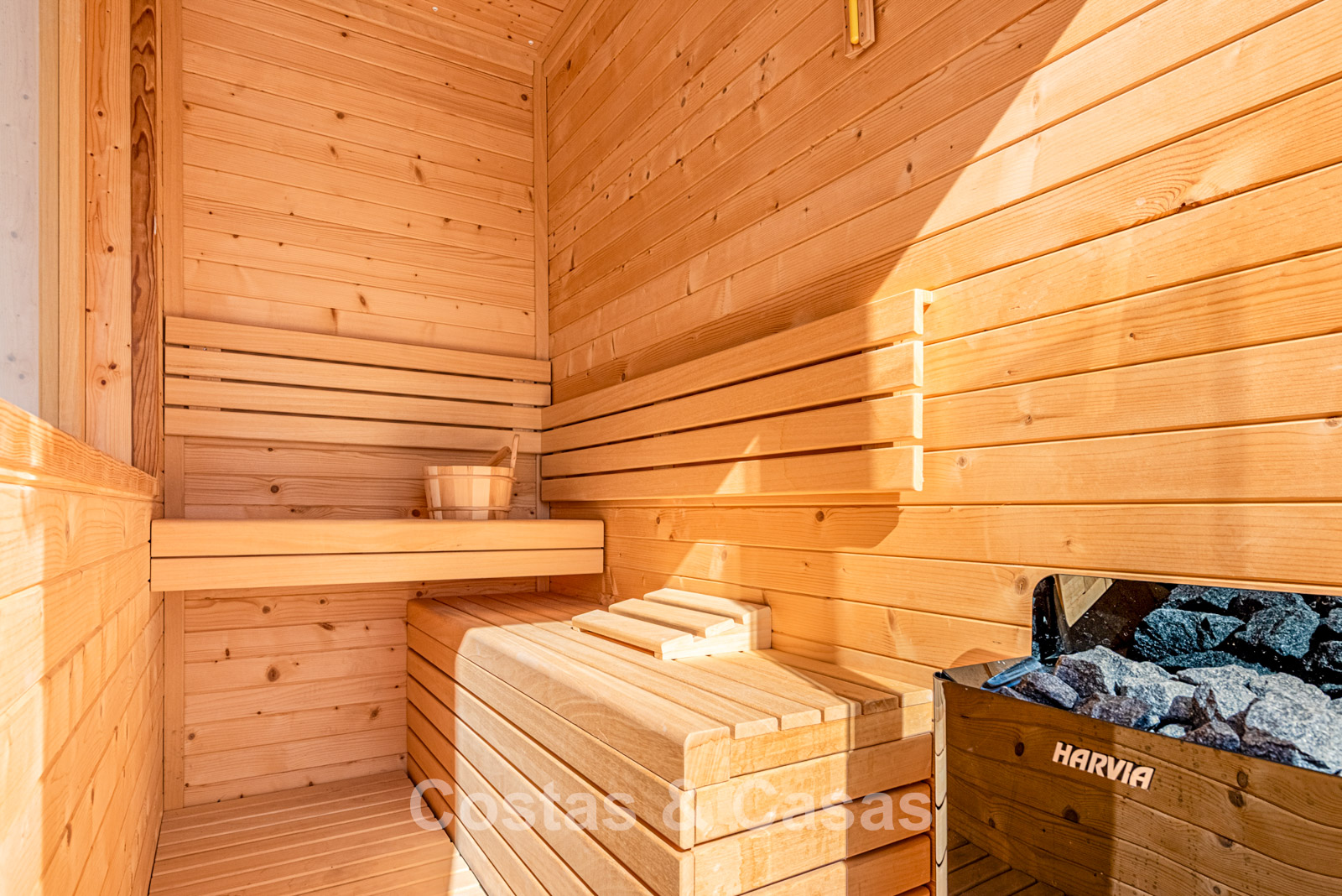 Azotea con cocina exterior, jacuzzi y sauna