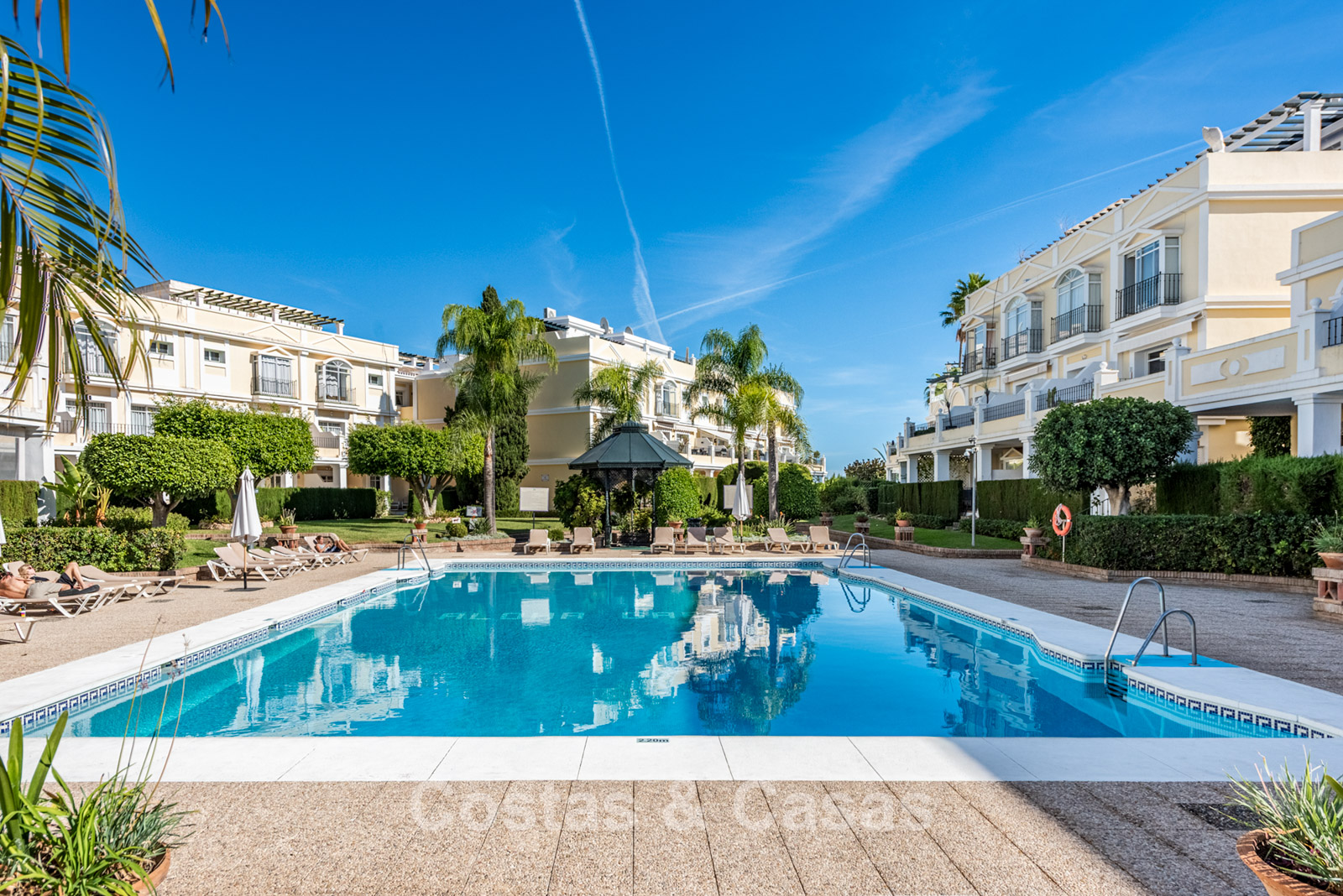 Idealmente situada en una de las urbanizaciones más solicitadas de Nueva Andalucía. Con restaurantes, cafés y pistas de pádel y tenis a poca distancia, y campos de golf de primer nivel como Los Naranjos, Aloha y Las Brisas a solo unos minutos en coche. Un centro comercial y Puerto Banús se encuentran a pocos minutos en coche o incluso a pie. Los residentes del complejo pueden disfrutar de tres piscinas y un gimnasio.