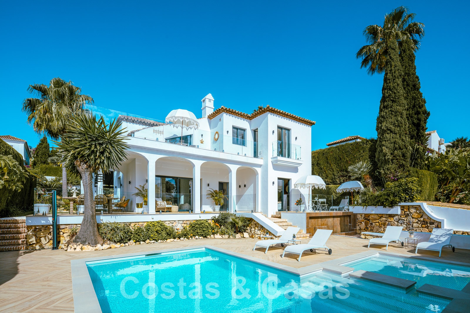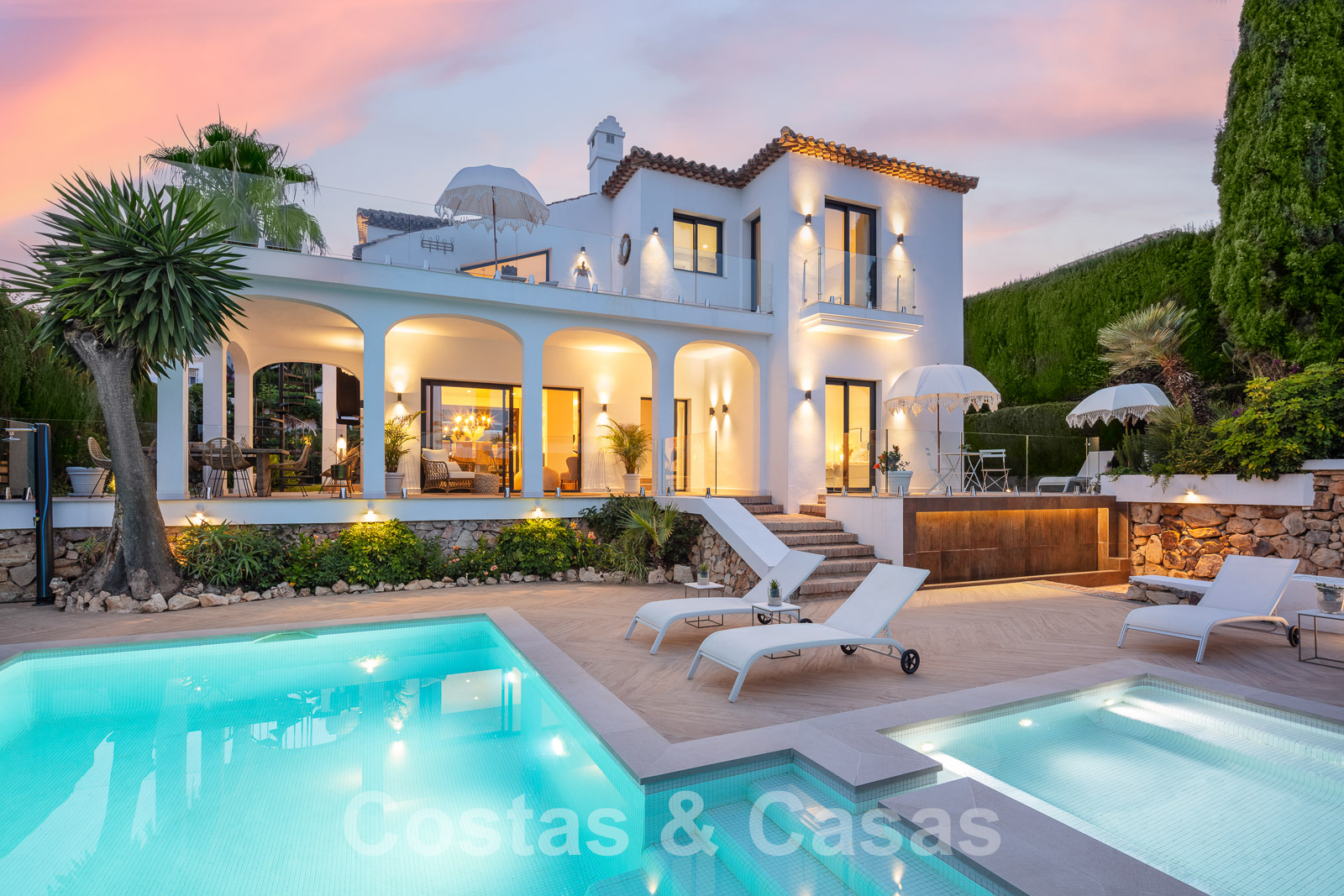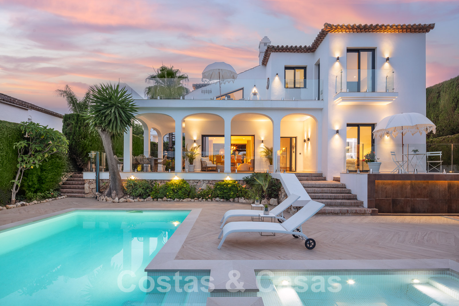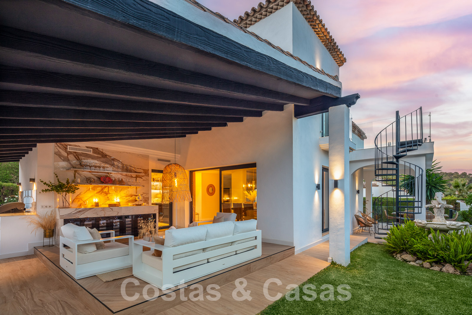 Villa mediterránea de lujo en venta en una urbanización cerrada en el valle del golf de Nueva Andalucía, Marbella