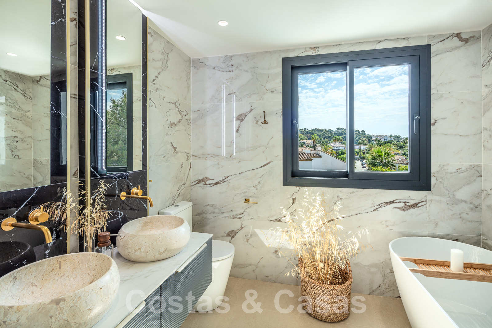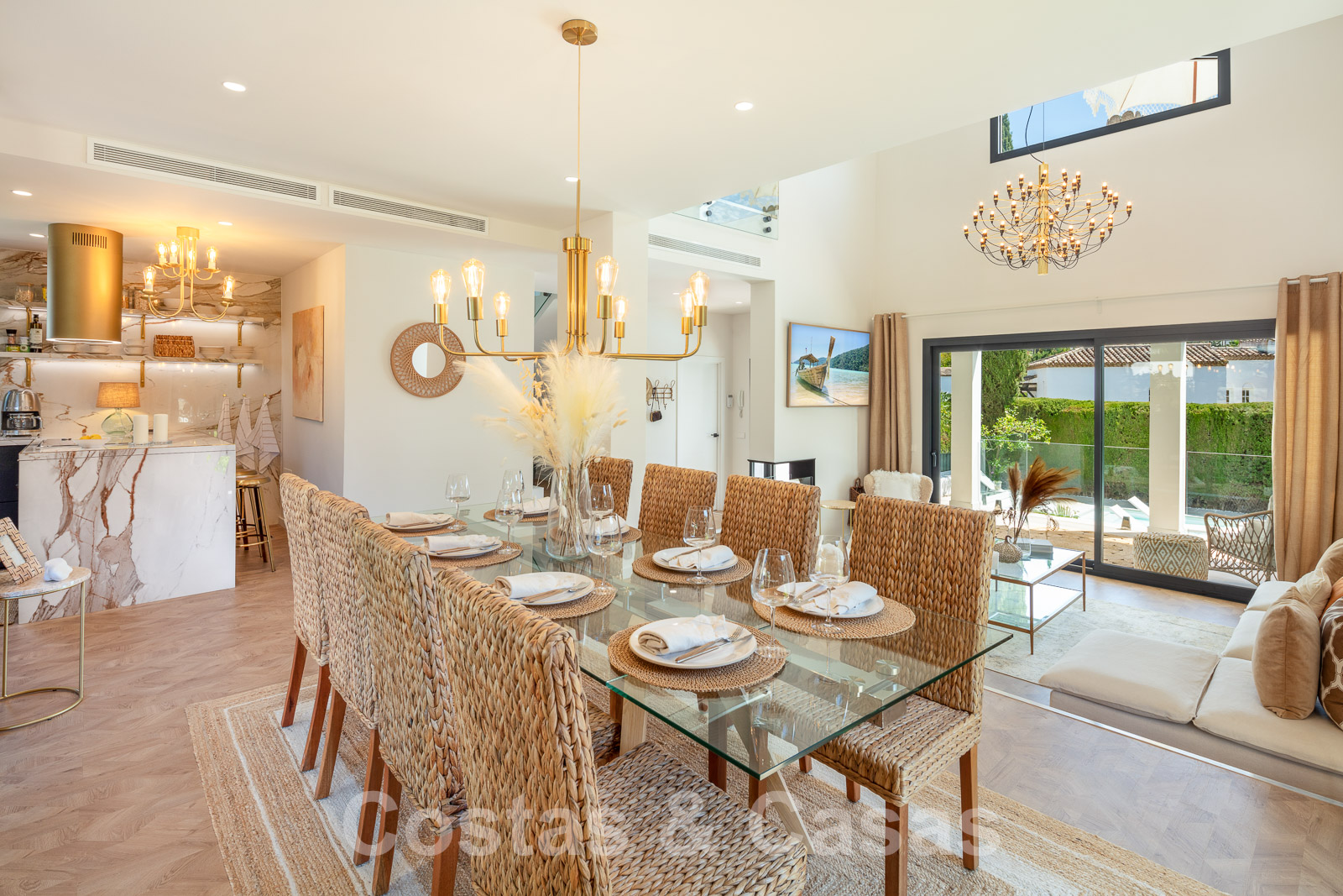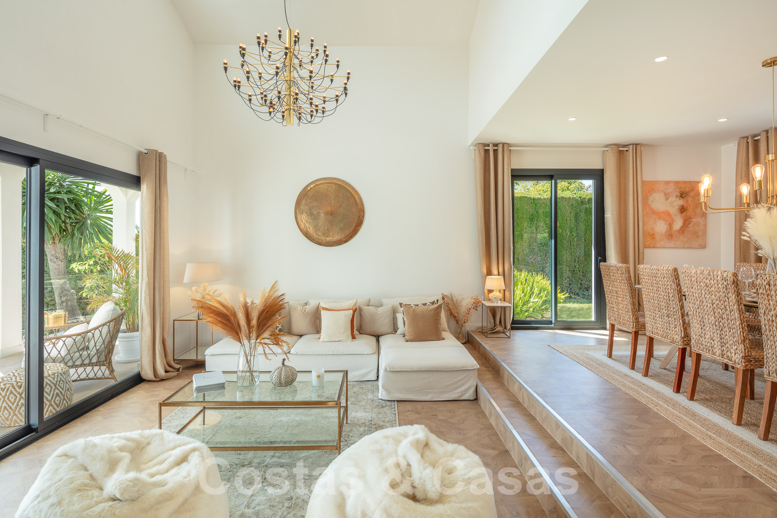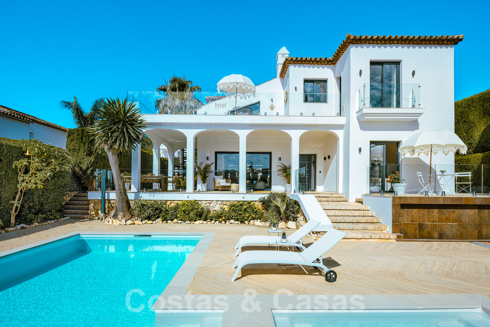 Villa mediterránea de lujo en venta en una urbanización cerrada en el valle del golf de Nueva Andalucía, Marbella