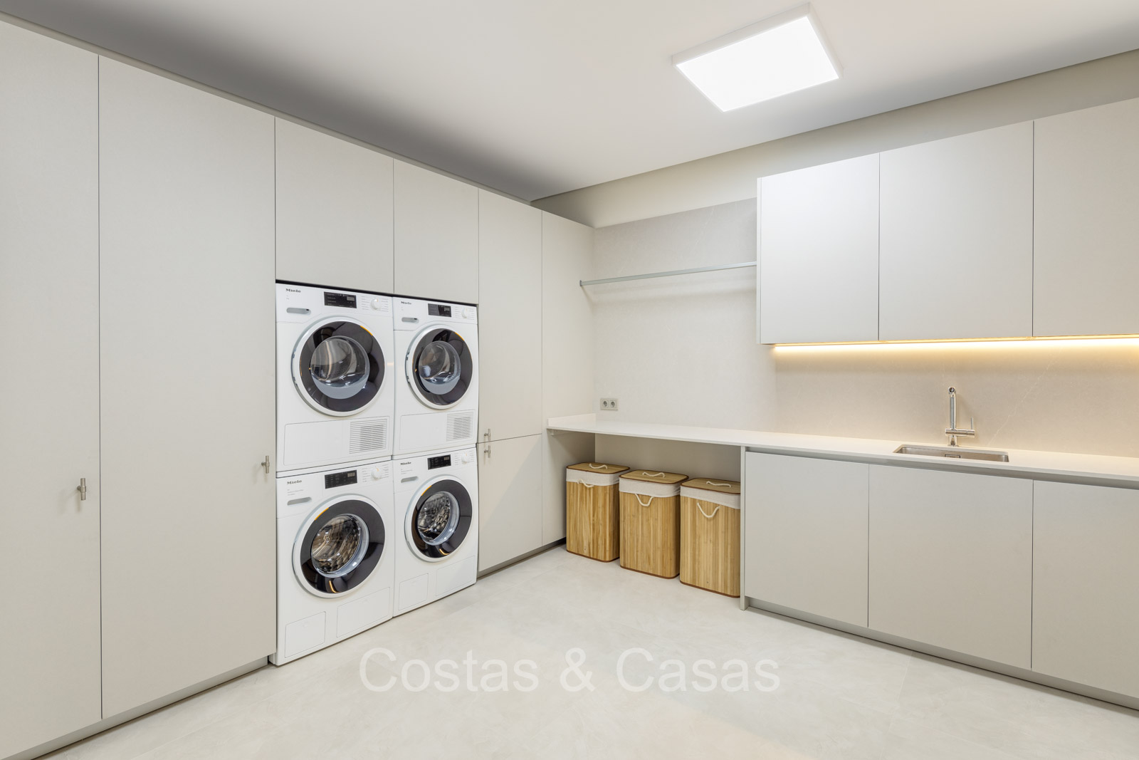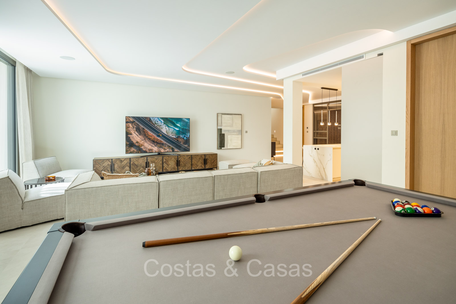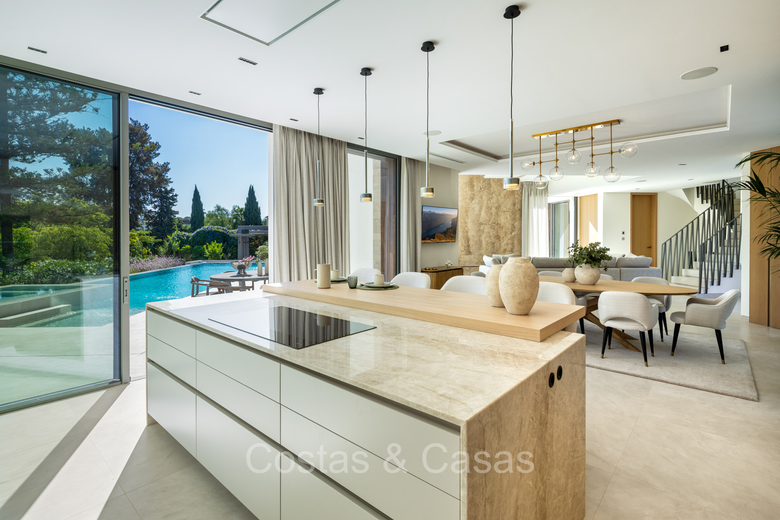 Villa independiente de diseño modernista. Construida recientemente con altas especificaciones y con las últimas tecnologías. Las ventanas correderas de suelo a techo con perfiles empotrados garantizan una transición perfecta entre el interior y el exterior. Espacio habitable luminoso y abierto con diseño abierto. Salón de planta abierta. Cocina personalizada, totalmente equipada con electrodomésticos Miele e isla de cocina con barra desayunadora. Integrado ??espacio para comedor. 5 dormitorios, 6 baños y aseo independiente. Cine en casa. Gimnasio totalmente equipado con baño de vapor y sauna. Zona de ocio con bar, chill-out y zona de juegos. Suelos de piedra natural. Cuarto de lavado/trastero. Áreas técnicas. Cochera para 2 autos.