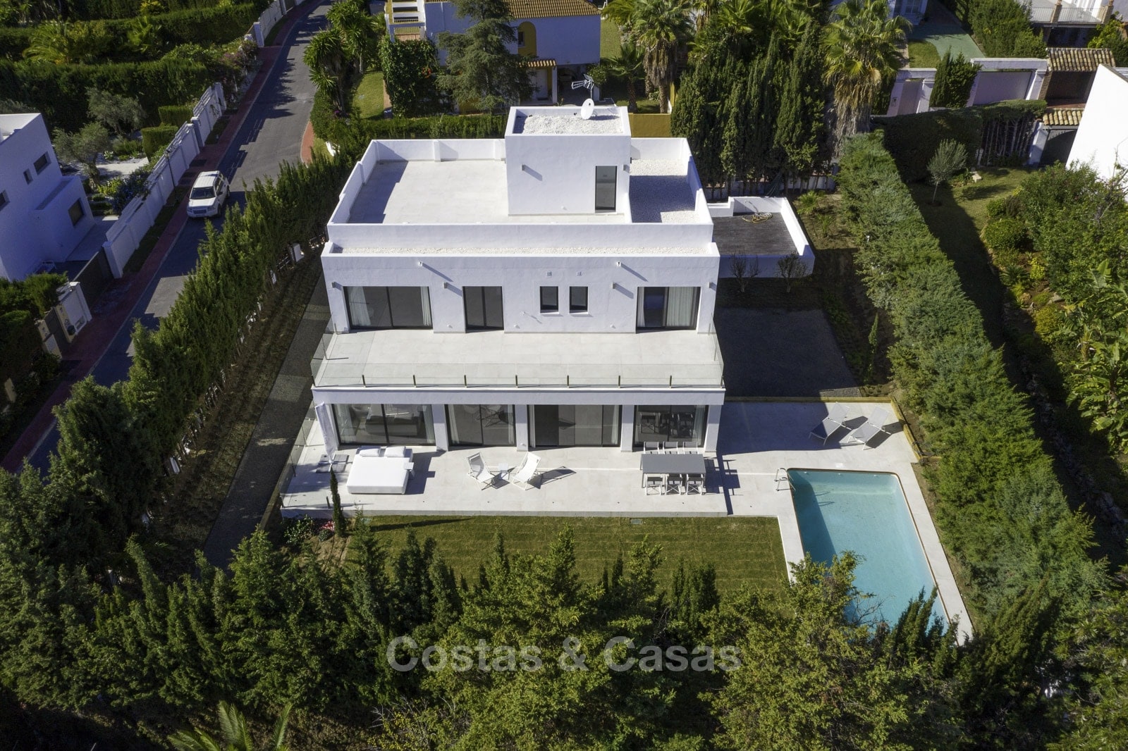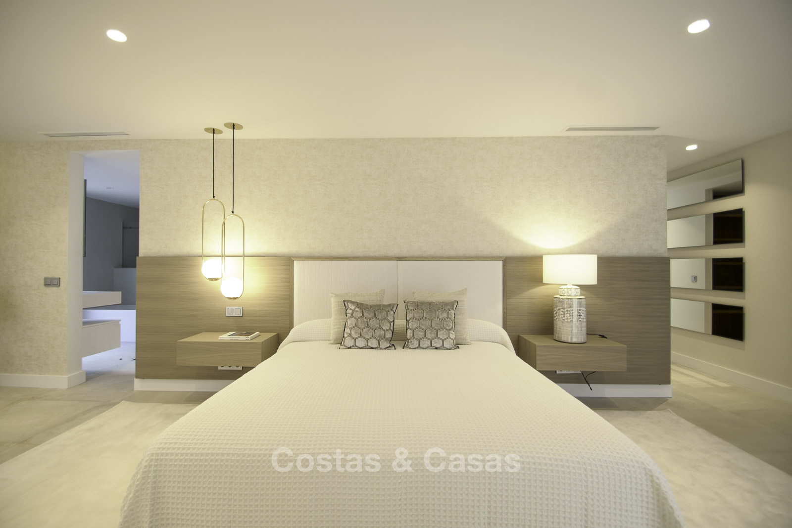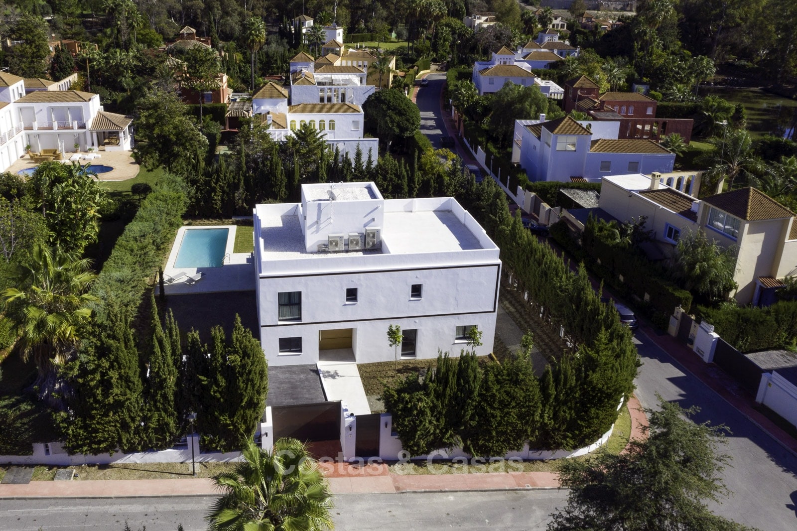 Soleada y luminosa villa de estilo contemporáneo Construcción 2019, totalmente amueblada, lista para entrar a vivir Cocina americana totalmente equipada con isla Aire acondicionado frío/calor Armarios empotrados Piscina Espacio de aparcamiento