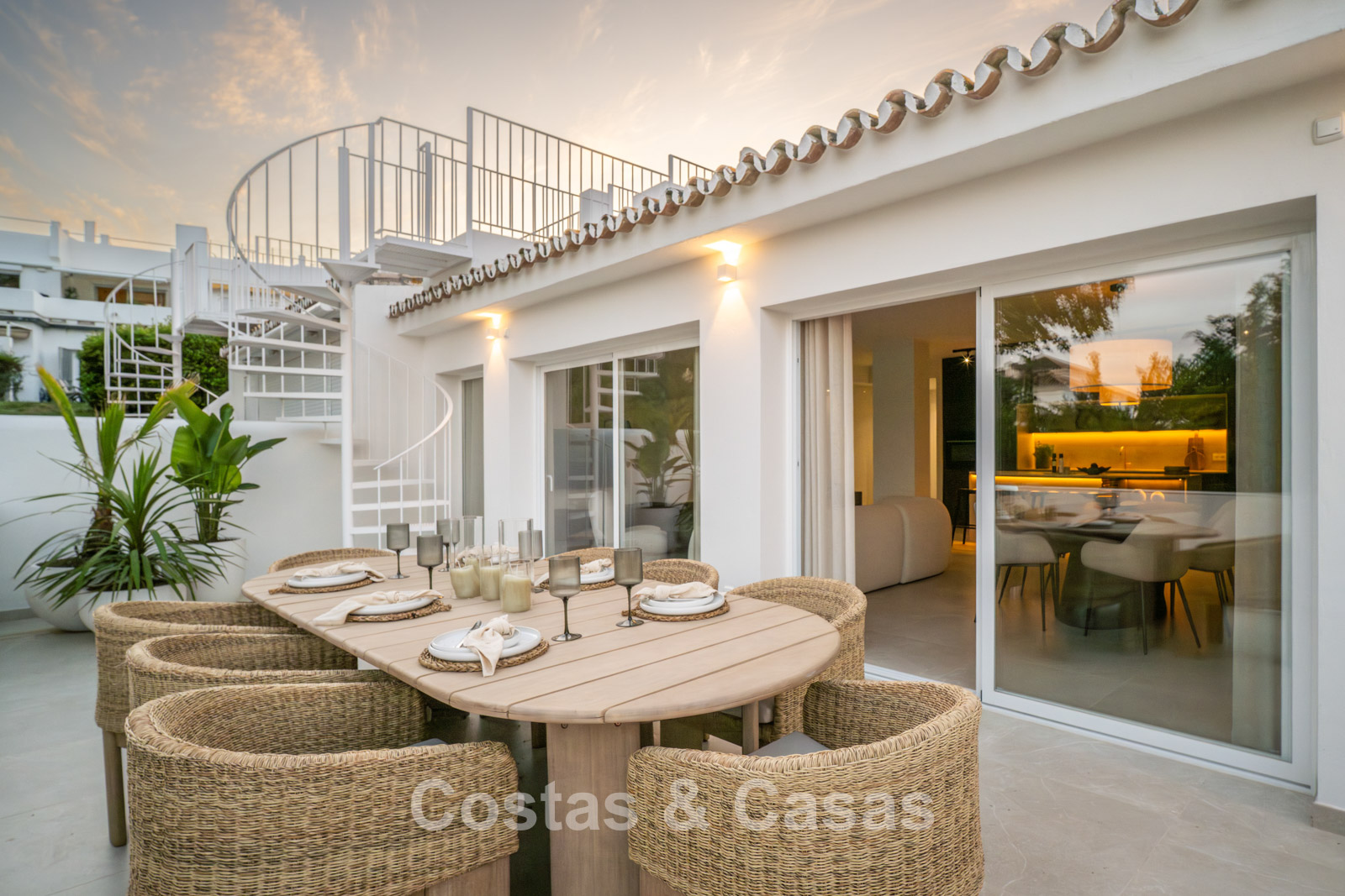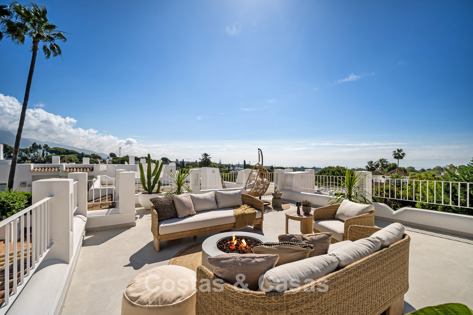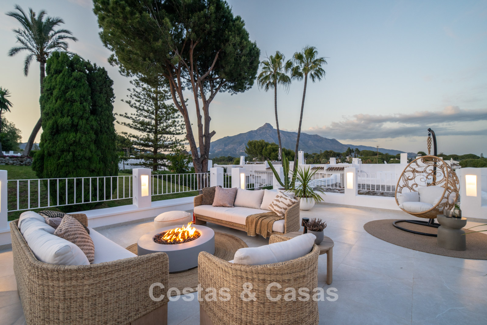 Casa adosada con un encanto mediterráneo y atemporal. Renovada con materiales y acabados de primera calidad. Situada al sur. Una escalera de caracol te lleva desde la terraza principal al espacioso solárium donde podrás disfrutar de más espacio para la relajación. Disfrutarás de una magnífica vista de los verdes fairways y de la montaña de La Concha. La distribución abierta y las grandes ventanas correderas crean un interior dinámico en el que se aprovecha al máximo la luz natural. La sala de estar se divide en una acogedora zona de estar y un comedor integrado. La moderna cocina abierta irradia elegante sencillez y comodidad orientada al diseño con una isla de cocción donde podrá desayunar. Comedor integrado. 4 dormitorios, 3 baños y un aseo de invitados independiente. Los dormitorios de la planta baja ofrecen acceso directo a una terraza privada que se integra perfectamente con una zona ajardinada. Suelos de baldosas de gran formato en color crema. Aparcamiento para 1 coche.