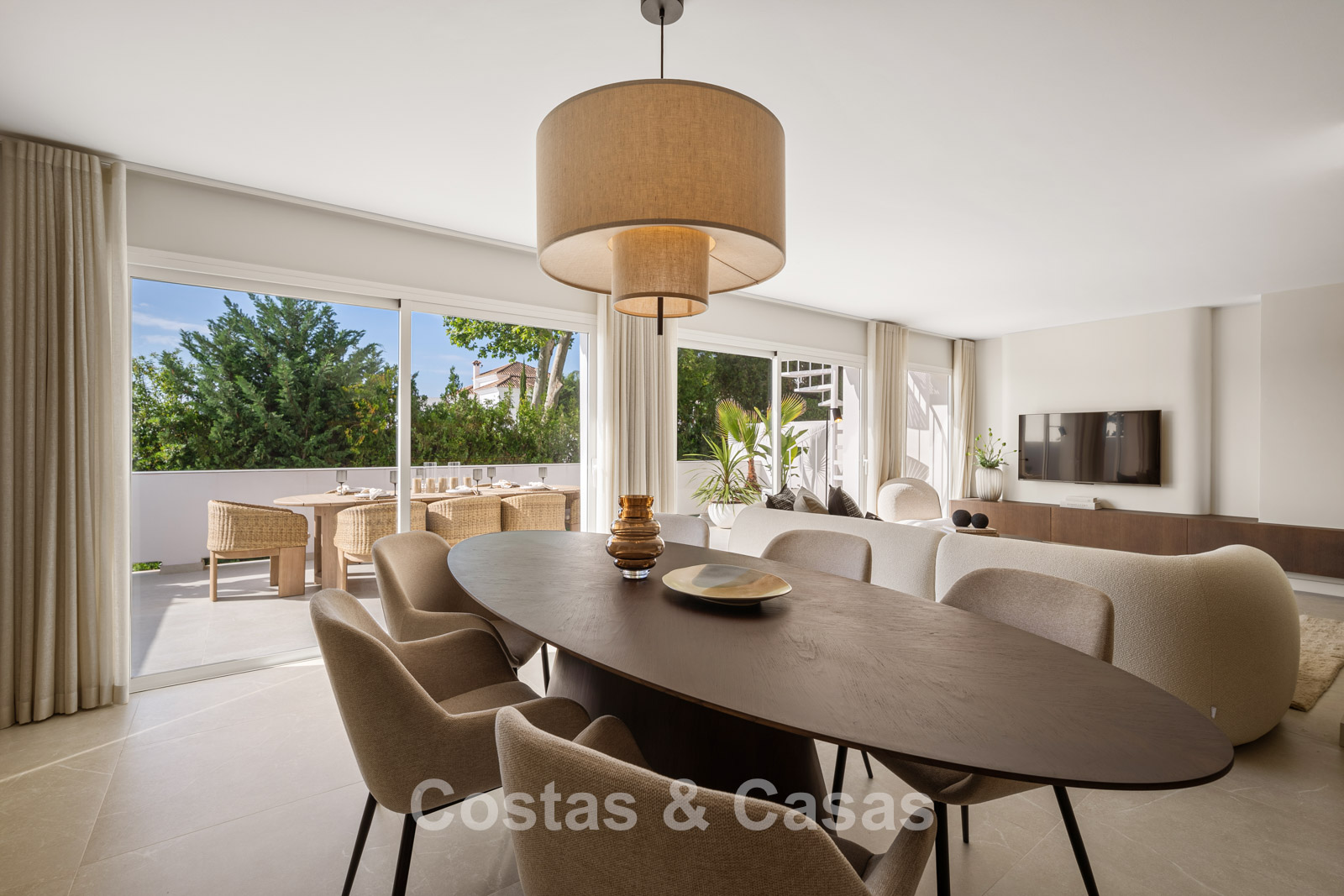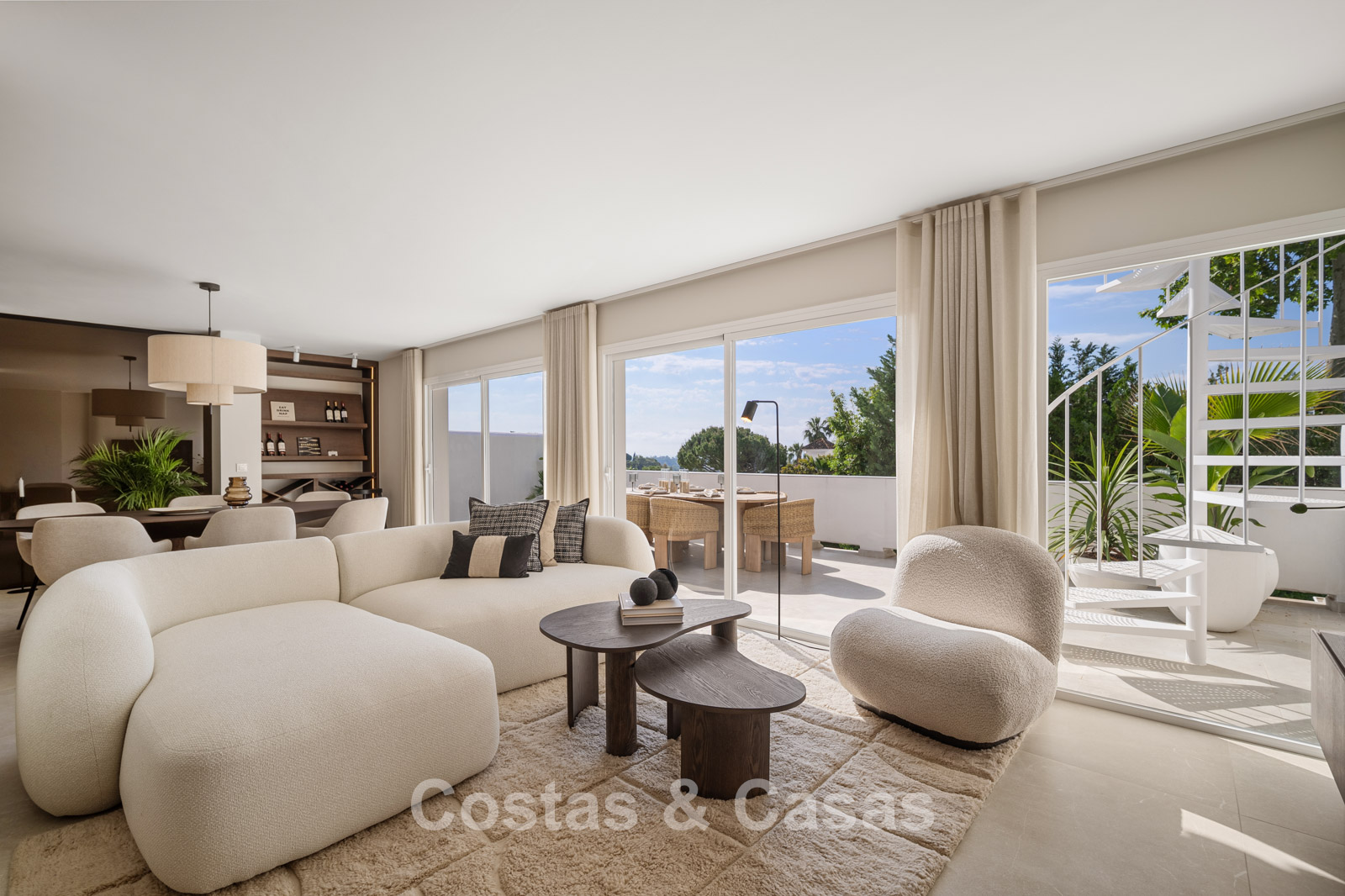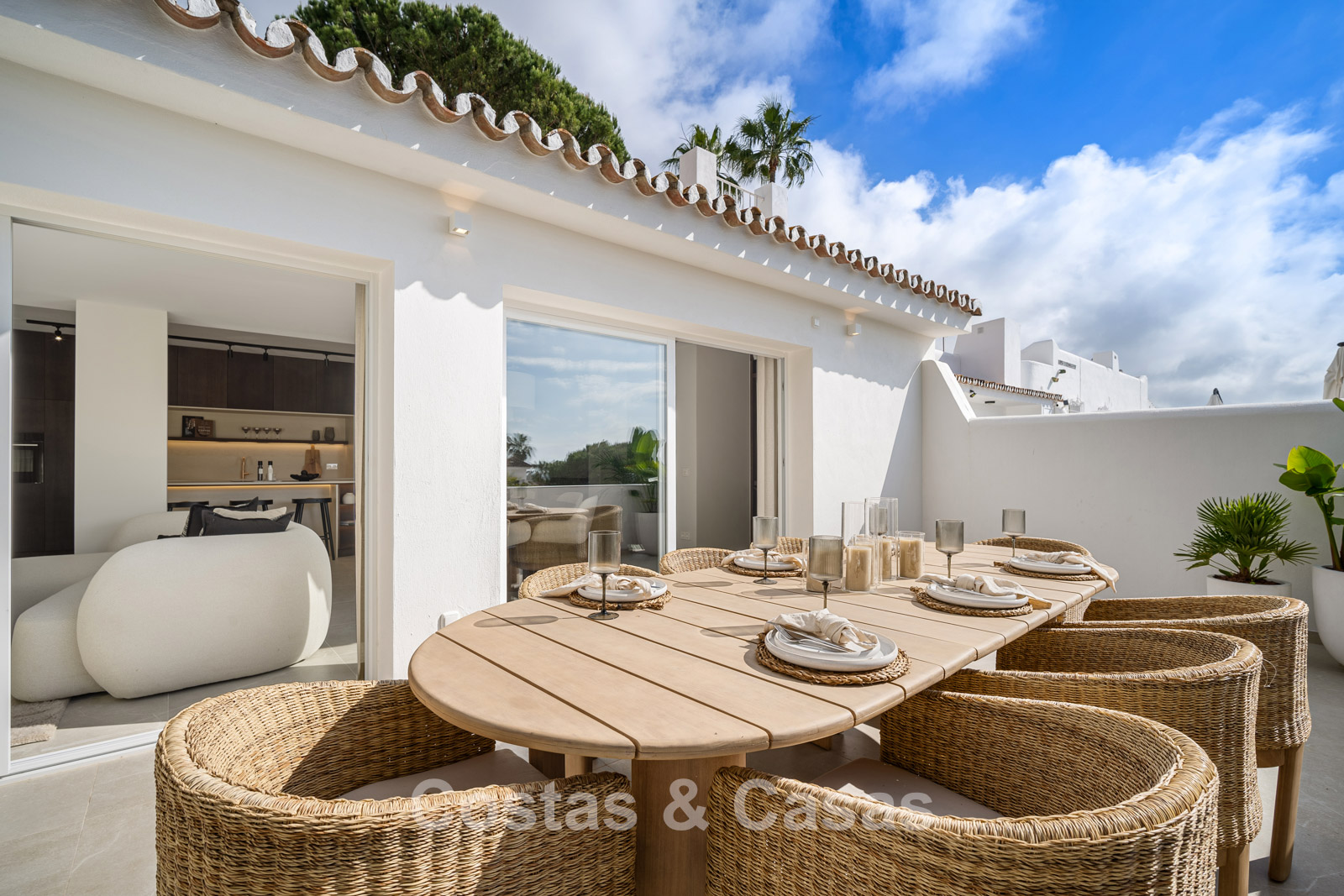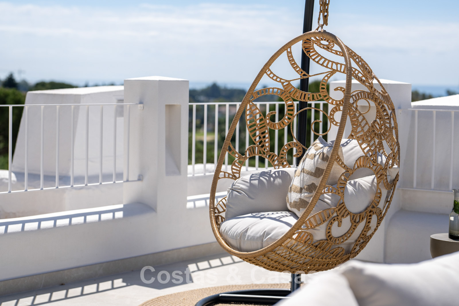 Casa adosada con un encanto mediterráneo y atemporal. Renovada con materiales y acabados de primera calidad. Situada al sur. Una escalera de caracol te lleva desde la terraza principal al espacioso solárium donde podrás disfrutar de más espacio para la relajación. Disfrutarás de una magnífica vista de los verdes fairways y de la montaña de La Concha. La distribución abierta y las grandes ventanas correderas crean un interior dinámico en el que se aprovecha al máximo la luz natural. La sala de estar se divide en una acogedora zona de estar y un comedor integrado. La moderna cocina abierta irradia elegante sencillez y comodidad orientada al diseño con una isla de cocción donde podrá desayunar. Comedor integrado. 4 dormitorios, 3 baños y un aseo de invitados independiente. Los dormitorios de la planta baja ofrecen acceso directo a una terraza privada que se integra perfectamente con una zona ajardinada. Suelos de baldosas de gran formato en color crema. Aparcamiento para 1 coche.