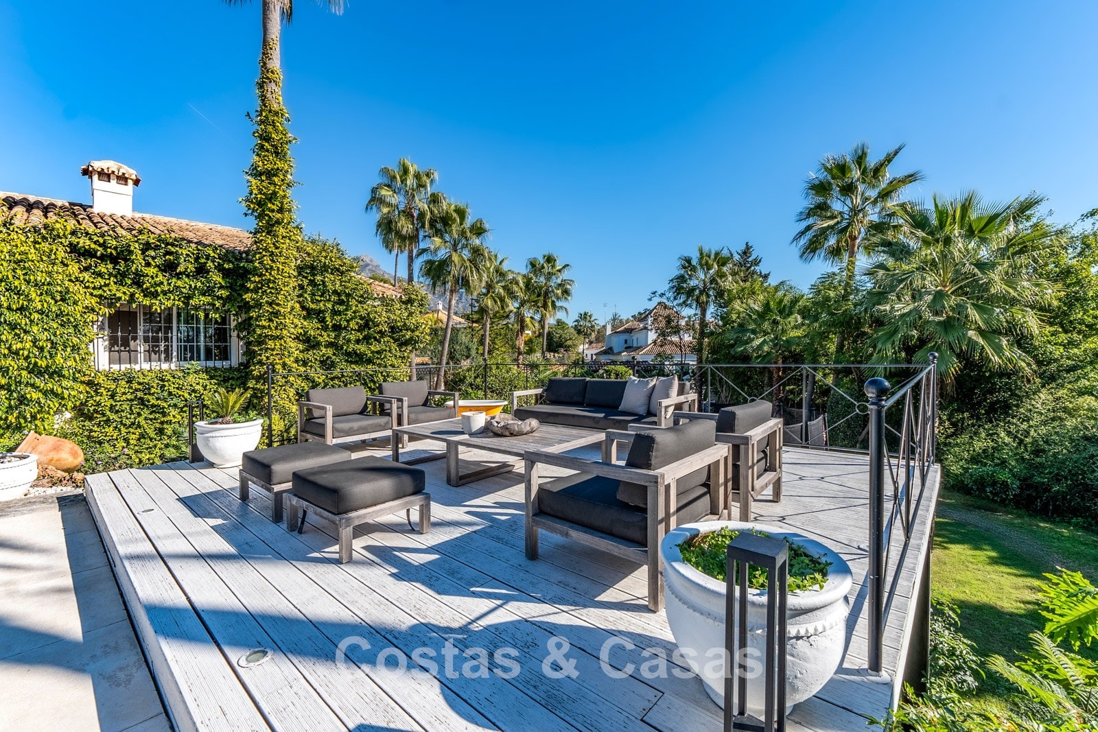 Situada en una amplia y llana parcela que linda con el campo de golf. Jardín paisajístico bien cuidado con abundante vegetación exuberante. Piscina privada rodeada de instalaciones de relax. Las terrazas abiertas y sombreadas ofrecen la oportunidad de disfrutar del agradable clima mediterráneo. Vistas a la montaña de La Concha y a los exuberantes campos de golf circundantes.