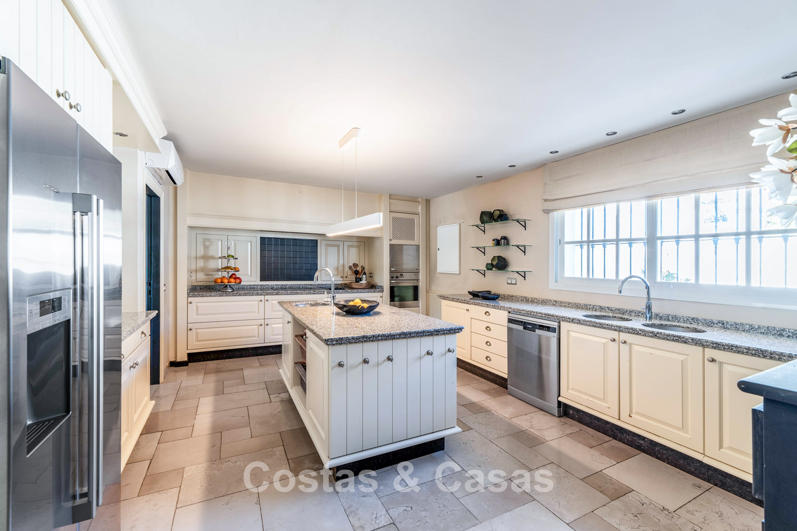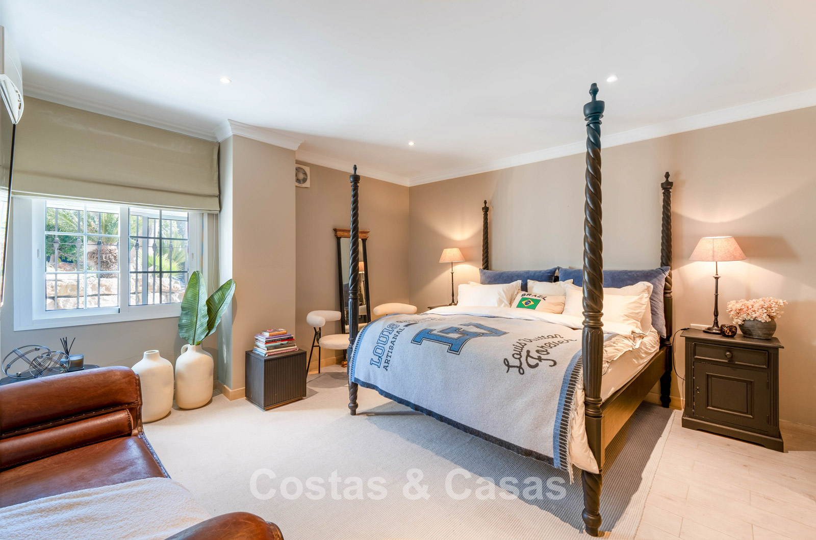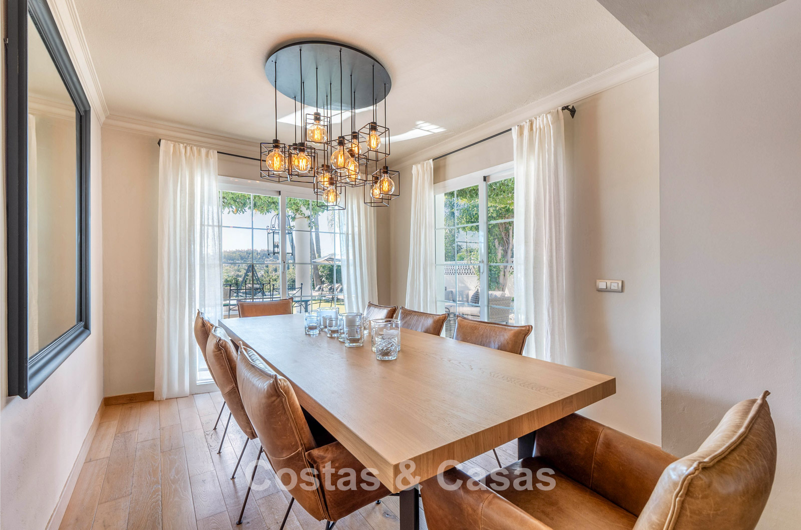 Esta villa combina el encanto tradicional con el refinamiento contemporáneo. Las ventanas corredizas altas con marcos empotrados brindan una transición perfecta entre los espacios interiores y exteriores y también generan mucha luz natural. Un espacio habitable abierto, inundado de luz natural. Al lado hay un comedor. Amplia cocina, totalmente equipada con electrodomésticos de primera calidad, mucho espacio de almacenaje y una isla central. 6 espaciosas habitaciones y 6 baños elegantemente amueblados. El dormitorio principal cuenta con un baño en suite tipo spa y una terraza privada con vistas panorámicas. Espacio de oficina. Suelos de baldosas de piedra natural. La planta inferior dispone de una zona de ocio con sala de TV y zona chill-out. Lavadero y cuarto de servicio totalmente equipados. Garaje interior para 3 coches.