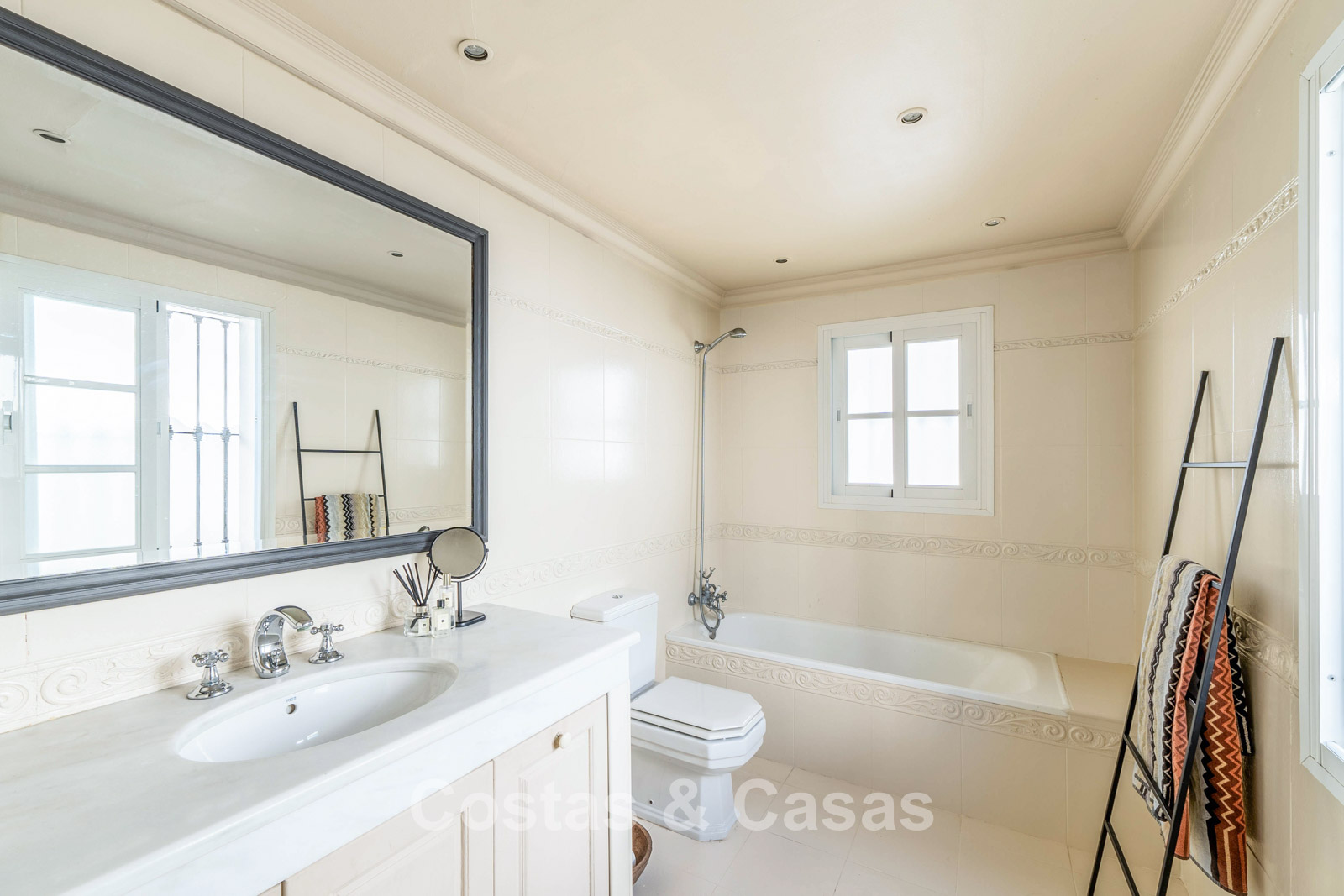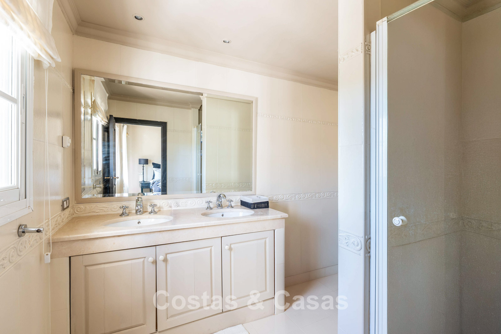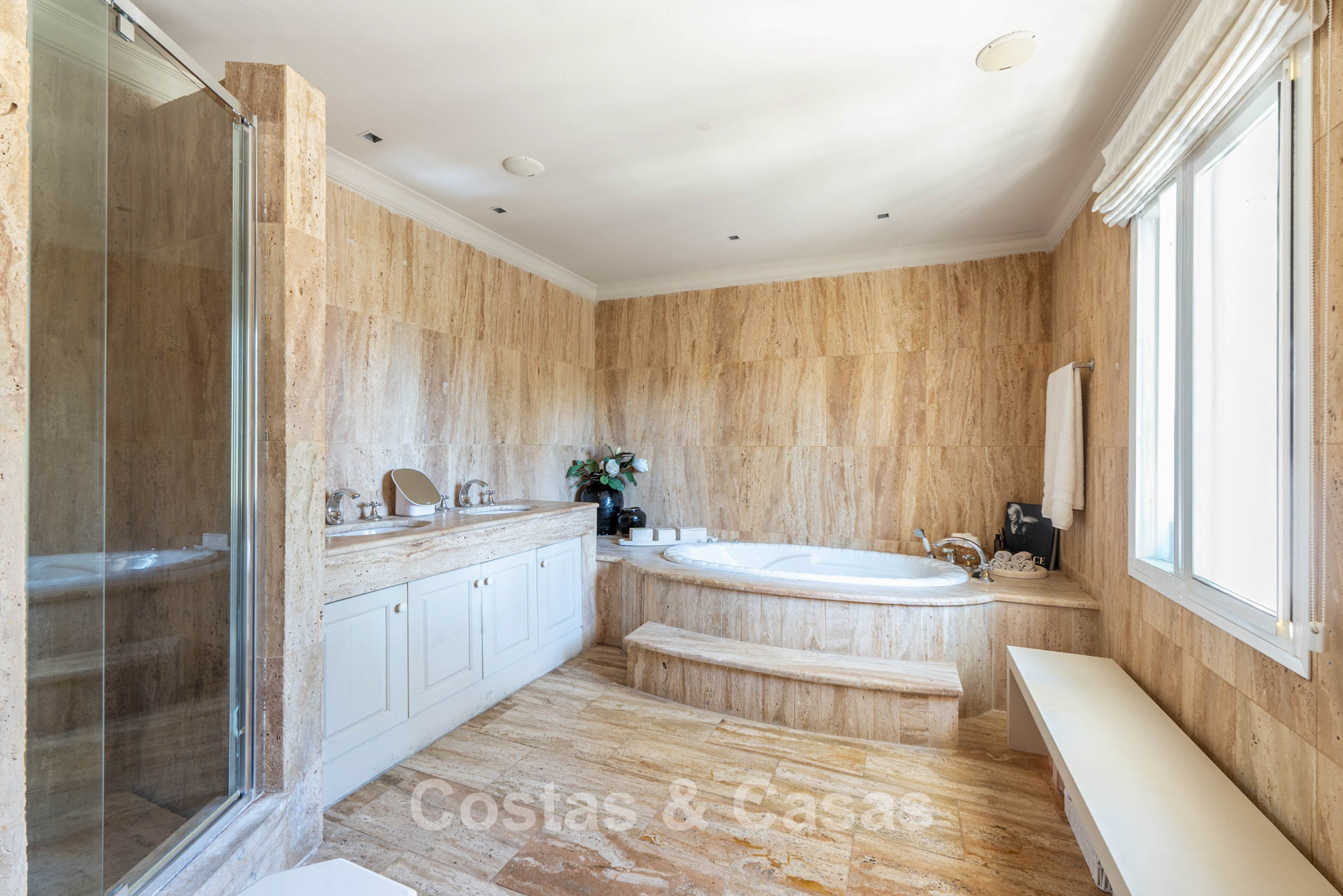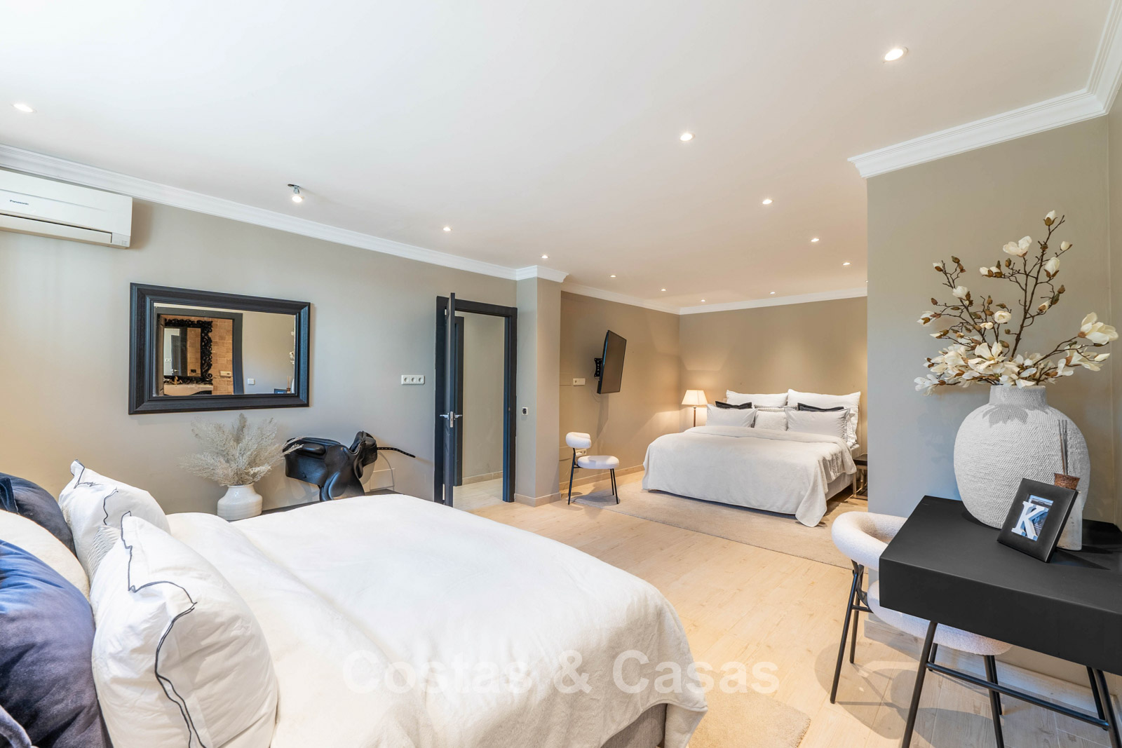 Esta villa combina el encanto tradicional con el refinamiento contemporáneo. Las ventanas corredizas altas con marcos empotrados brindan una transición perfecta entre los espacios interiores y exteriores y también generan mucha luz natural. Un espacio habitable abierto, inundado de luz natural. Al lado hay un comedor. Amplia cocina, totalmente equipada con electrodomésticos de primera calidad, mucho espacio de almacenaje y una isla central. 6 espaciosas habitaciones y 6 baños elegantemente amueblados. El dormitorio principal cuenta con un baño en suite tipo spa y una terraza privada con vistas panorámicas. Espacio de oficina. Suelos de baldosas de piedra natural. La planta inferior dispone de una zona de ocio con sala de TV y zona chill-out. Lavadero y cuarto de servicio totalmente equipados. Garaje interior para 3 coches.