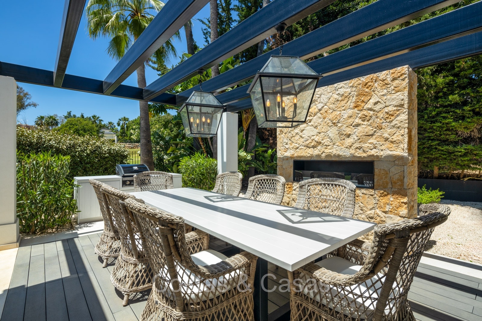Otras características: Aire acondicionado. Chimenea. Armarios empotrados. Terrazas cerradas por barandillas de cristal. Iluminación LED interior y exterior. Ducha exterior.