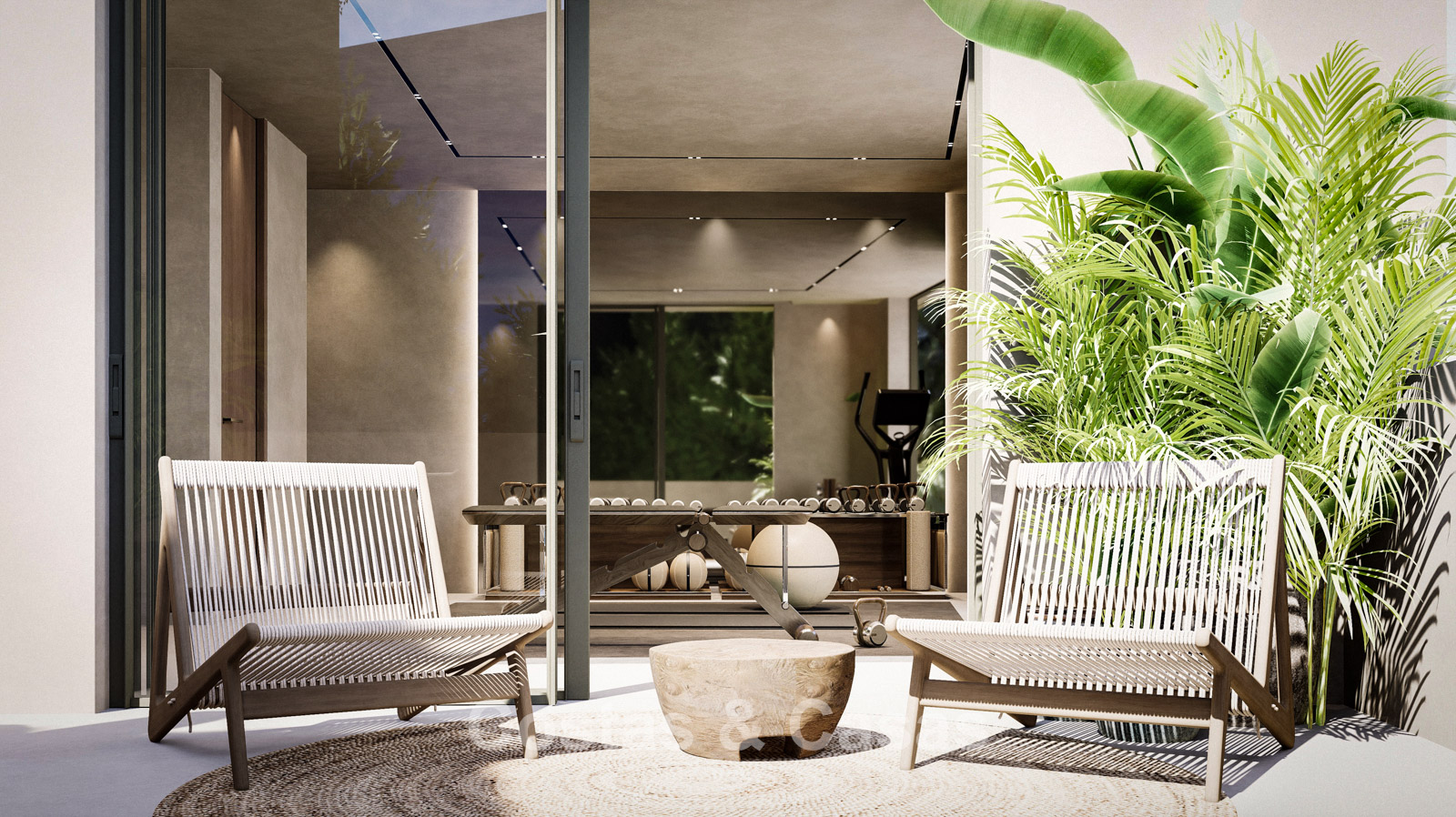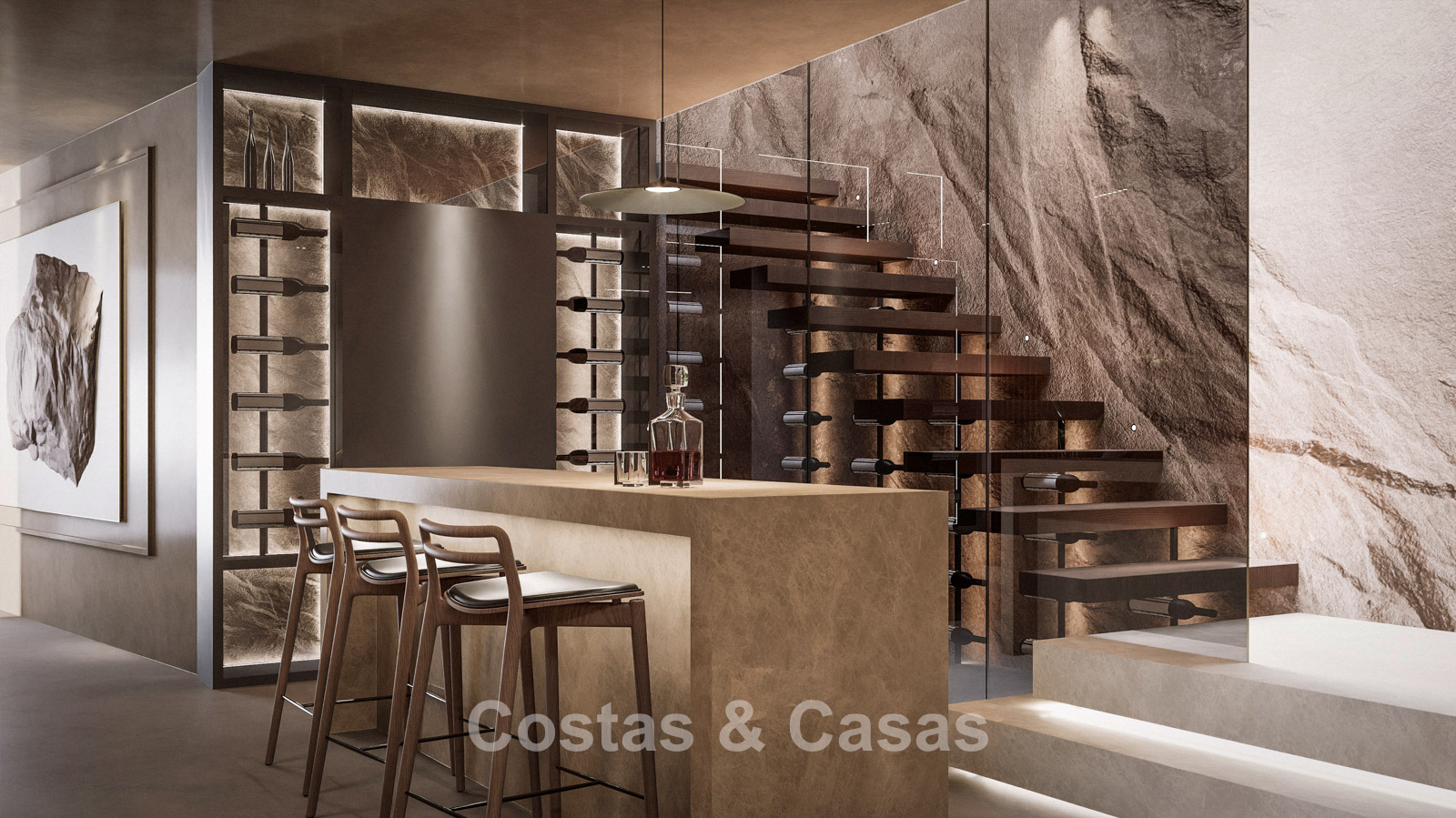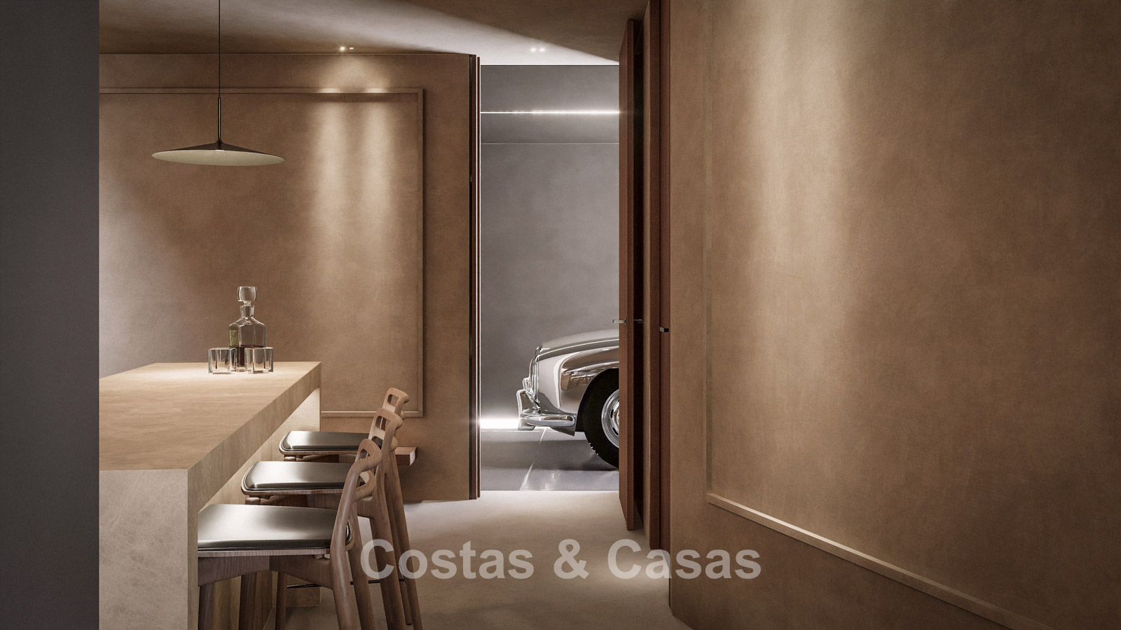 El diseño de la villa se caracteriza por un estilo minimalista moderno, donde las líneas limpias, las formas rectas y una distribución abierta y funcional son los protagonistas. Realizada con materiales sostenibles y acabados de alta calidad. Las ventanas correderas de suelo a techo crean una conexión fluida entre el interior y el exterior, permitiendo la entrada de abundante luz natural e integrando el exterior con naturalidad en el interior. Espacio dinámico con sala de estar y comedor. Cocina abierta de calidad, equipada con materiales de primera calidad y una distribución bien pensada. 7 dormitorios, cada uno con baño con un lujoso diseño de bienestar. Gimnasio equipado con baño contiguo. Trastero. Cuarto de máquinas. Amplias plazas de aparcamiento privado en la parcela.