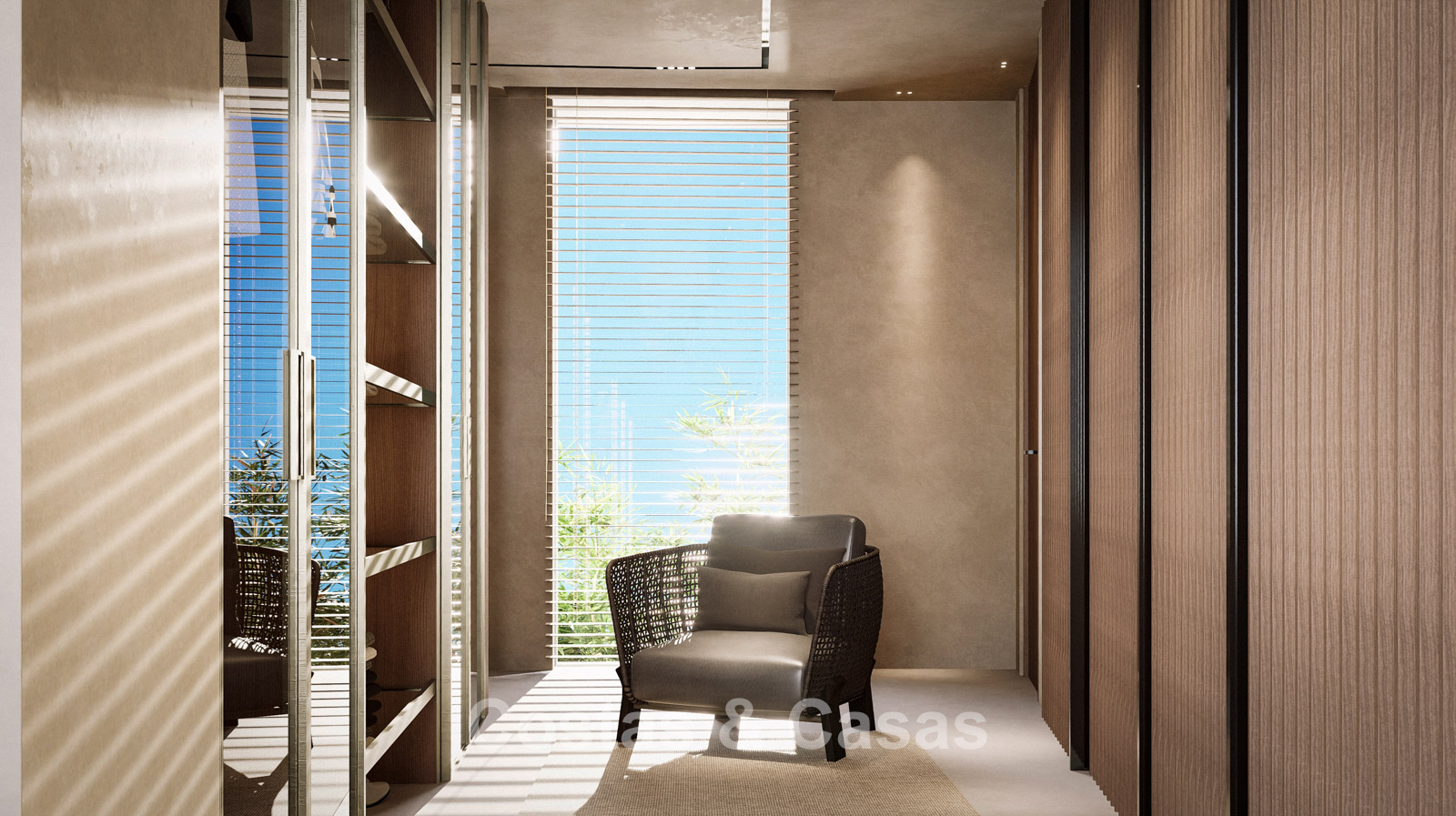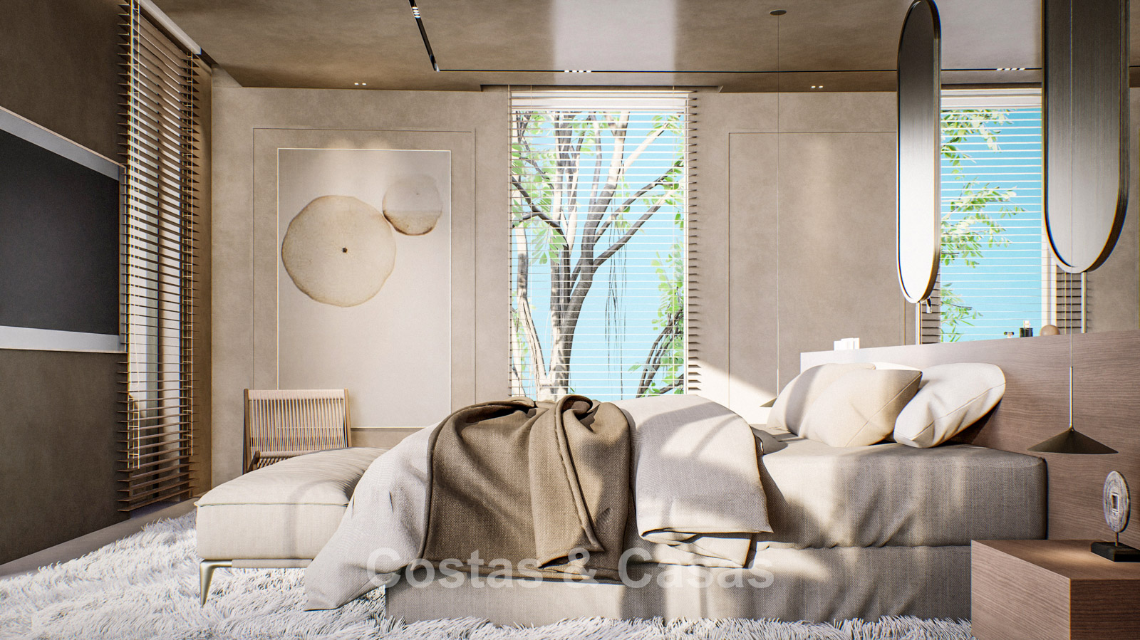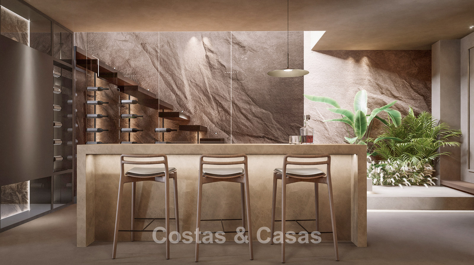 El diseño de la villa se caracteriza por un estilo minimalista moderno, donde las líneas limpias, las formas rectas y una distribución abierta y funcional son los protagonistas. Realizada con materiales sostenibles y acabados de alta calidad. Las ventanas correderas de suelo a techo crean una conexión fluida entre el interior y el exterior, permitiendo la entrada de abundante luz natural e integrando el exterior con naturalidad en el interior. Espacio dinámico con sala de estar y comedor. Cocina abierta de calidad, equipada con materiales de primera calidad y una distribución bien pensada. 7 dormitorios, cada uno con baño con un lujoso diseño de bienestar. Gimnasio equipado con baño contiguo. Trastero. Cuarto de máquinas. Amplias plazas de aparcamiento privado en la parcela.