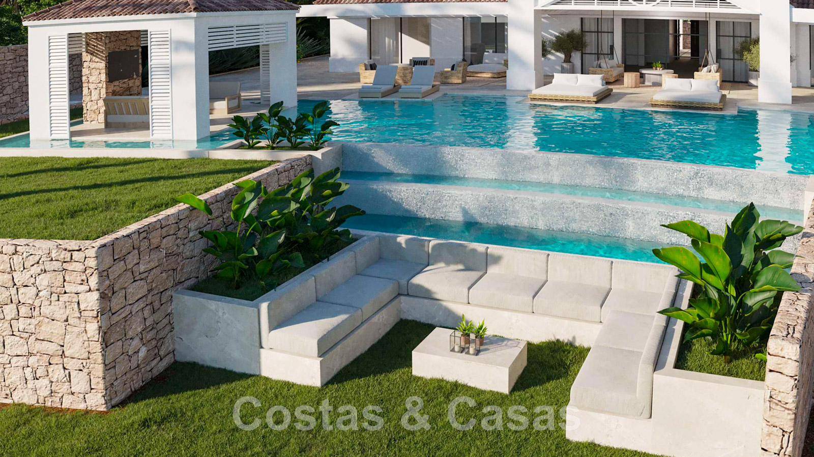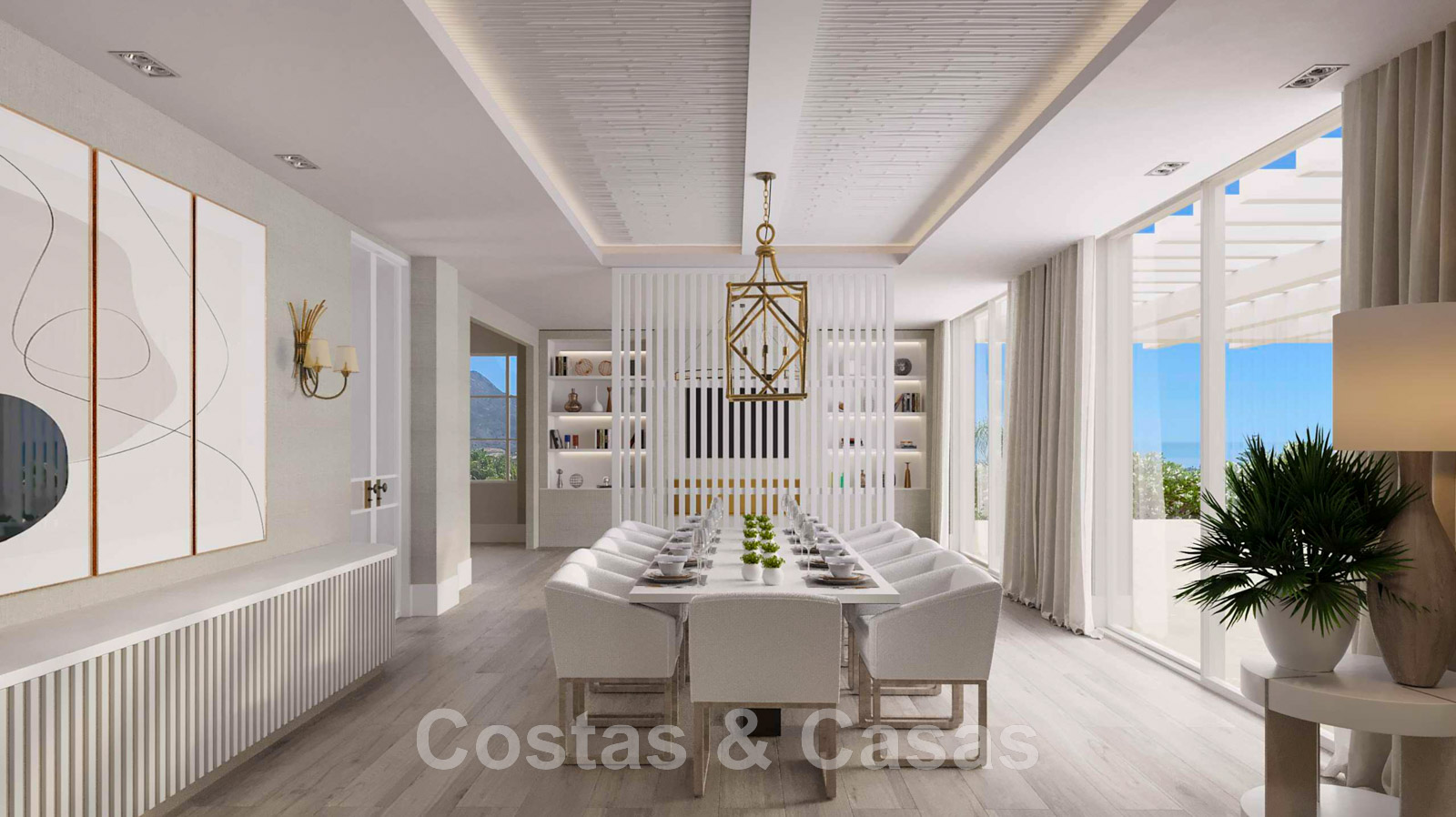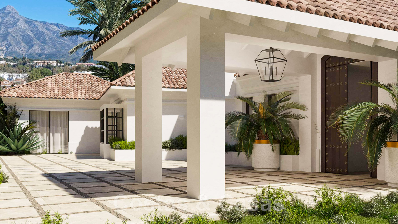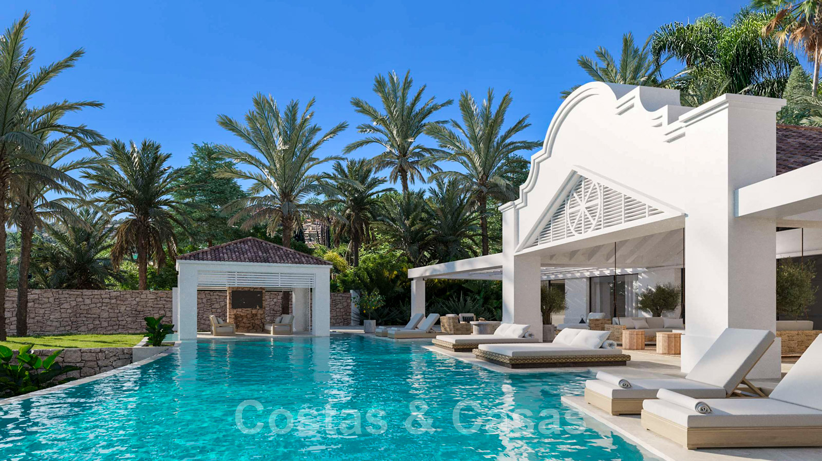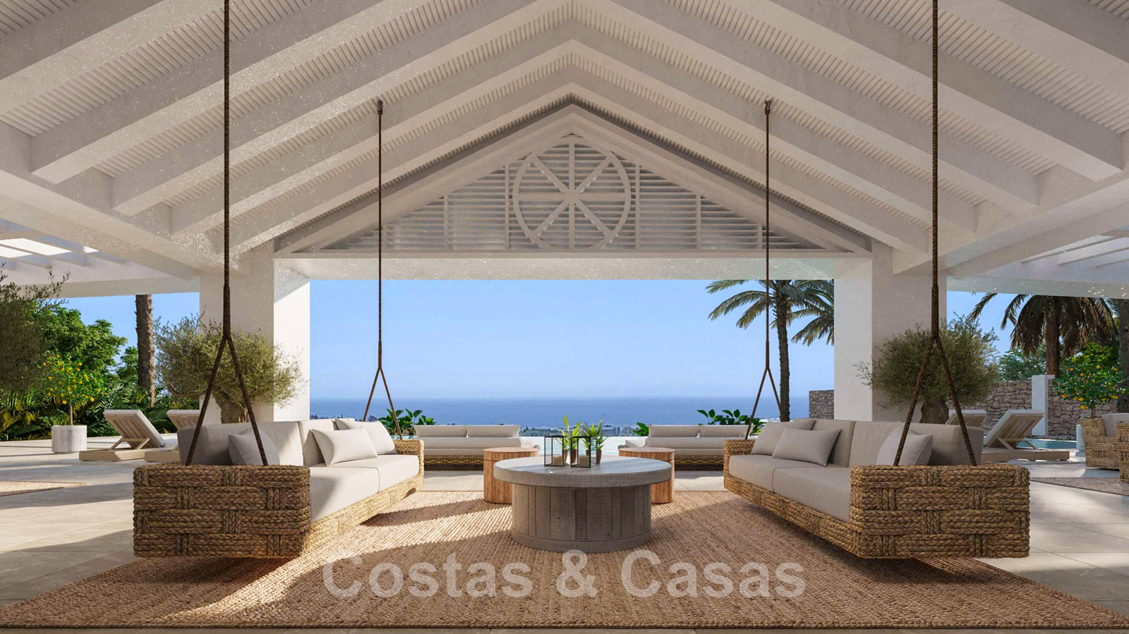 Elegante y lujosa villa de estilo resort en venta con impresionantes vistas al mar, situada en la zona más codiciada de Marbella en Nueva Andalucía