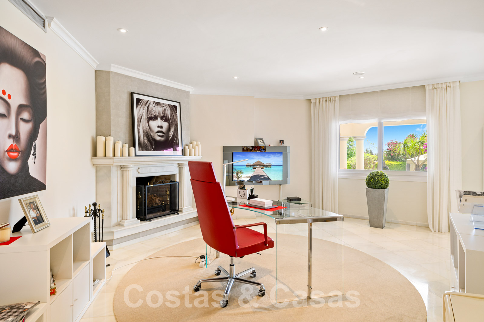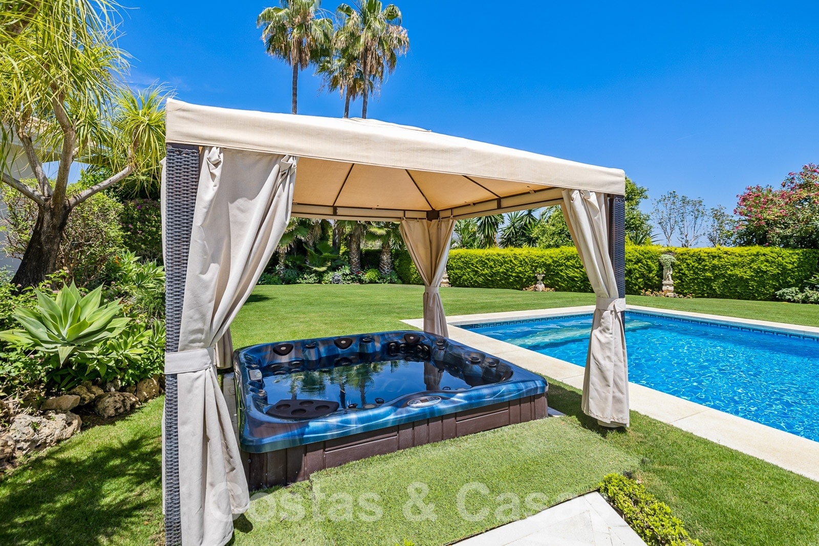 Tranquilamente situada en una zona privilegiado de villas en Nueva Andalucía, rodeada de 5 campos de golf, proporcionando mucho verde y hermosos paisajes.
