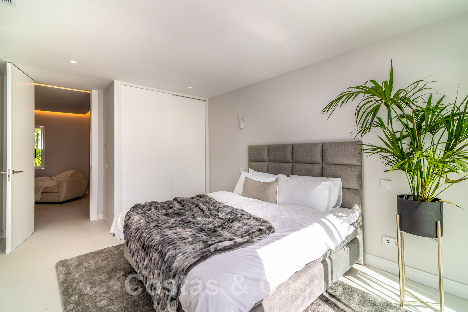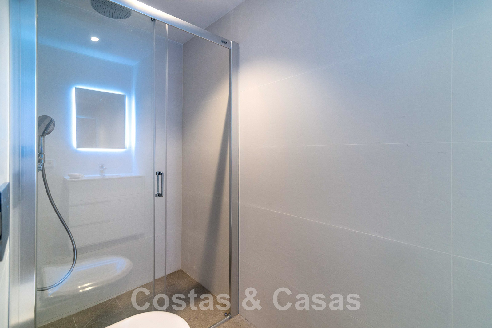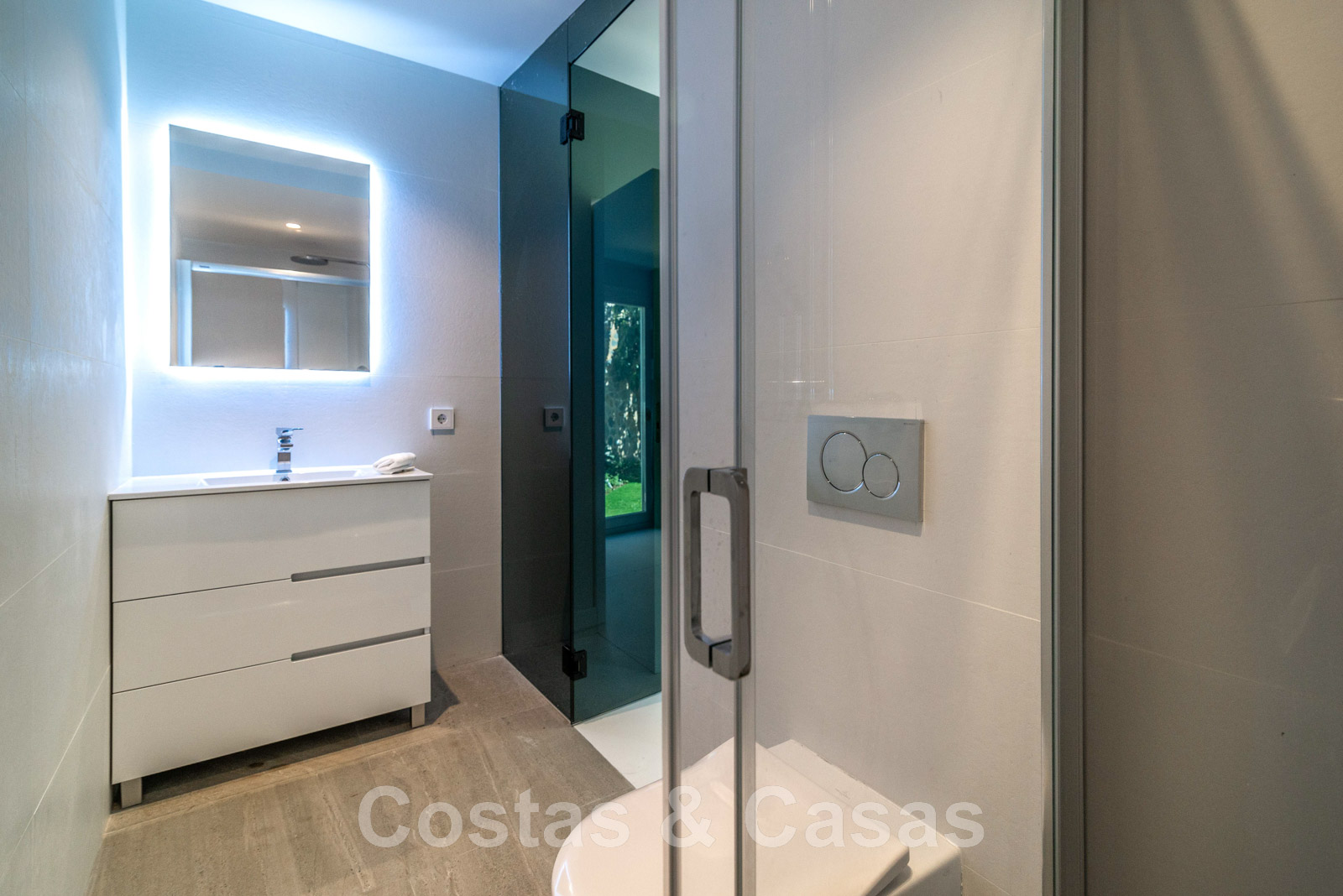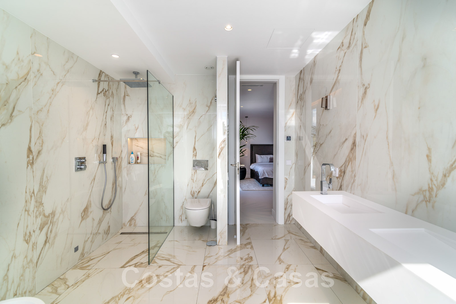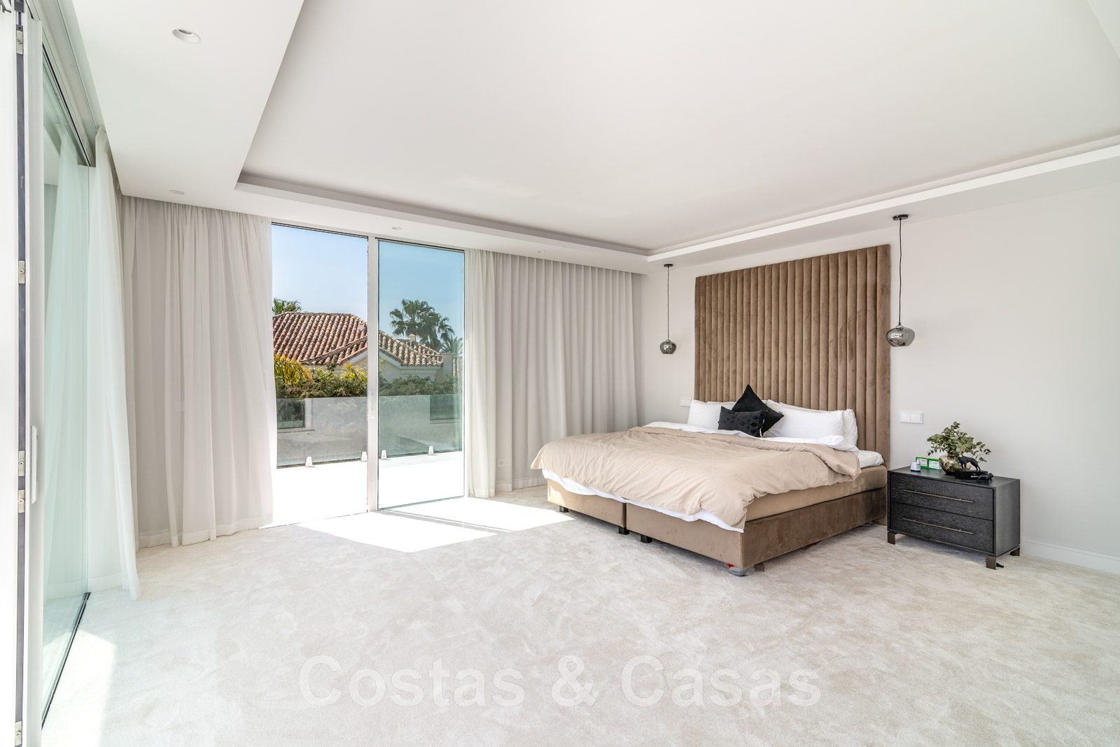 Planta superior +1 3 amplios dormitorios en suite con acceso a la terraza. Dormitorio principal en suite con bañera y ducha, vestidor y acceso a la terraza donde se disfruta de unas impresionantes vistas al mar.