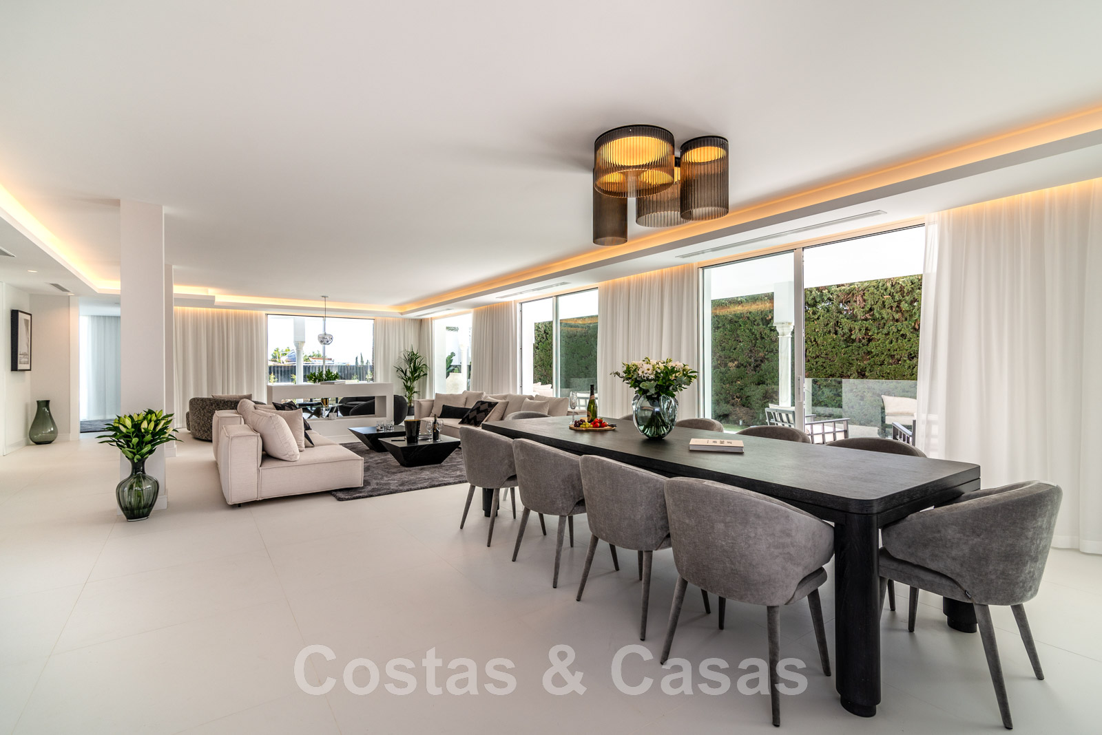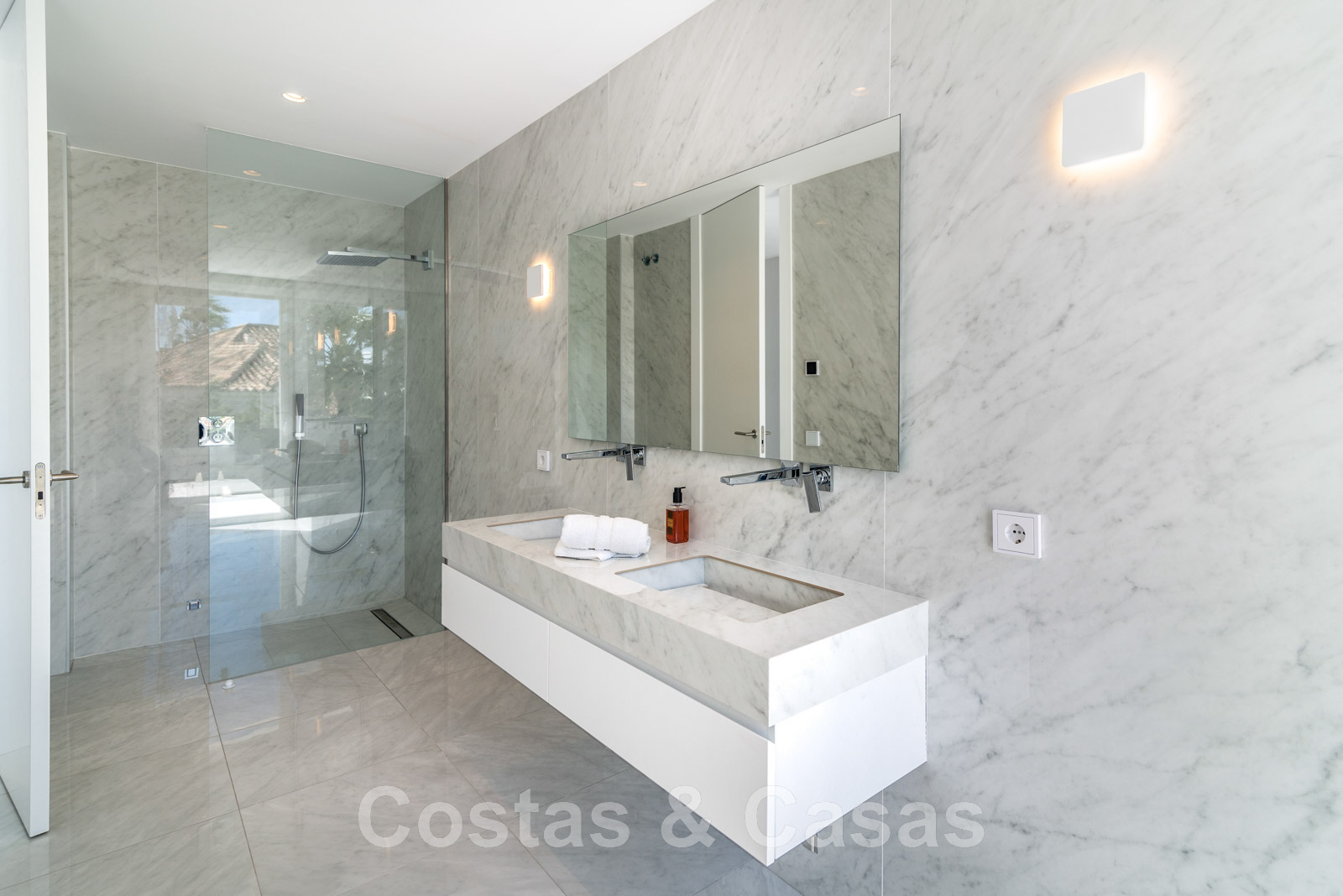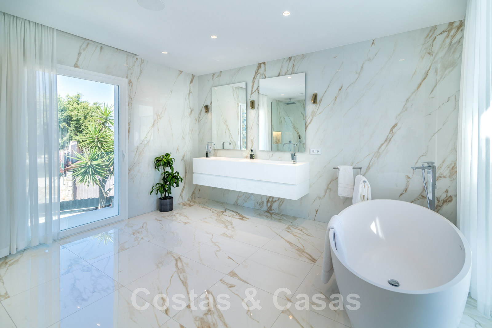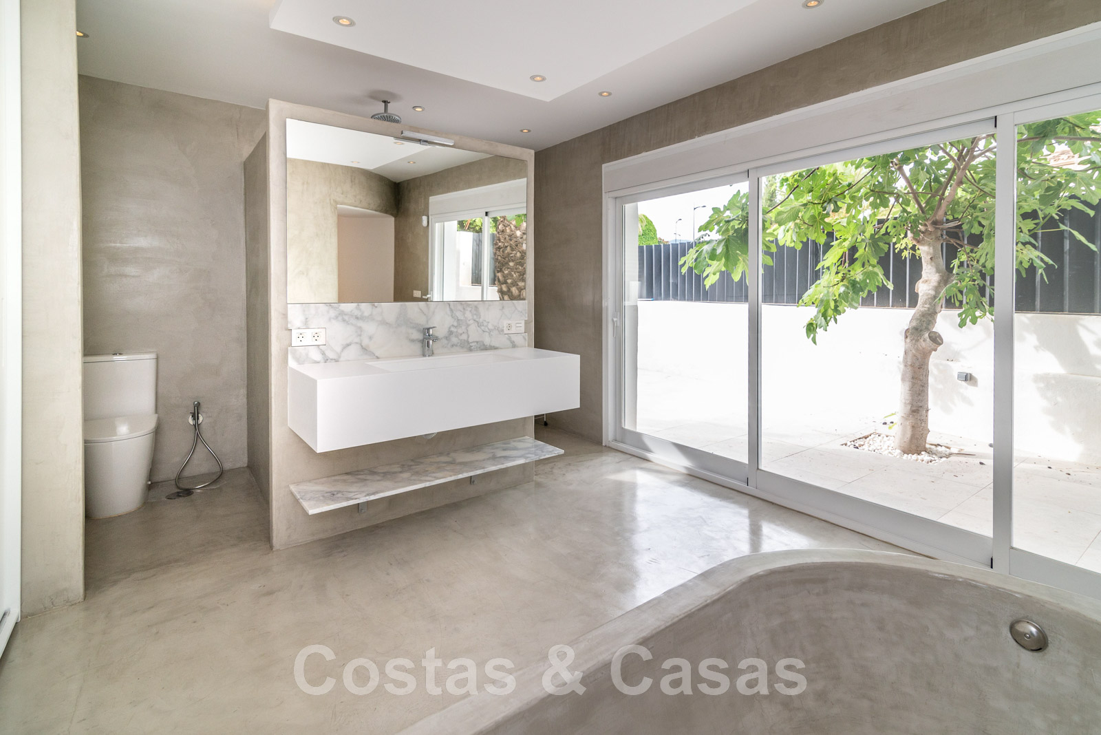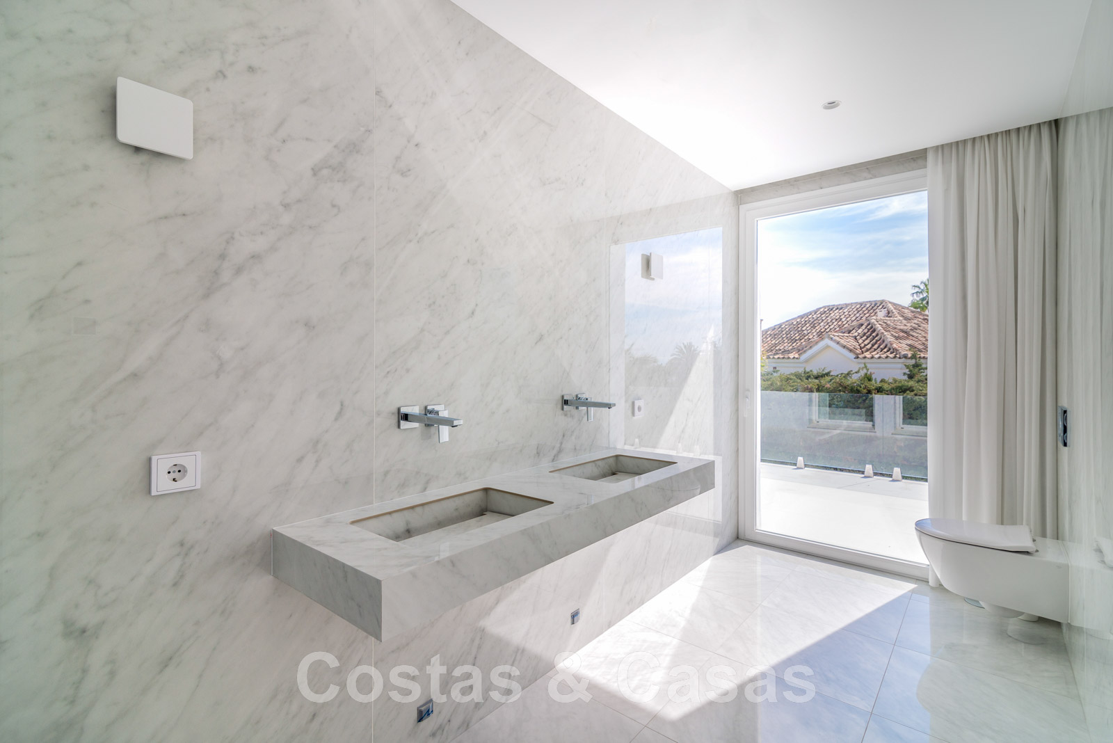 Villa independiente, de estilo moderno y andaluz. La villa está muy bien equipada con un ojo para el diseño. Interior muy elegante y contemporáneo. Un portón eléctrico da acceso al garaje interior. Aparcamiento para 8 coches. La villa cuenta con ventanas correderas de gran altura que ofrecen mucha luz y una transición perfecta entre el interior y el exterior. Suelos de baldosas de color crema.