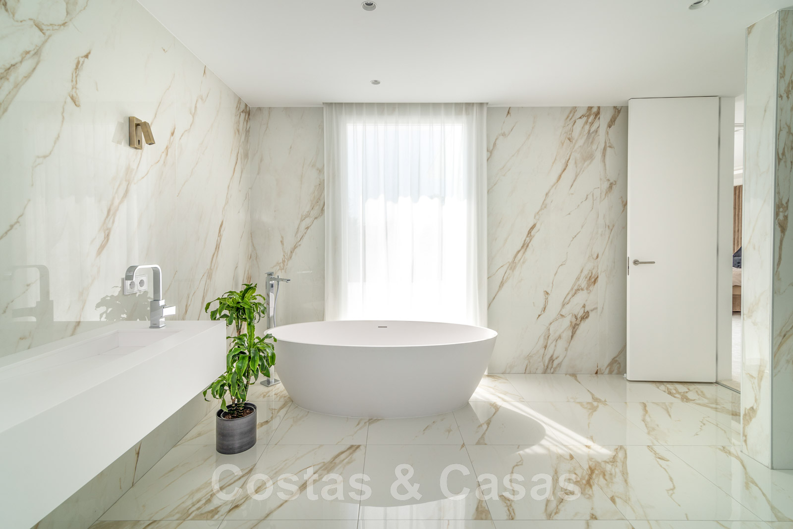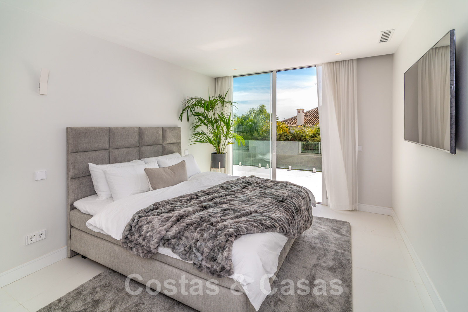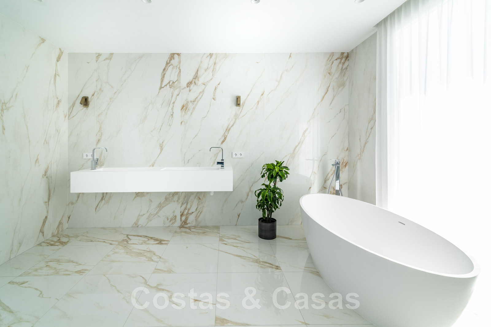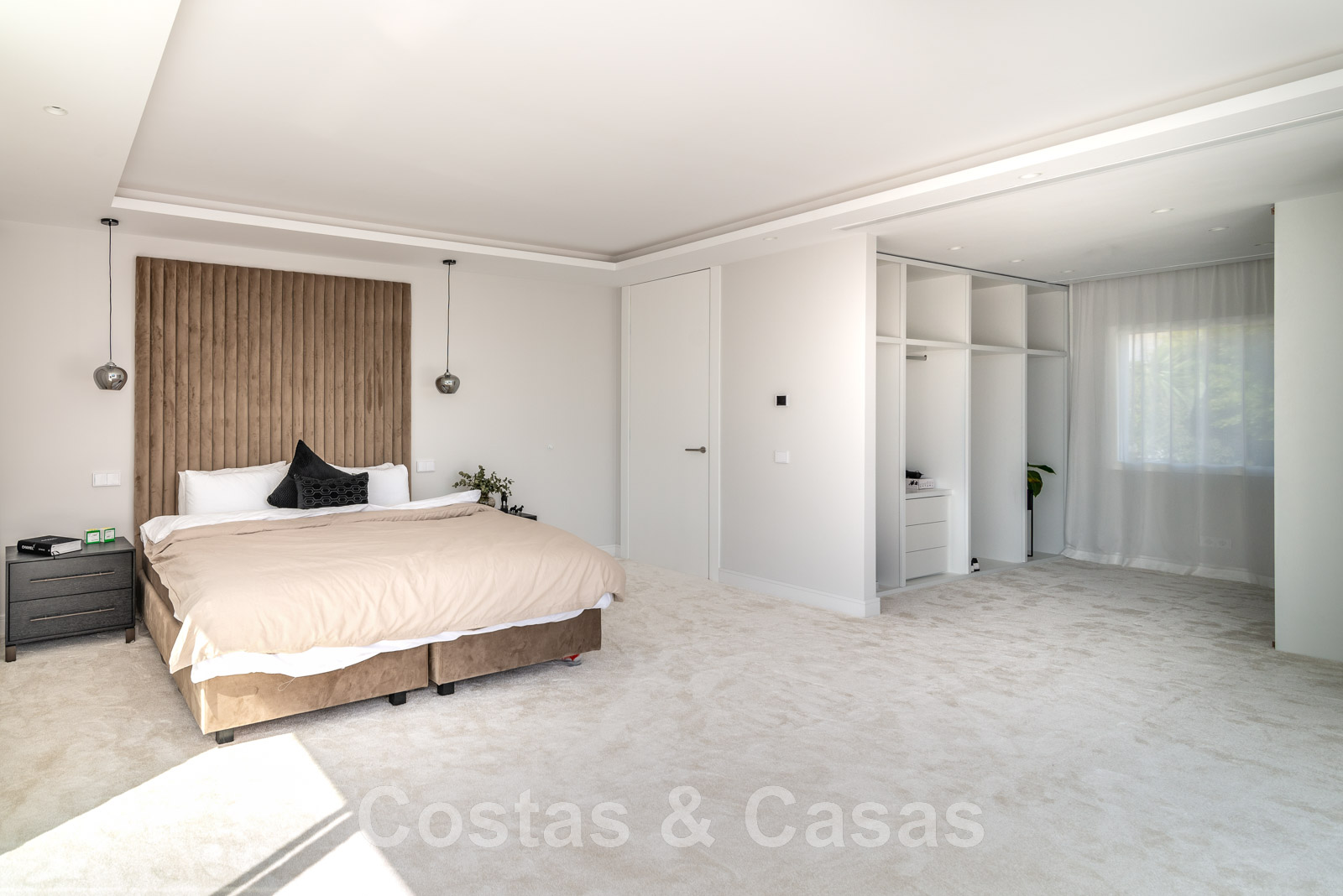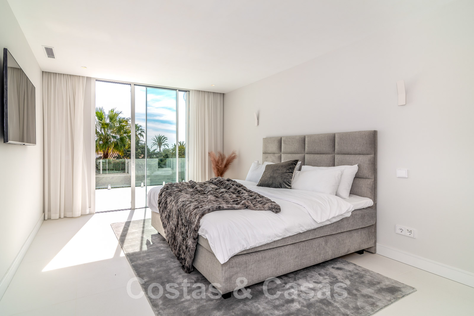 Villa independiente, de estilo moderno y andaluz. La villa está muy bien equipada con un ojo para el diseño. Interior muy elegante y contemporáneo. Un portón eléctrico da acceso al garaje interior. Aparcamiento para 8 coches. La villa cuenta con ventanas correderas de gran altura que ofrecen mucha luz y una transición perfecta entre el interior y el exterior. Suelos de baldosas de color crema.