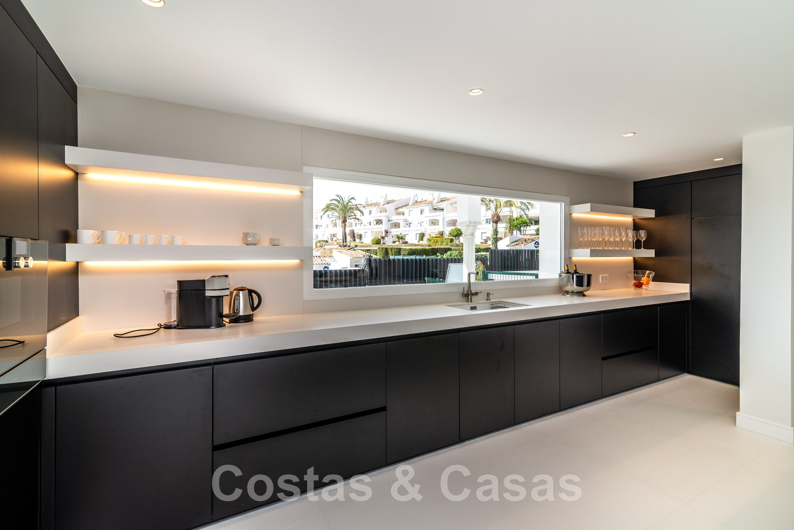 Planta baja Hall de entrada con ascensor, se abre al espacio de vida. Sala de estar de diseño abierto con un chill-out, gran salón y comedor. Cocina abierta de diseño con isla equipada con asientos y un refrigerador de vino. Dos dormitorios en suite que conectan con el jardín. Trastero, lavadero. Una idílica torre morisca en el jardín se convirtió en una casa de invitados.