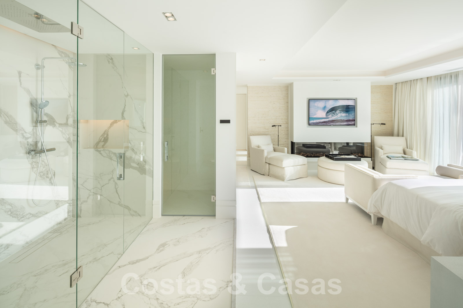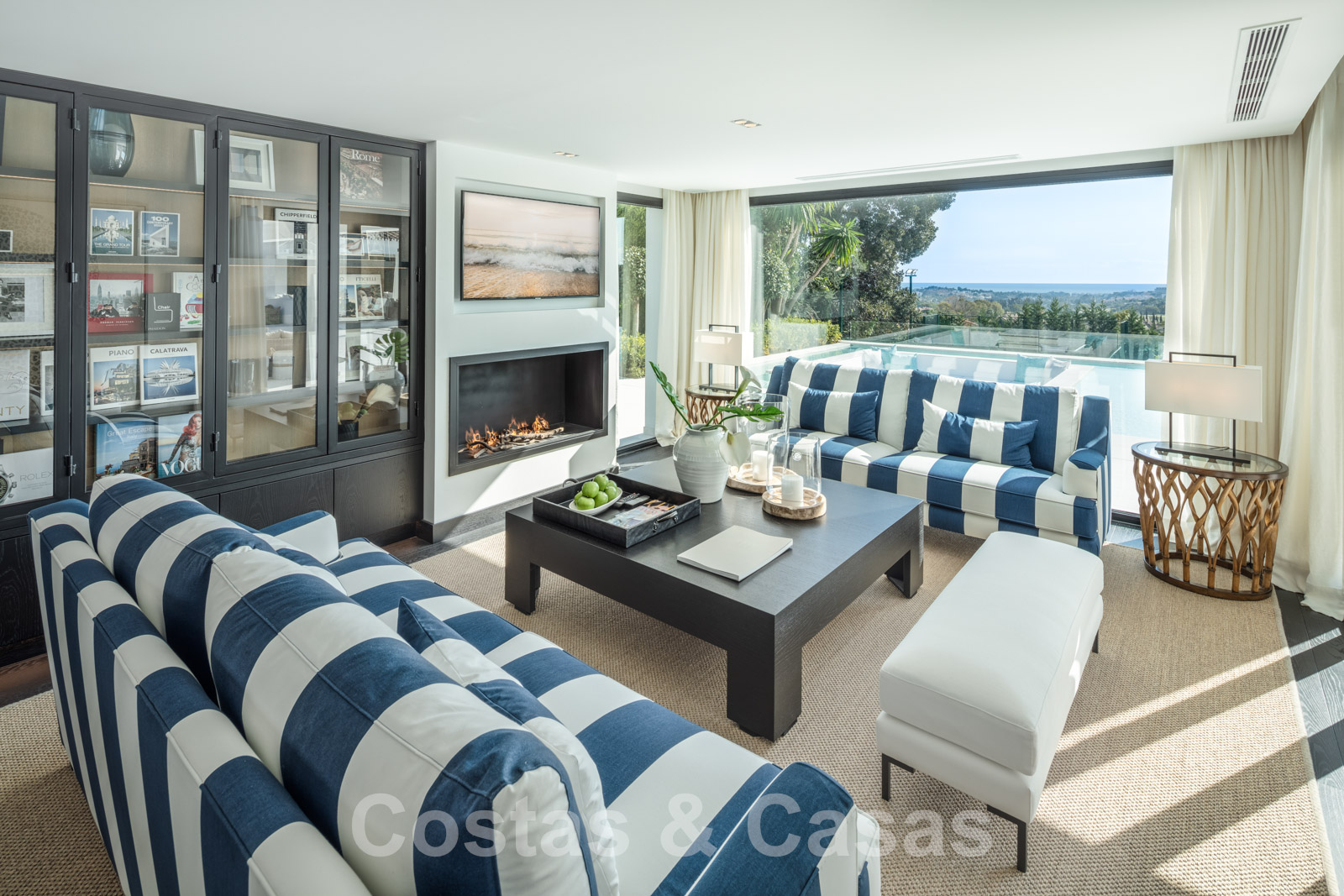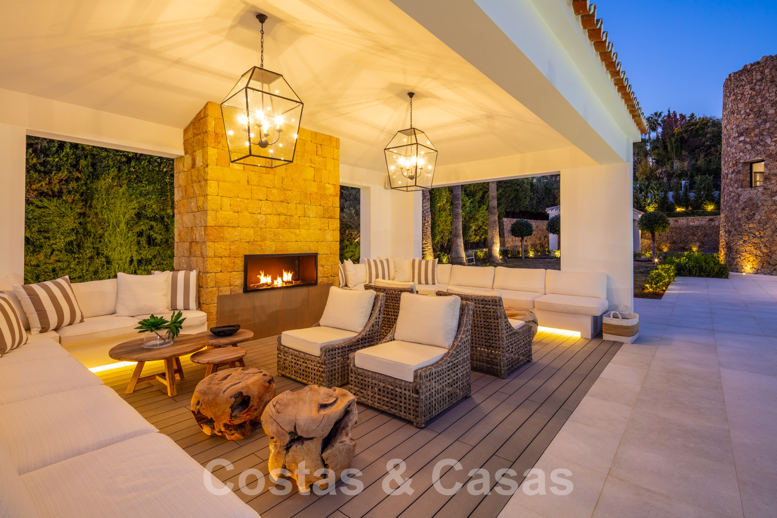 Aire acondicionado para calor y frio. Múltiples chimeneas tanto en el interior como en el exterior. Barandillas de cristal. Suelos de madera oscura de calidad. Armarios empotrados. Iluminación ambiental interior y exterior.