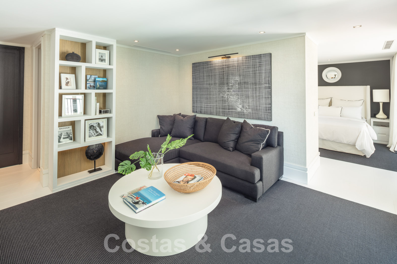 Planta superior La suite principal con salón privado, cuarto de baño, gran vestidor y acceso a una amplia terraza. 3 dormitorios de invitados, cada uno con baño privado y uno de ellos con salón privado.