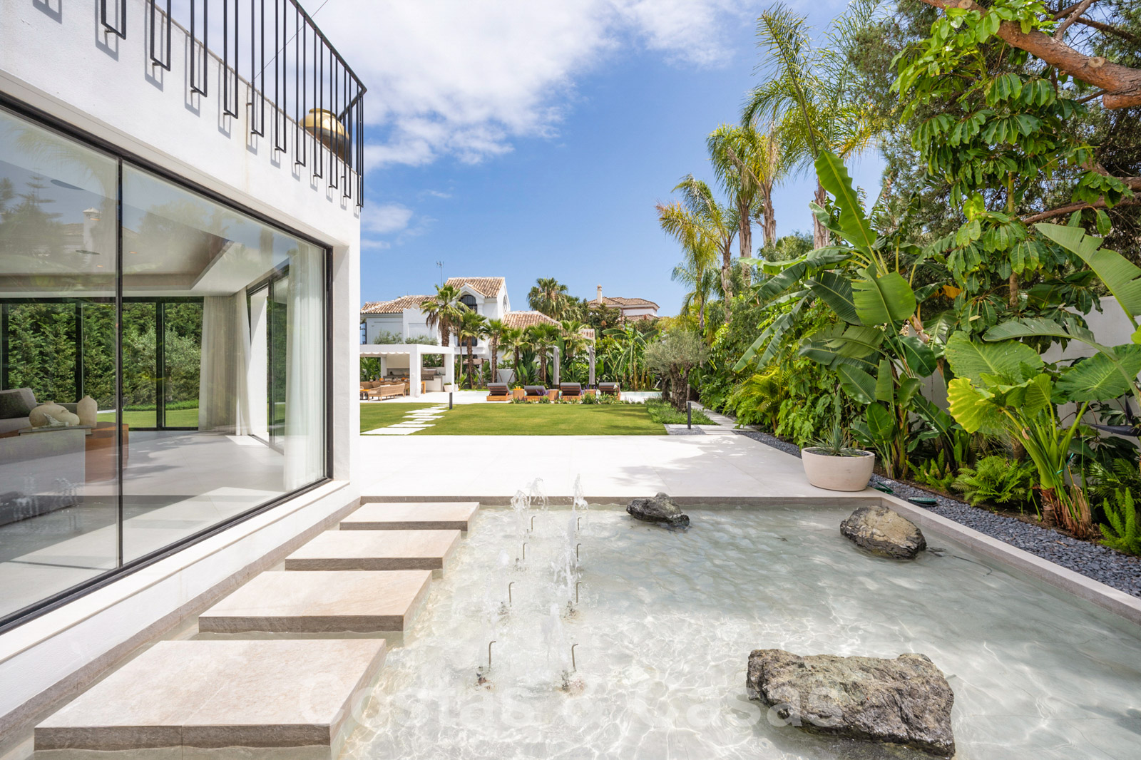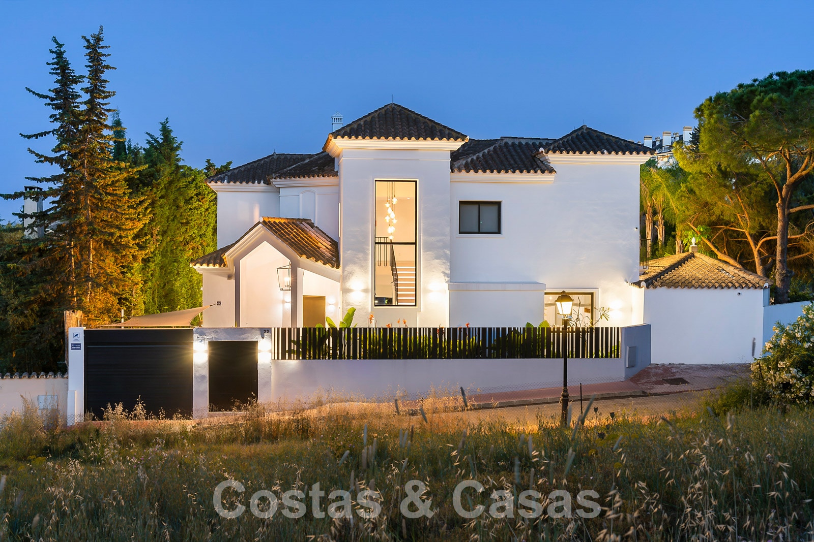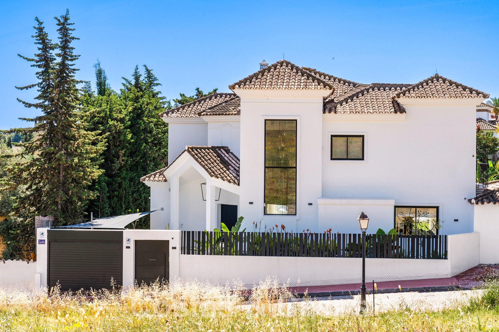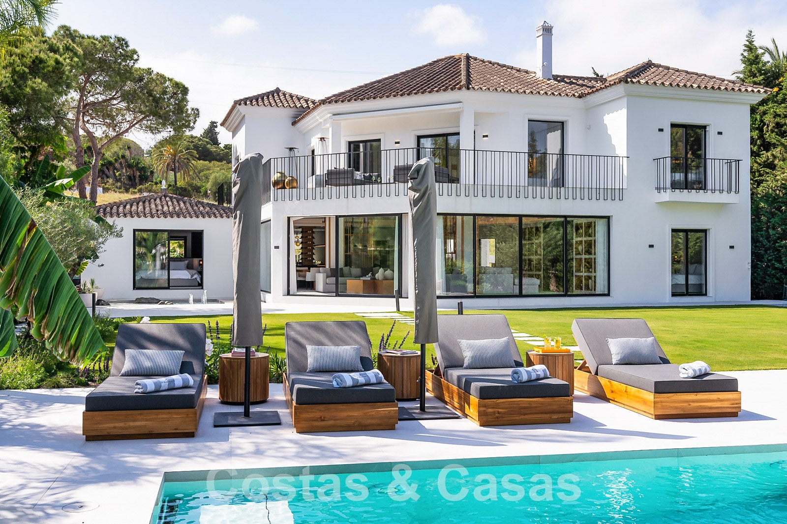 Villa independiente con arquitectura moderna combinada con toques andaluces como las tejas de terracota, que aportan encanto y carácter. Completamente reformado con materiales de alta calidad. Decorado elegantemente con muebles de calidad y tonos neutros. Terrazas abiertas con espacio suficiente para instalar instalaciones de relax. Amplia sala de estar con sala de TV y comedor. Cocina de diseño con isla en forma de diamante, enfriador de vino y barra de desayuno. Los techos altos y los grandes ventanales garantizan que cada rincón esté ricamente iluminado. 6 dormitorios, 5 baños. Un alojamiento de invitados adjunto con dormitorio y baño en suite.