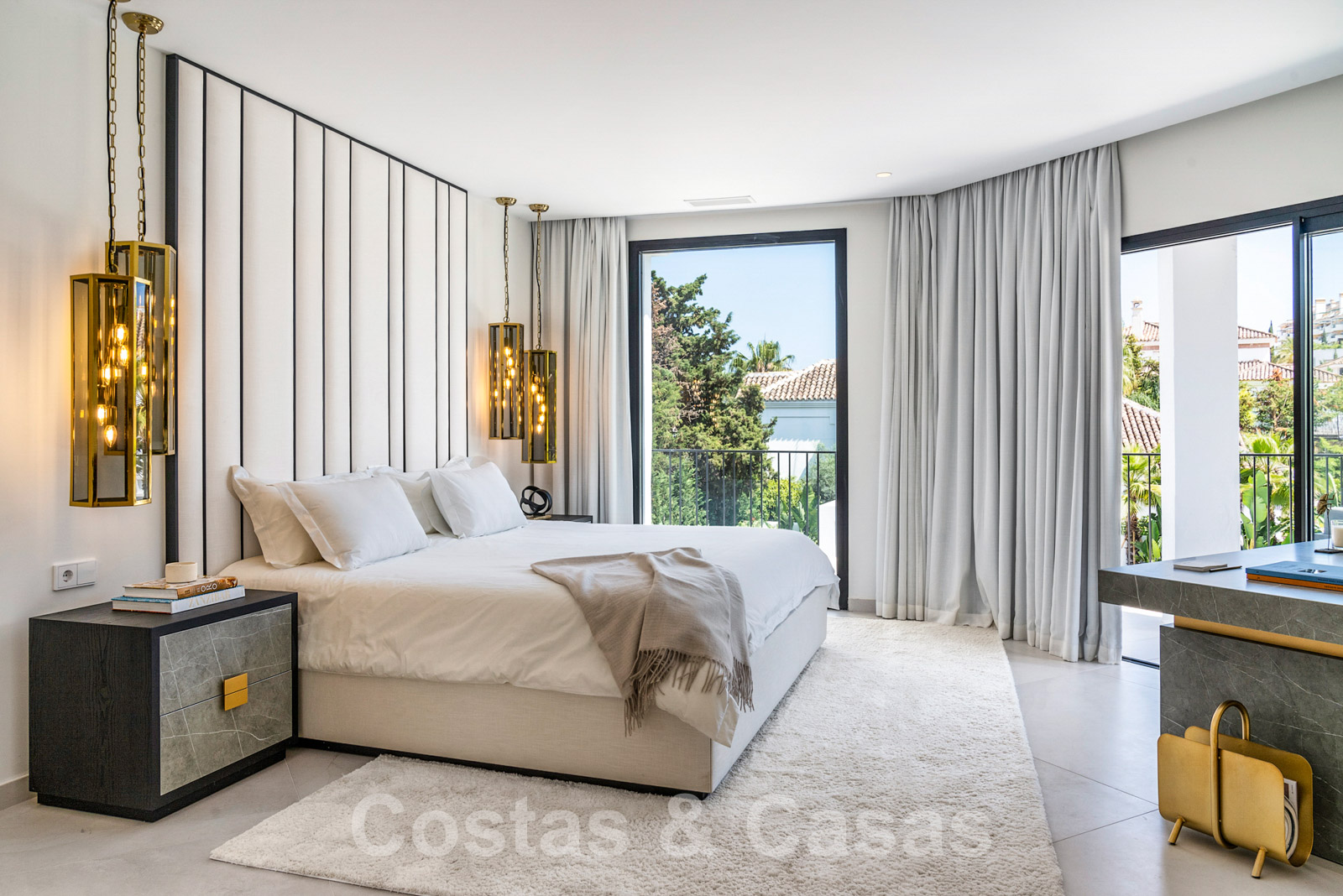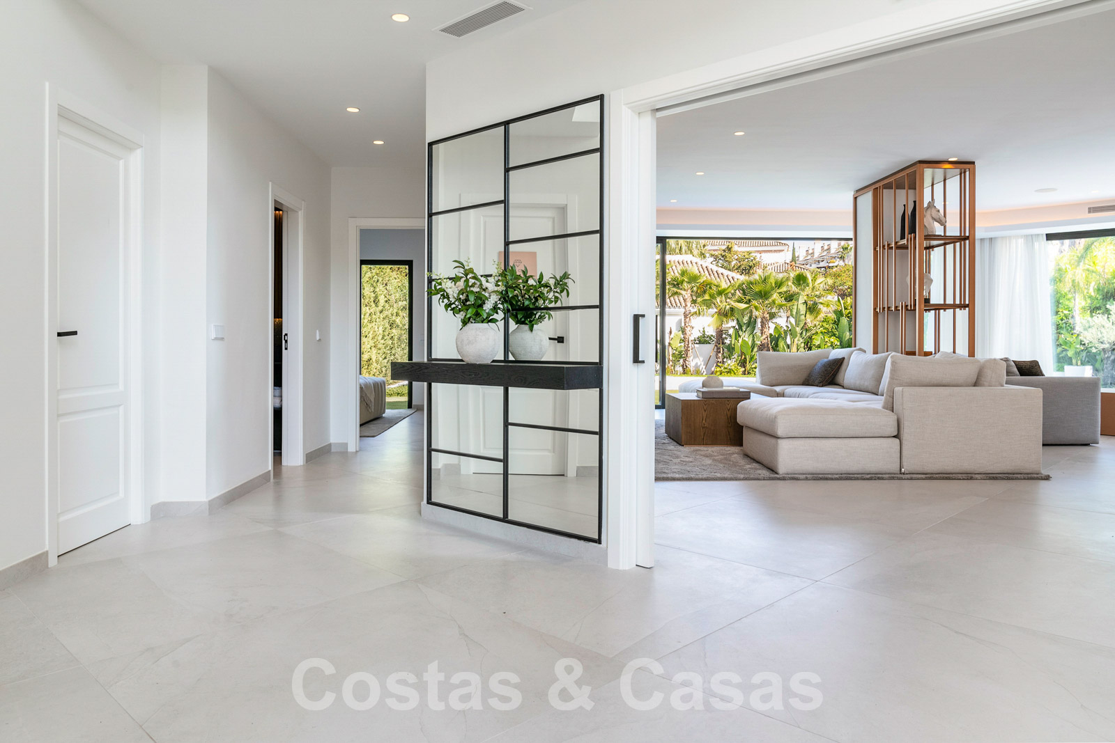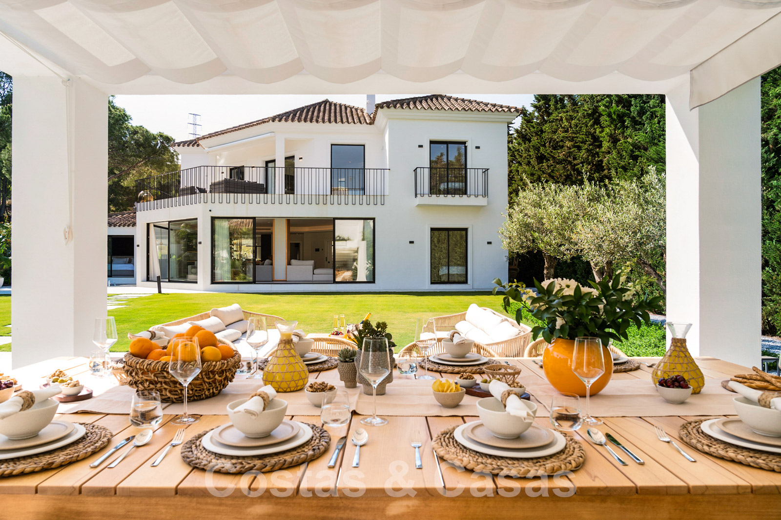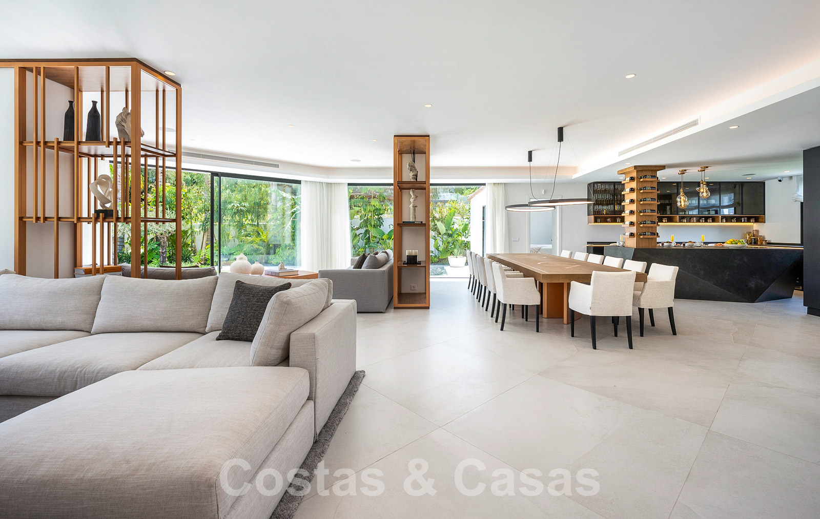 Villa independiente con arquitectura moderna combinada con toques andaluces como las tejas de terracota, que aportan encanto y carácter. Completamente reformado con materiales de alta calidad. Decorado elegantemente con muebles de calidad y tonos neutros. Terrazas abiertas con espacio suficiente para instalar instalaciones de relax. Amplia sala de estar con sala de TV y comedor. Cocina de diseño con isla en forma de diamante, enfriador de vino y barra de desayuno. Los techos altos y los grandes ventanales garantizan que cada rincón esté ricamente iluminado. 6 dormitorios, 5 baños. Un alojamiento de invitados adjunto con dormitorio y baño en suite.