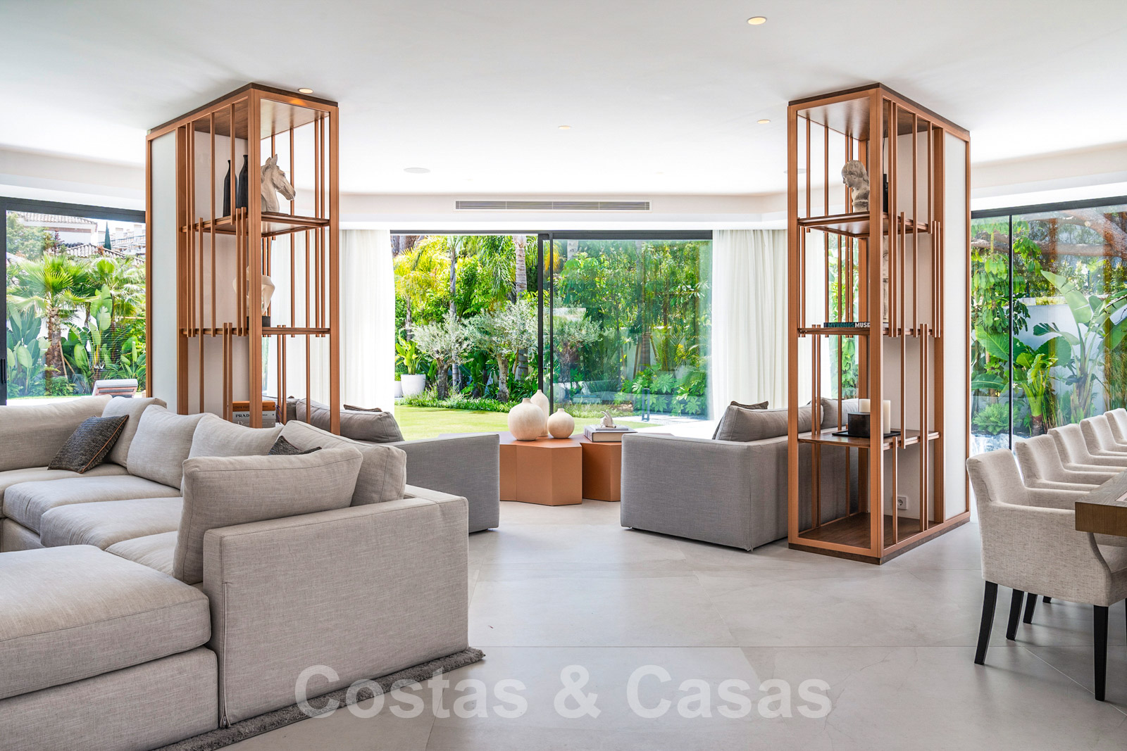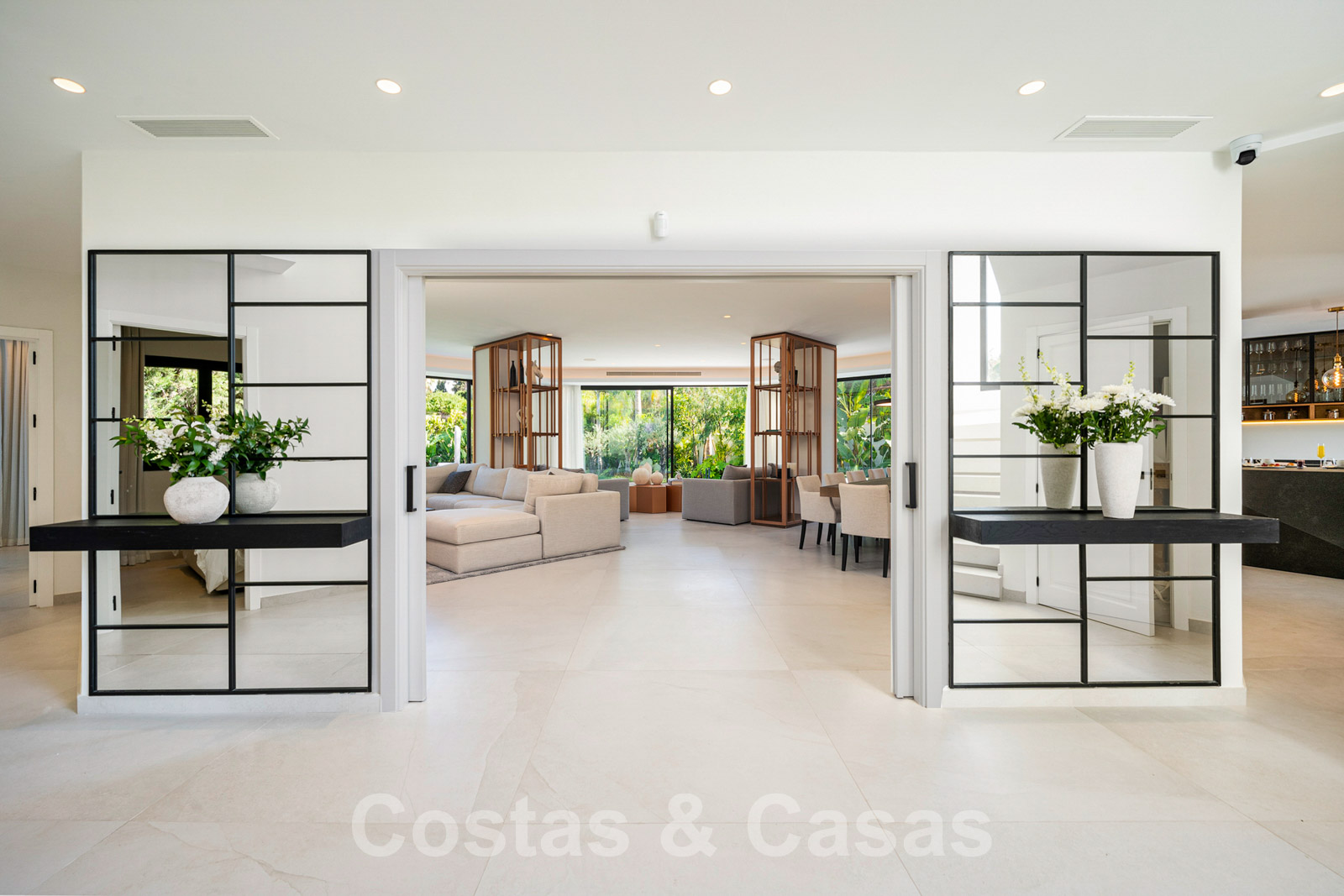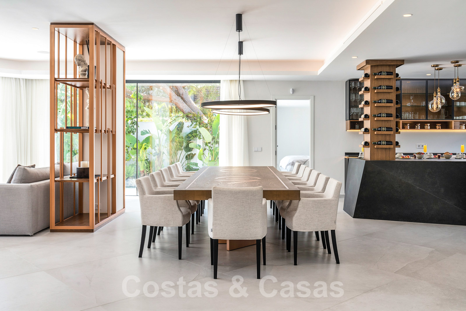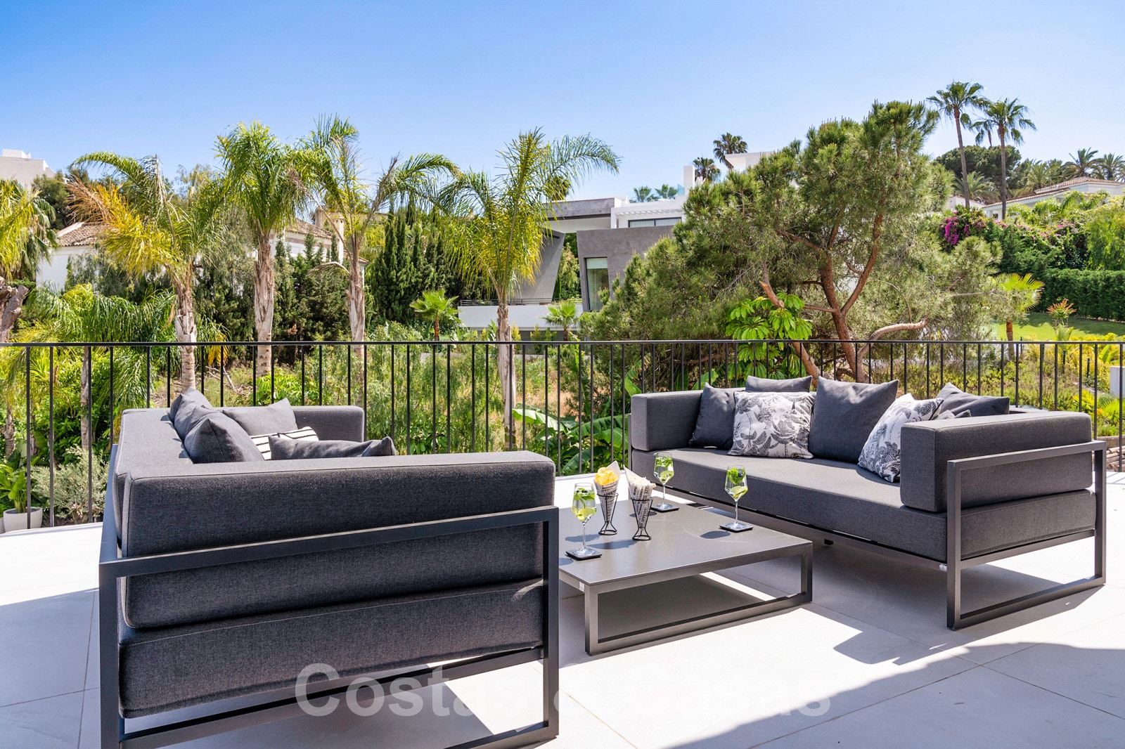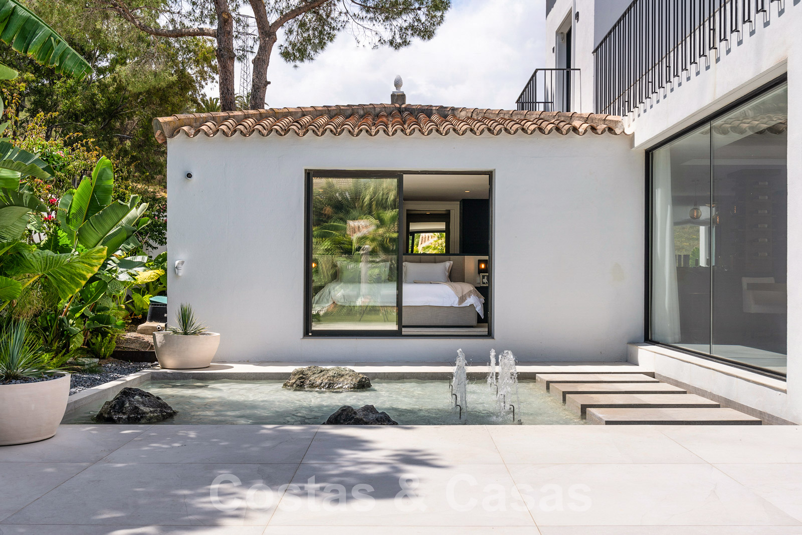 Villa independiente con arquitectura moderna combinada con toques andaluces como las tejas de terracota, que aportan encanto y carácter. Completamente reformado con materiales de alta calidad. Decorado elegantemente con muebles de calidad y tonos neutros. Terrazas abiertas con espacio suficiente para instalar instalaciones de relax. Amplia sala de estar con sala de TV y comedor. Cocina de diseño con isla en forma de diamante, enfriador de vino y barra de desayuno. Los techos altos y los grandes ventanales garantizan que cada rincón esté ricamente iluminado. 6 dormitorios, 5 baños. Un alojamiento de invitados adjunto con dormitorio y baño en suite.