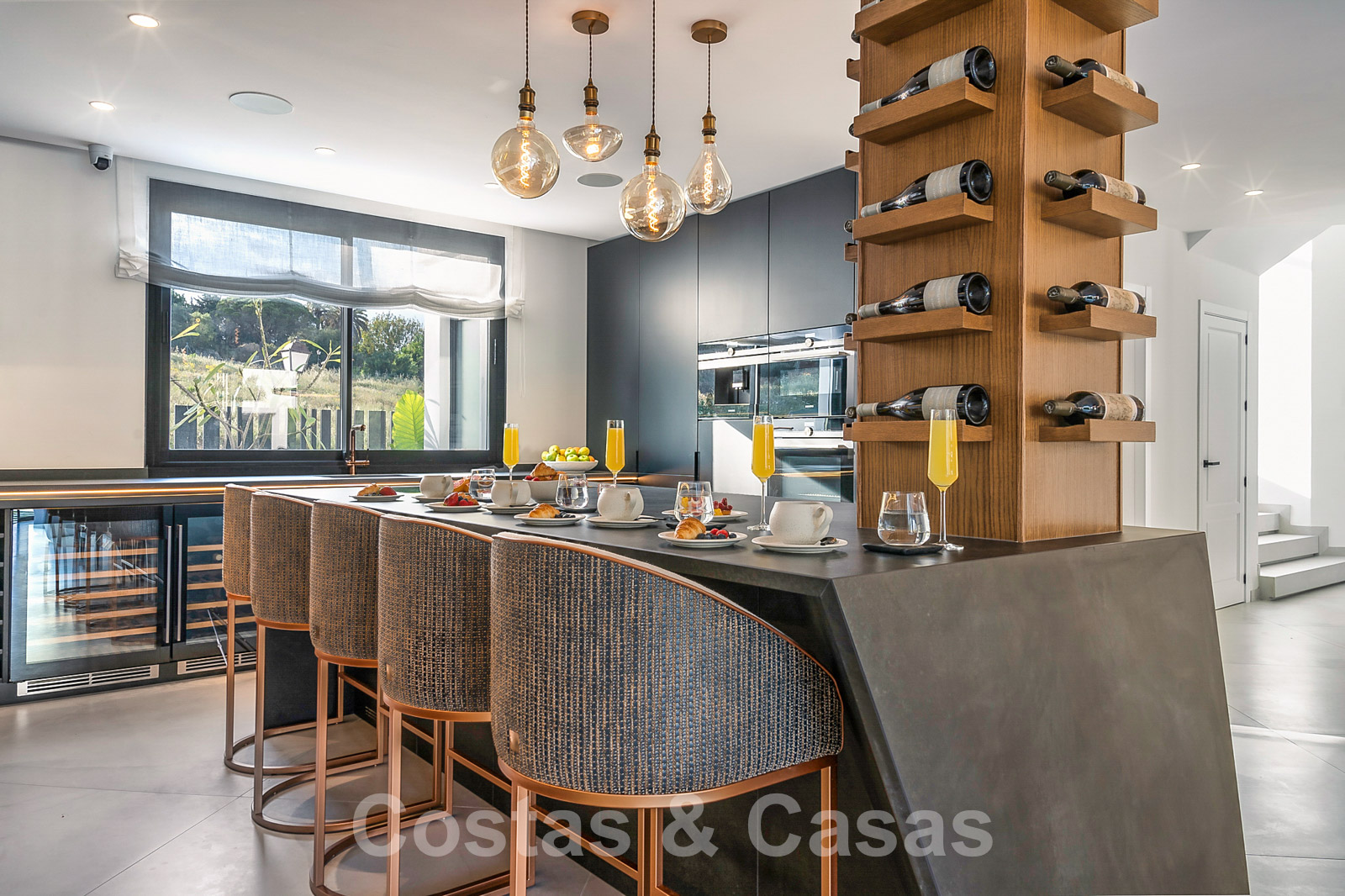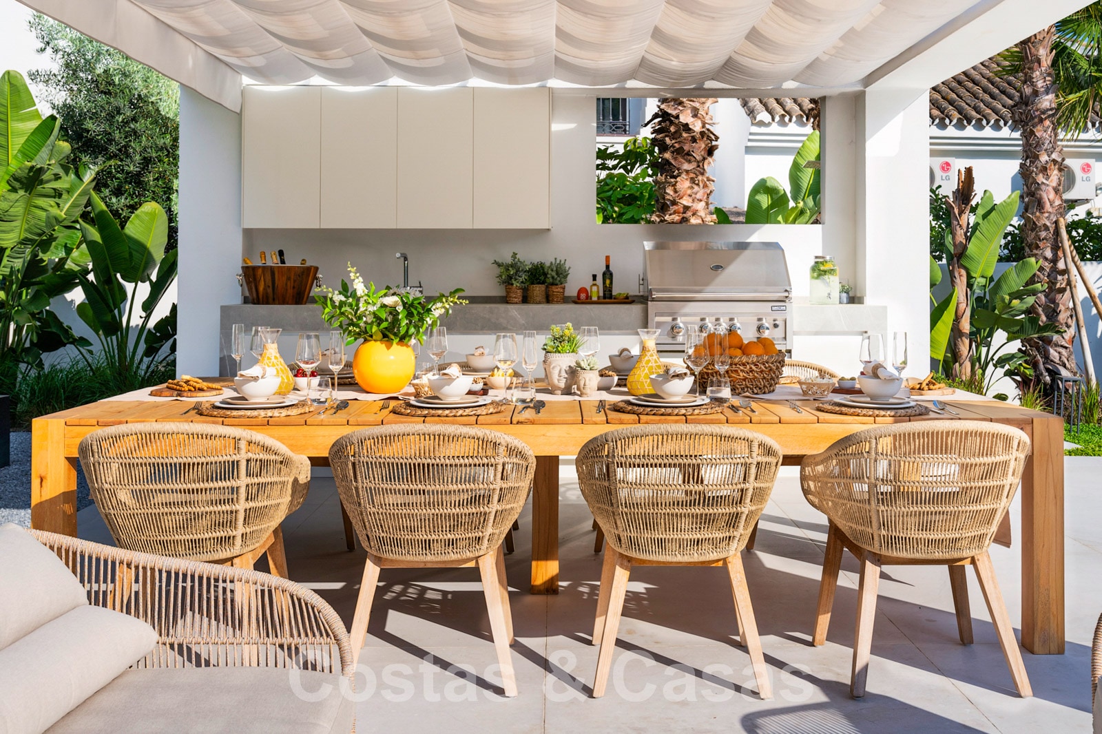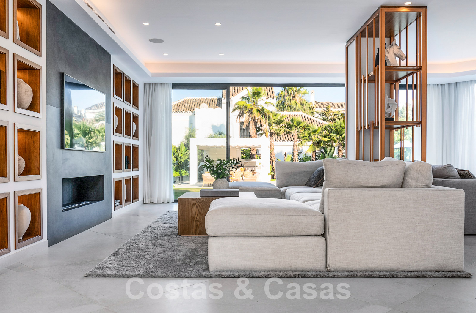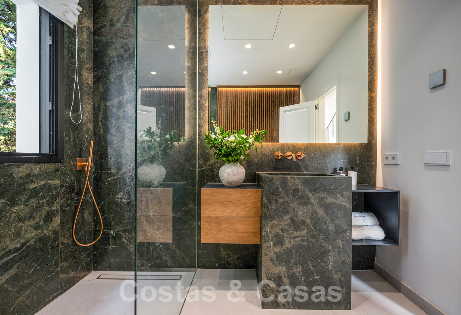 Villa independiente con arquitectura moderna combinada con toques andaluces como las tejas de terracota, que aportan encanto y carácter. Completamente reformado con materiales de alta calidad. Decorado elegantemente con muebles de calidad y tonos neutros. Terrazas abiertas con espacio suficiente para instalar instalaciones de relax. Amplia sala de estar con sala de TV y comedor. Cocina de diseño con isla en forma de diamante, enfriador de vino y barra de desayuno. Los techos altos y los grandes ventanales garantizan que cada rincón esté ricamente iluminado. 6 dormitorios, 5 baños. Un alojamiento de invitados adjunto con dormitorio y baño en suite.