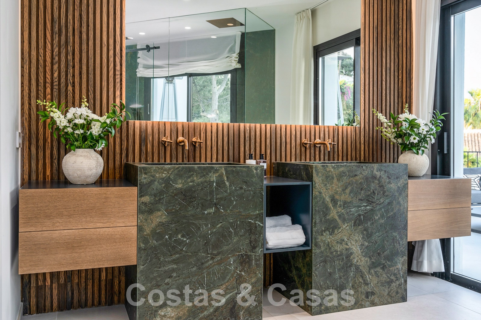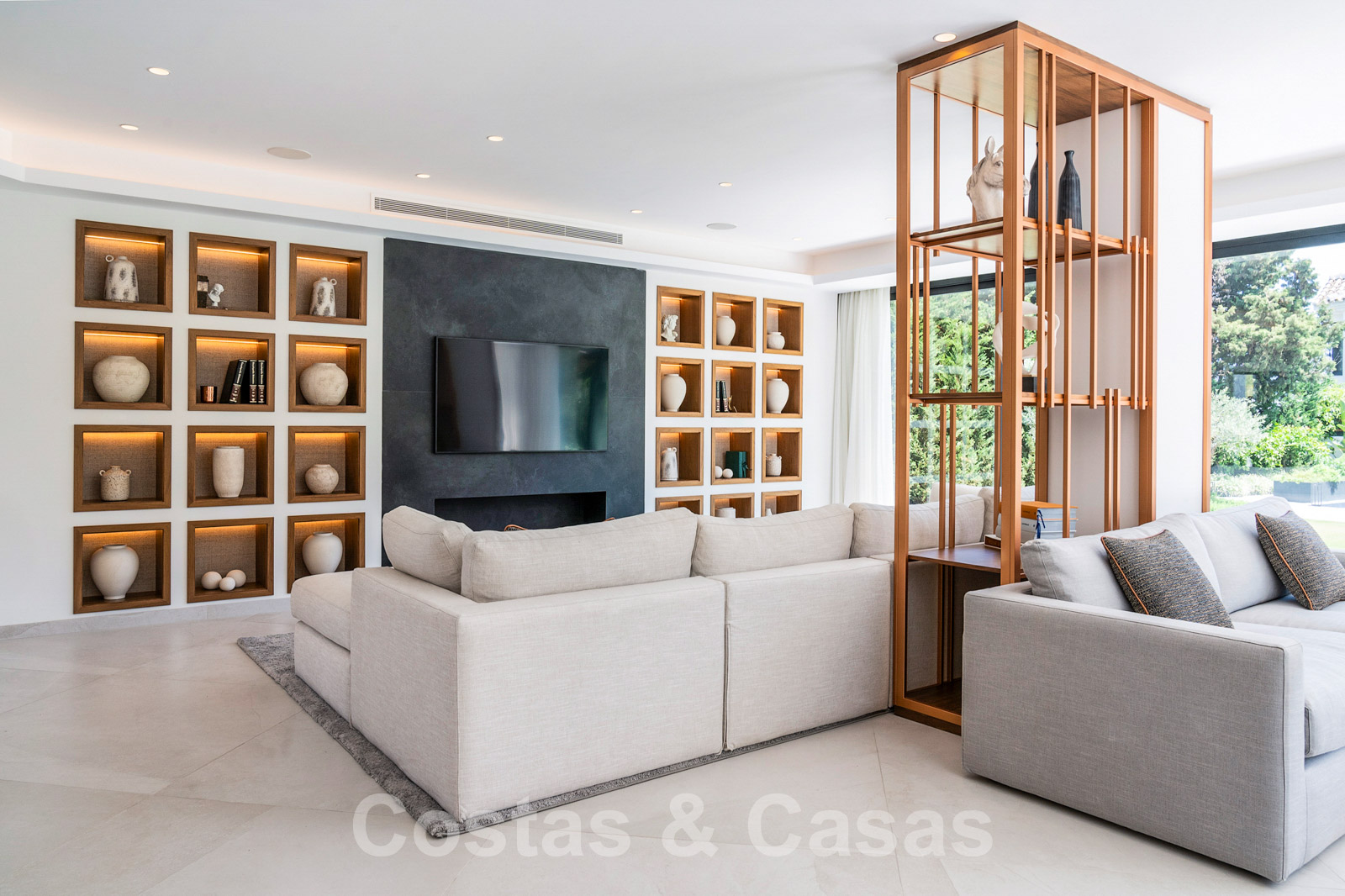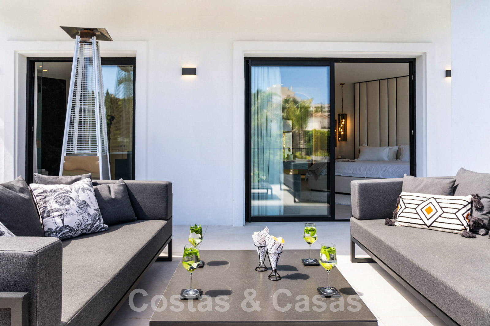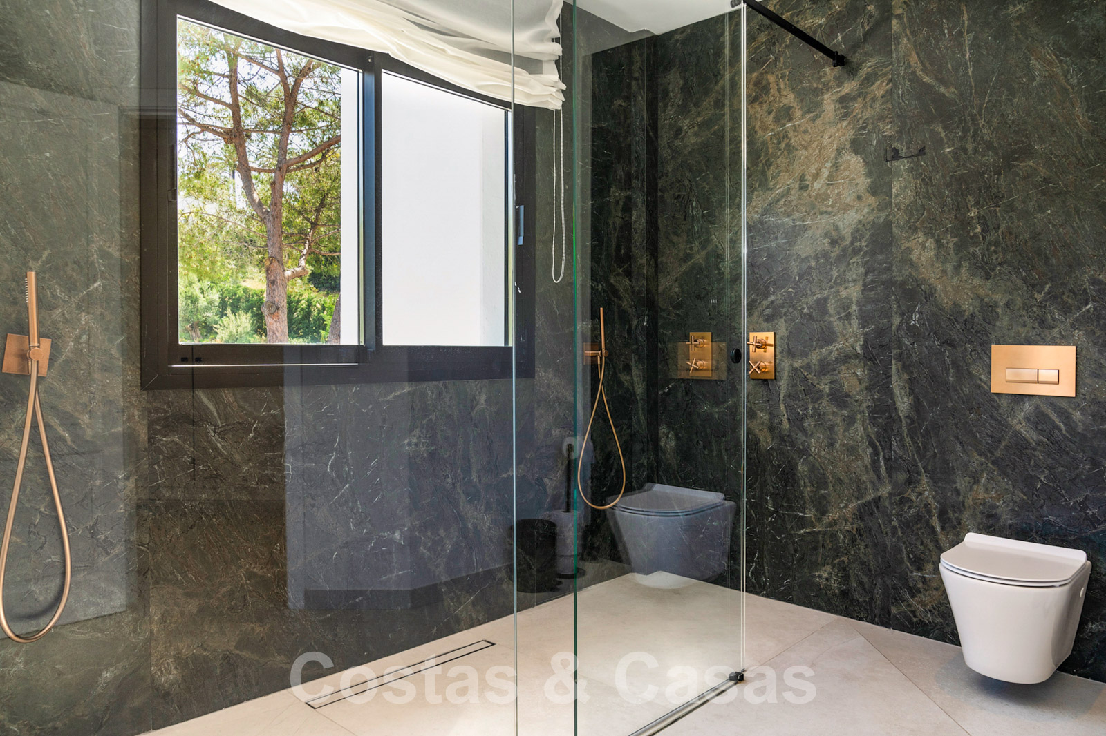Villa independiente con arquitectura moderna combinada con toques andaluces como las tejas de terracota, que aportan encanto y carácter. Completamente reformado con materiales de alta calidad. Decorado elegantemente con muebles de calidad y tonos neutros. Terrazas abiertas con espacio suficiente para instalar instalaciones de relax. Amplia sala de estar con sala de TV y comedor. Cocina de diseño con isla en forma de diamante, enfriador de vino y barra de desayuno. Los techos altos y los grandes ventanales garantizan que cada rincón esté ricamente iluminado. 6 dormitorios, 5 baños. Un alojamiento de invitados adjunto con dormitorio y baño en suite.