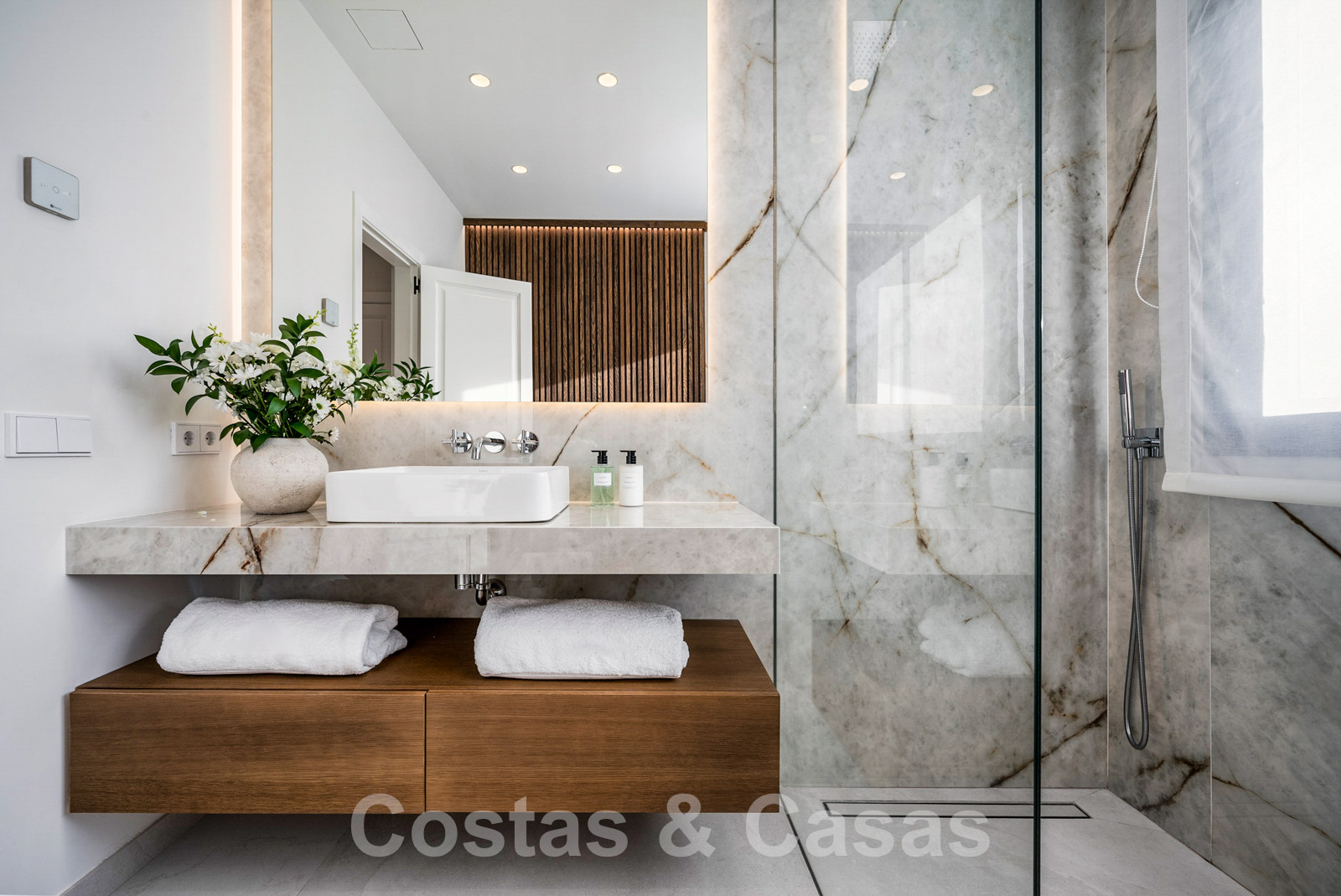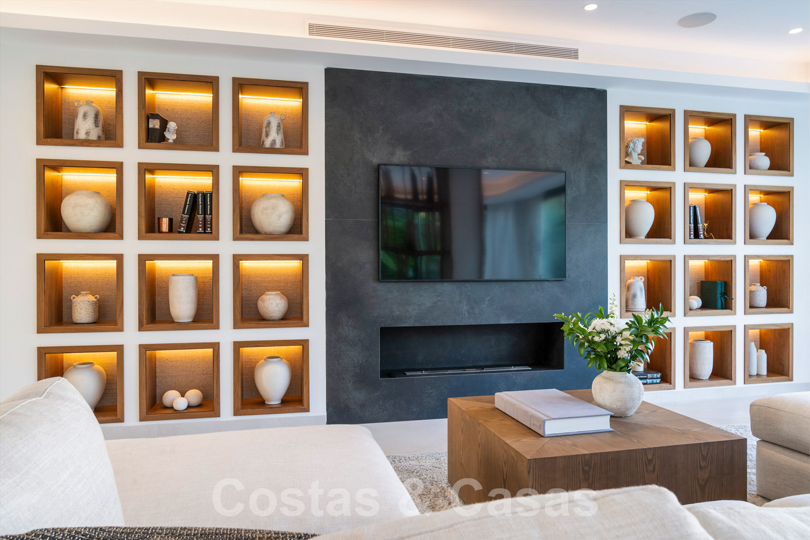 Aire acondicionado para calor y frio. Sistema domótico avanzado. Chimenea eléctrica. Armarios empotrados. Iluminación LED interior y exterior. Toldos en la terraza. Sistema de alarma con cámaras de seguridad.