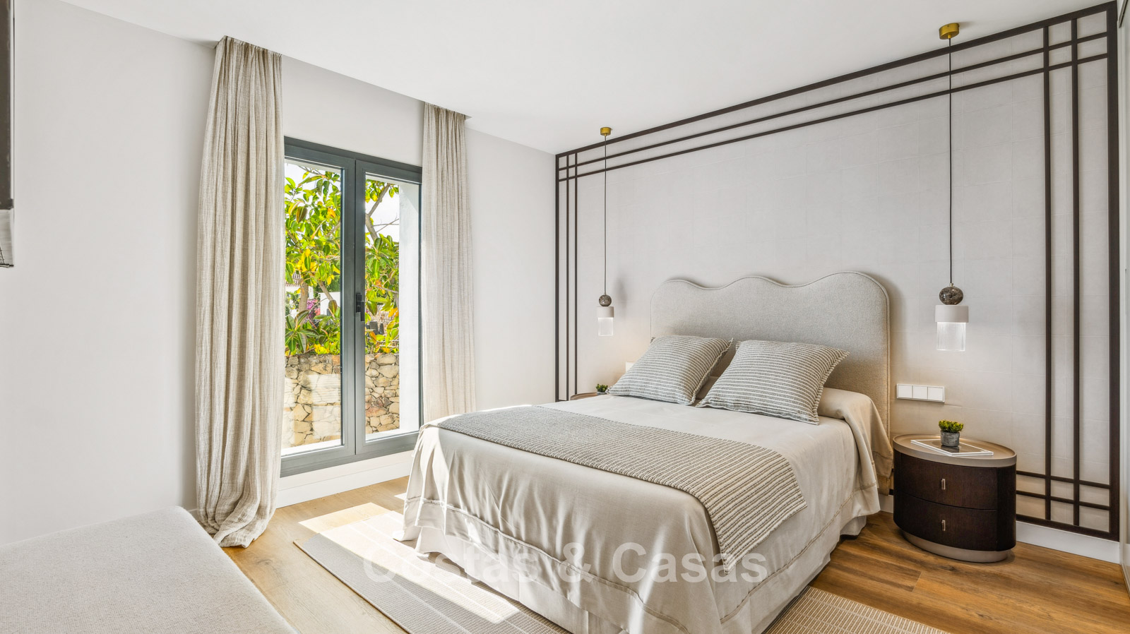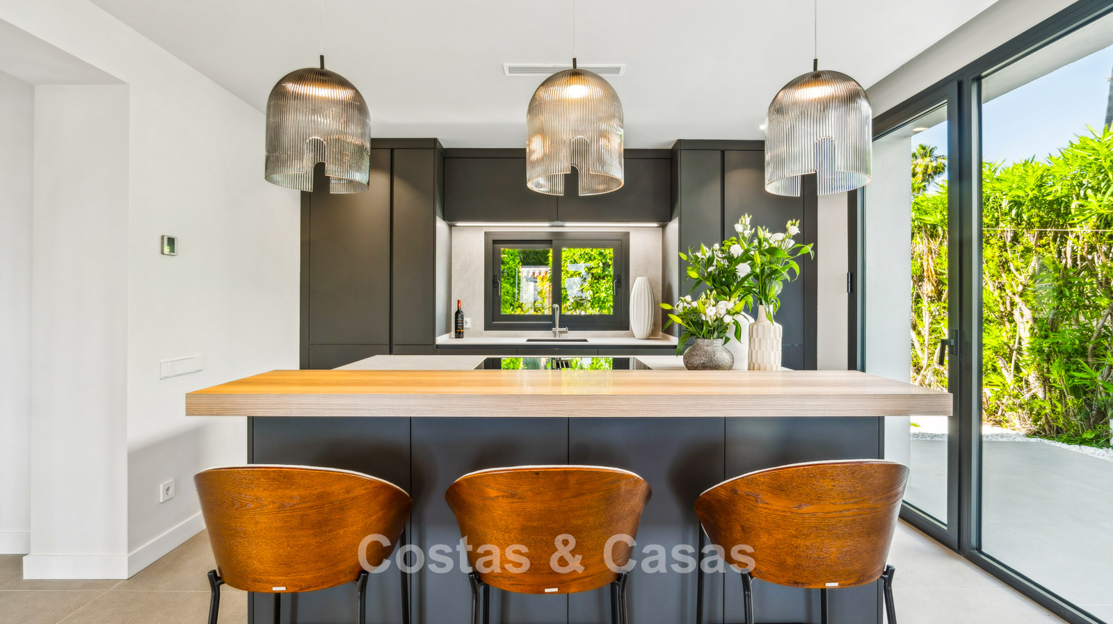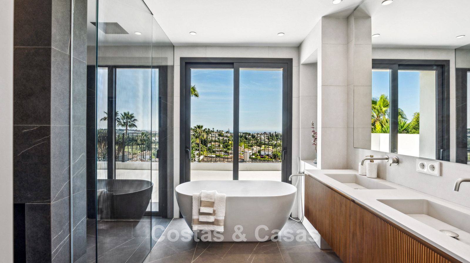 Villa independiente de elegante estilo mediterráneo, donde el encanto clásico se combina a la perfección con el confort moderno. Vistas al jardín, al valle del golf y al mar Mediterráneo. Espacios luminosos y abiertos en tonos neutros que irradian tranquilidad y elegancia. Moderna cocina abierta a medida con un diseño refinado, isla de cocina con barra americana. Comedor integrado. 5 dormitorios, 5 baños y un aseo. Segundo salón de TV. Suelos de baldosas cerámicas. Garaje integrado. Dos plazas de aparcamiento adicionales en la parcela.