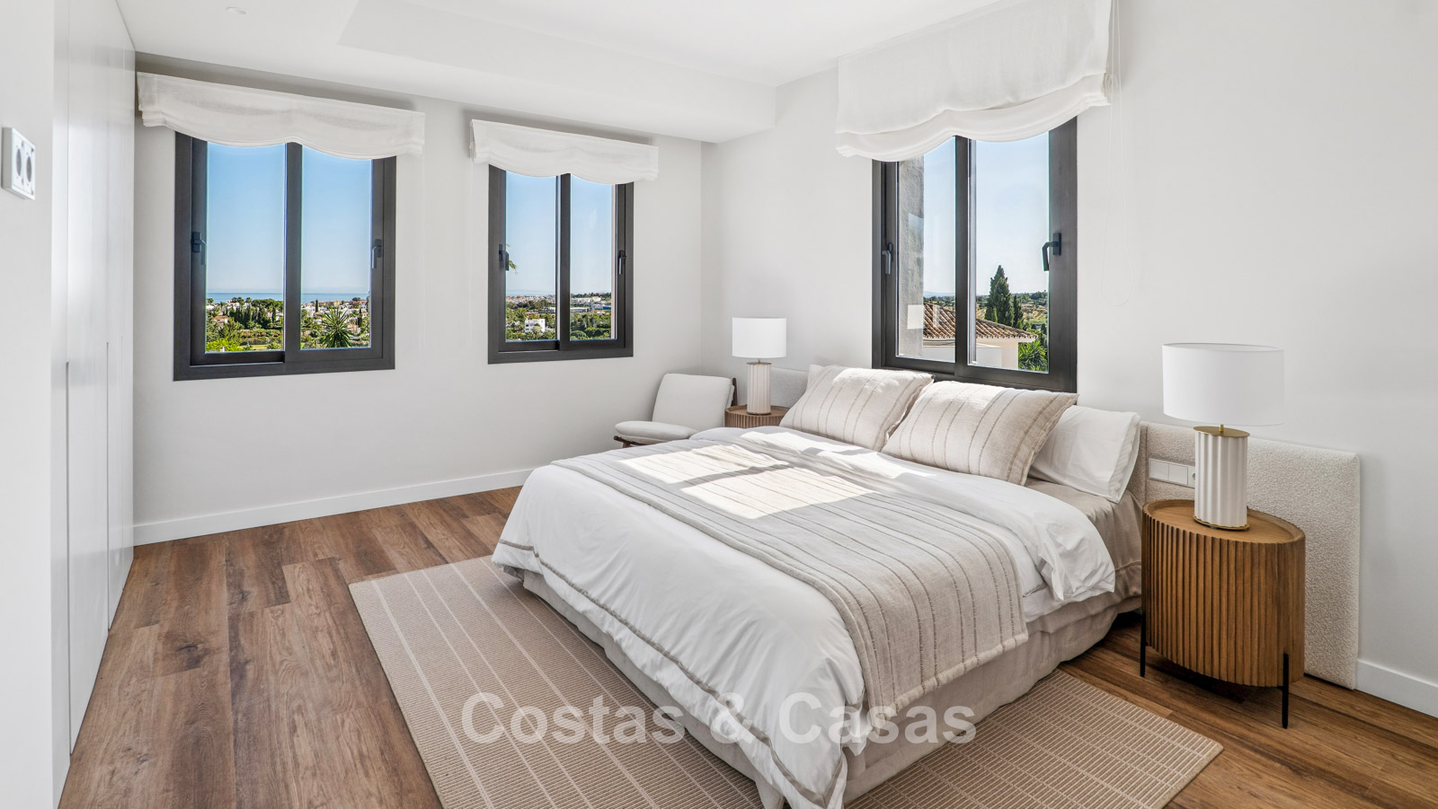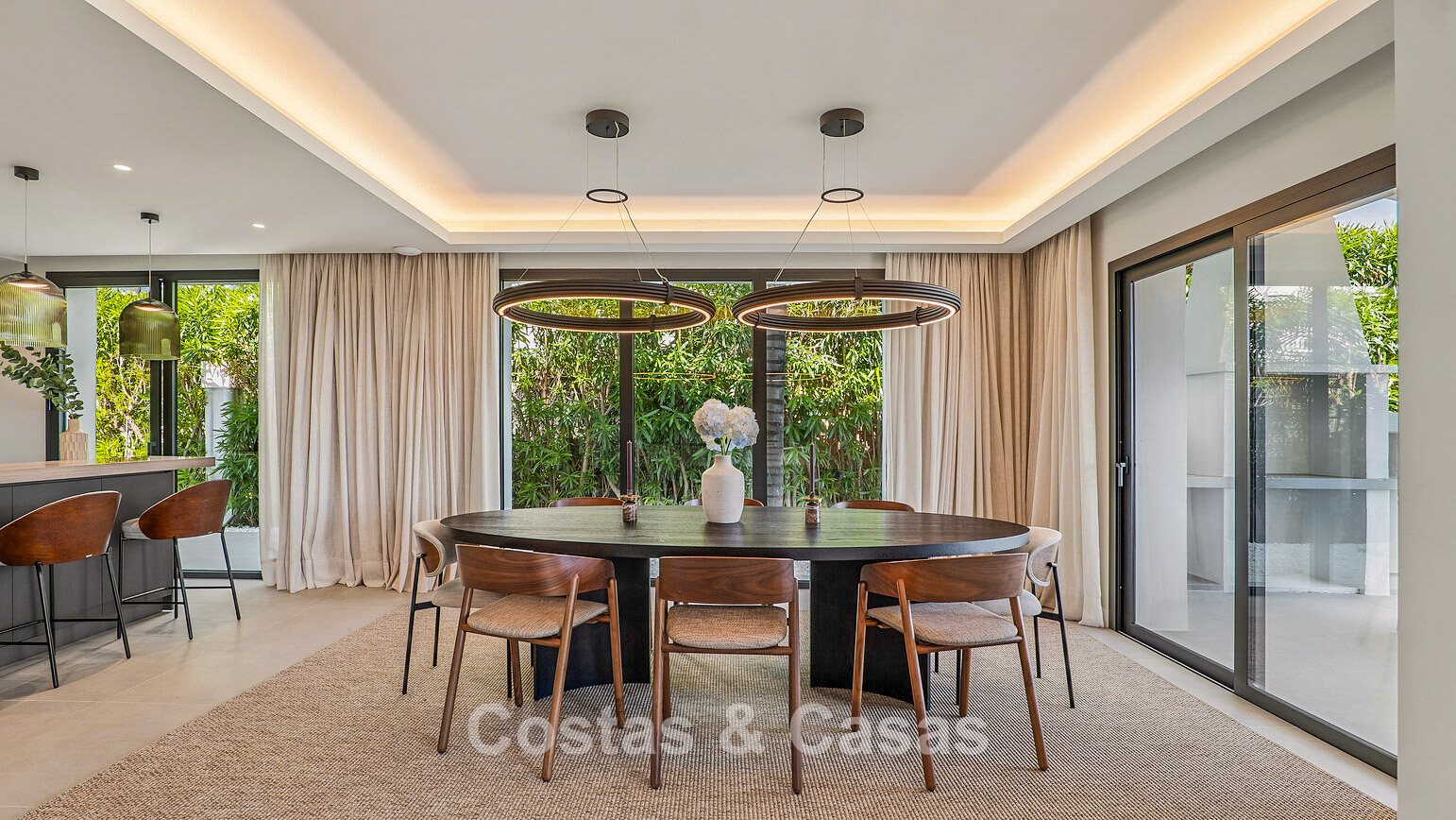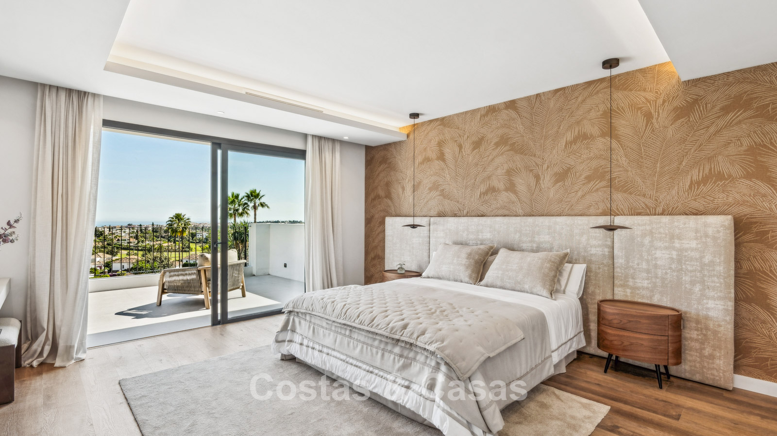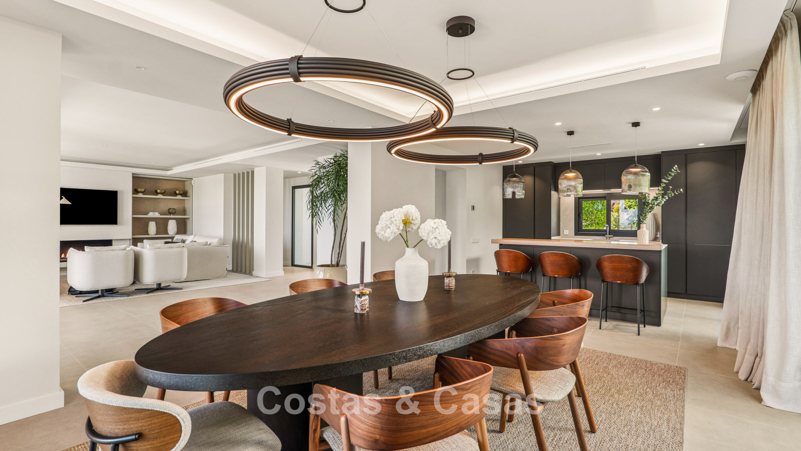 Villa independiente de elegante estilo mediterráneo, donde el encanto clásico se combina a la perfección con el confort moderno. Vistas al jardín, al valle del golf y al mar Mediterráneo. Espacios luminosos y abiertos en tonos neutros que irradian tranquilidad y elegancia. Moderna cocina abierta a medida con un diseño refinado, isla de cocina con barra americana. Comedor integrado. 5 dormitorios, 5 baños y un aseo. Segundo salón de TV. Suelos de baldosas cerámicas. Garaje integrado. Dos plazas de aparcamiento adicionales en la parcela.