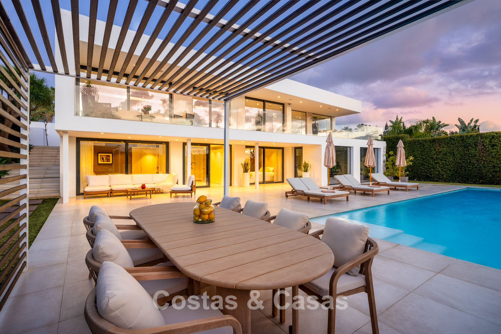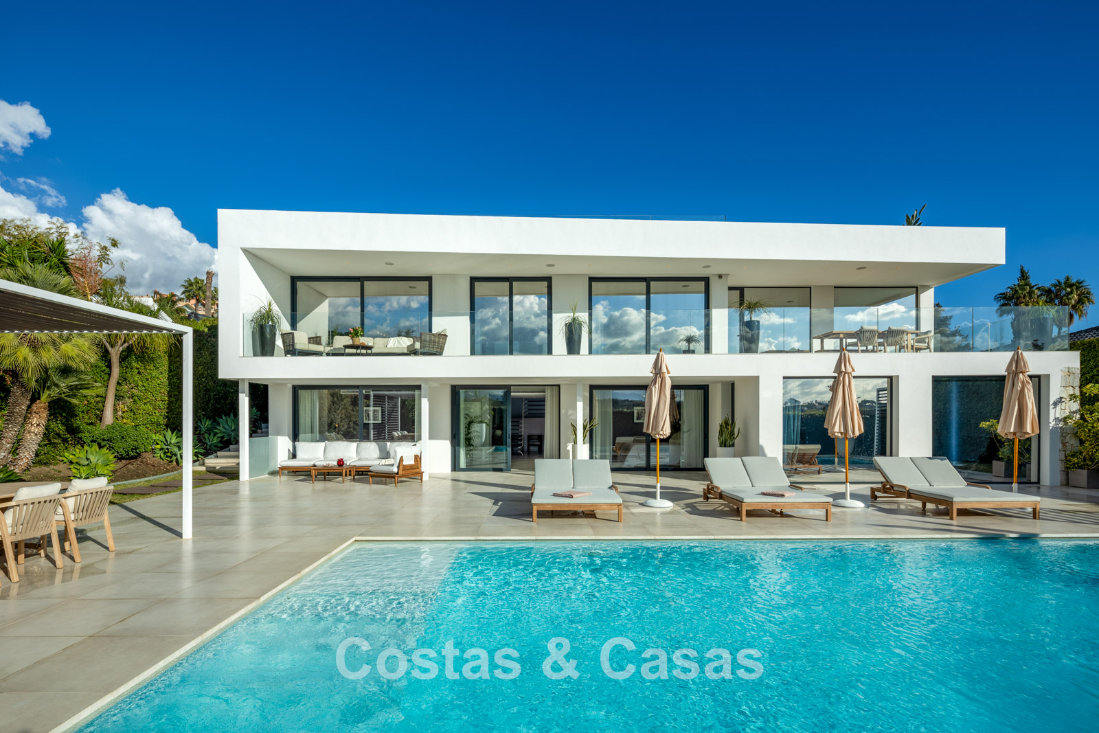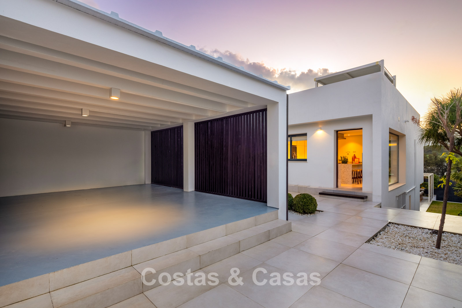 Villa independiente con un estilo arquitectónico elegante y contemporáneo.