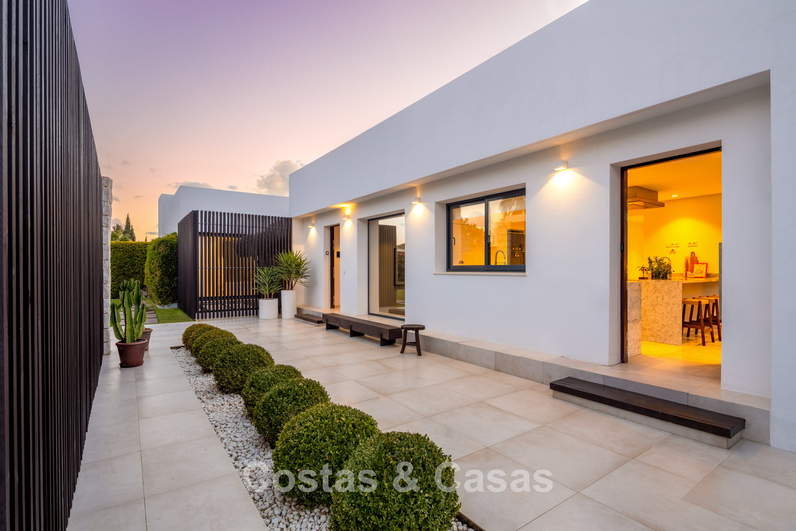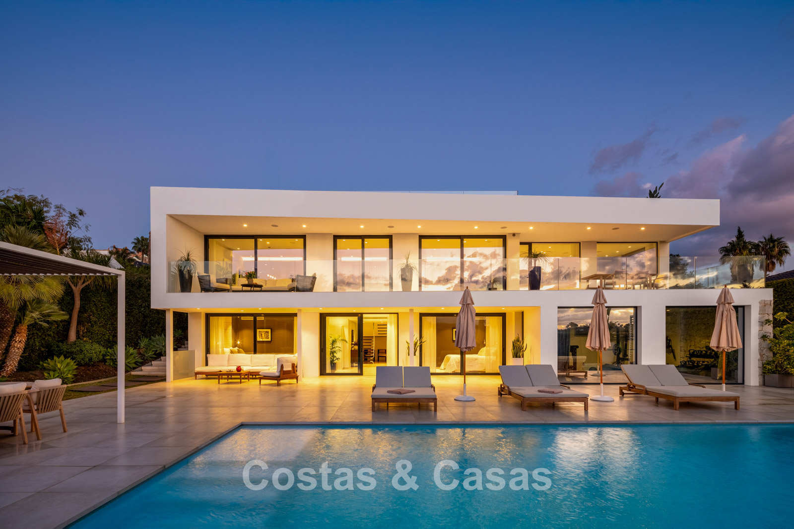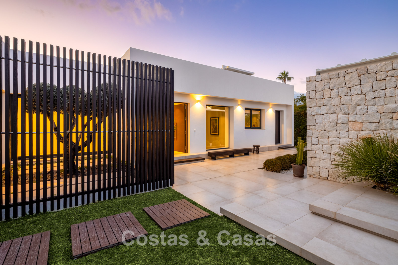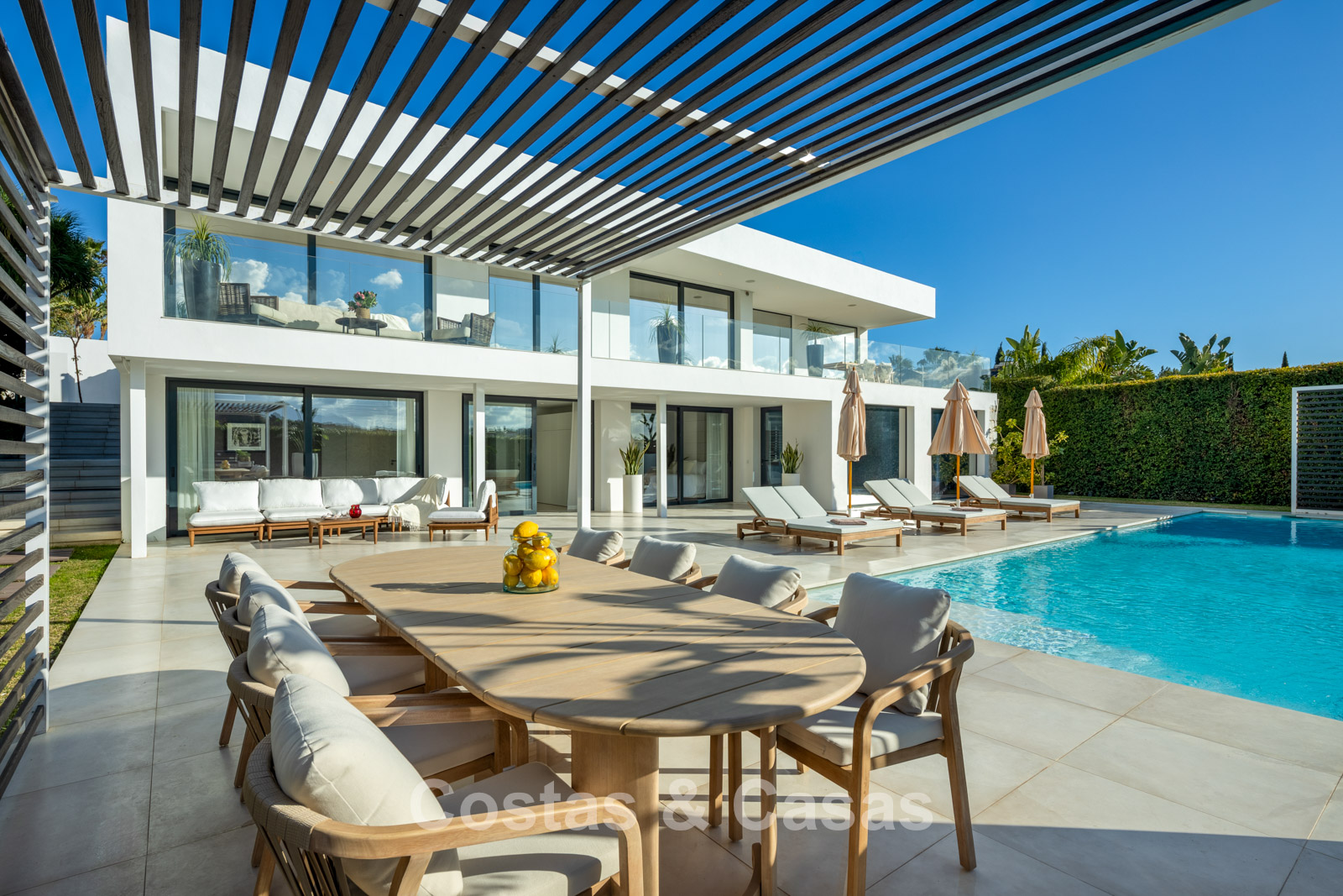 Villa independiente con un estilo arquitectónico elegante y contemporáneo.