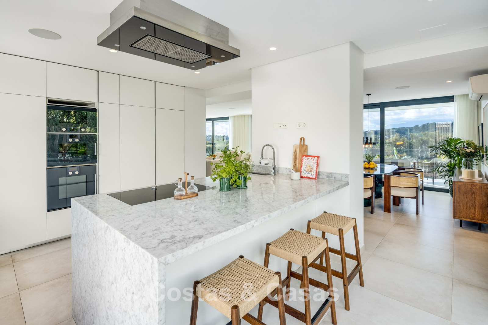 Amplia cocina, totalmente equipada con electrodomésticos Gaggenau y una isla.